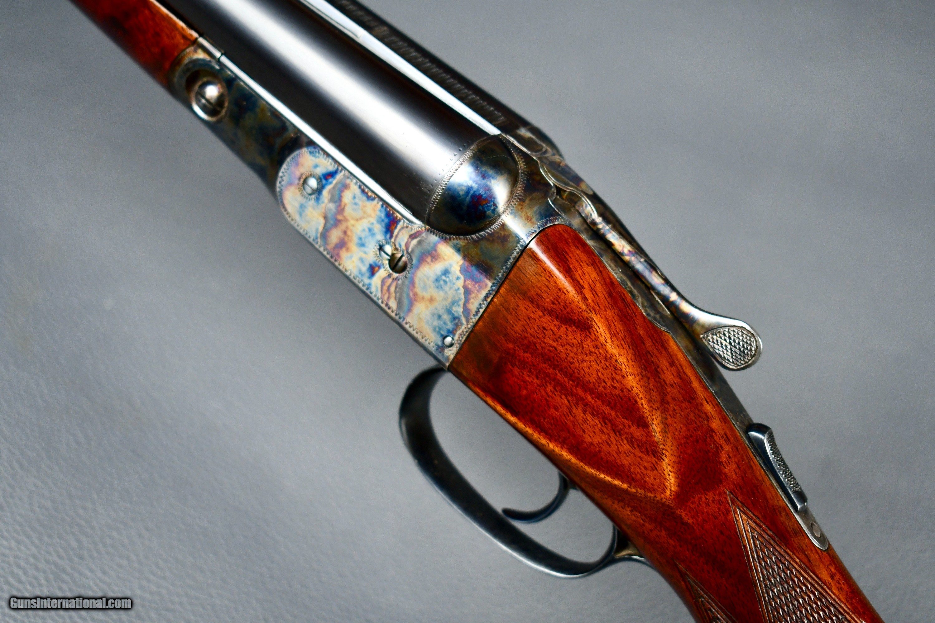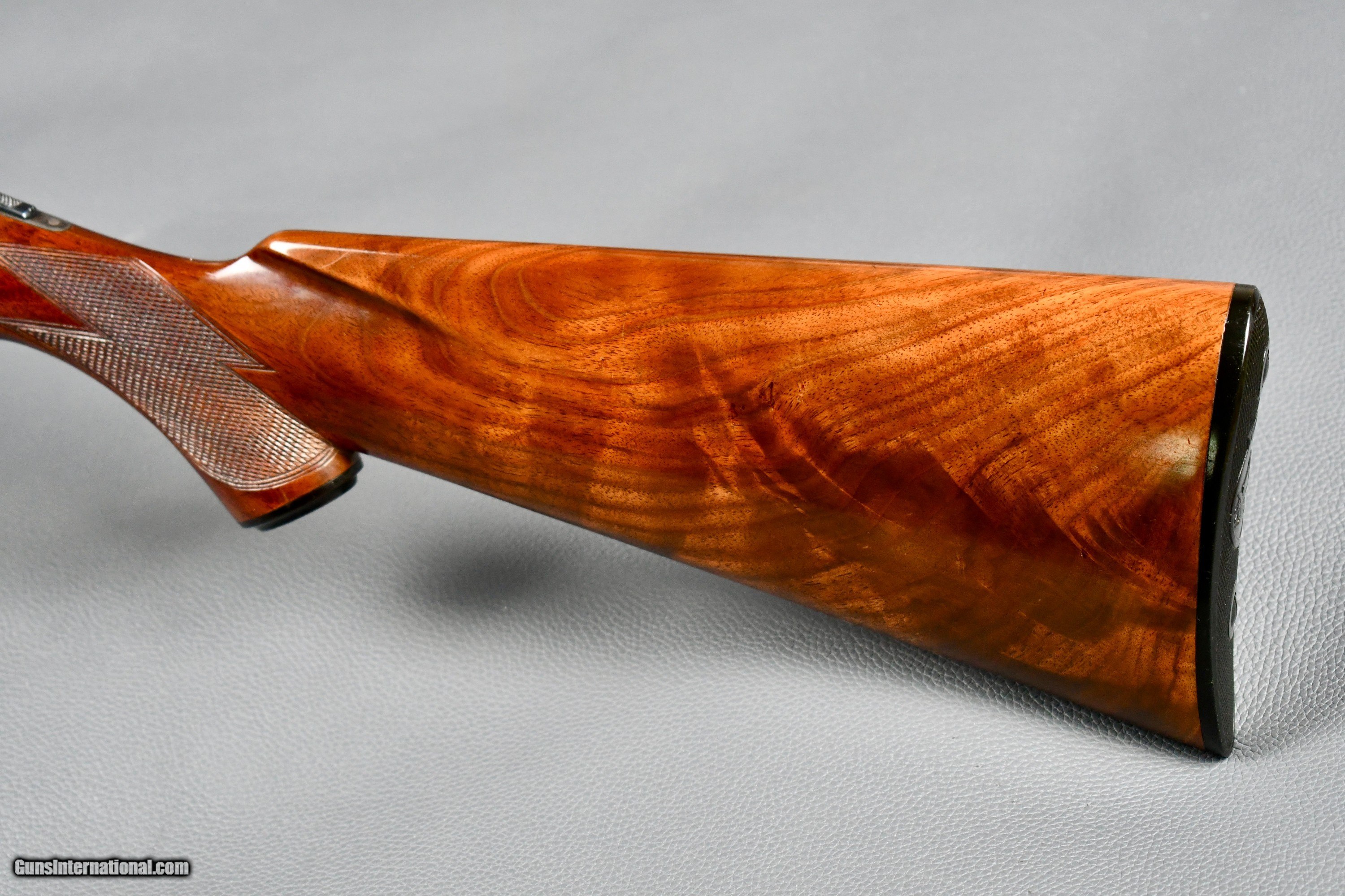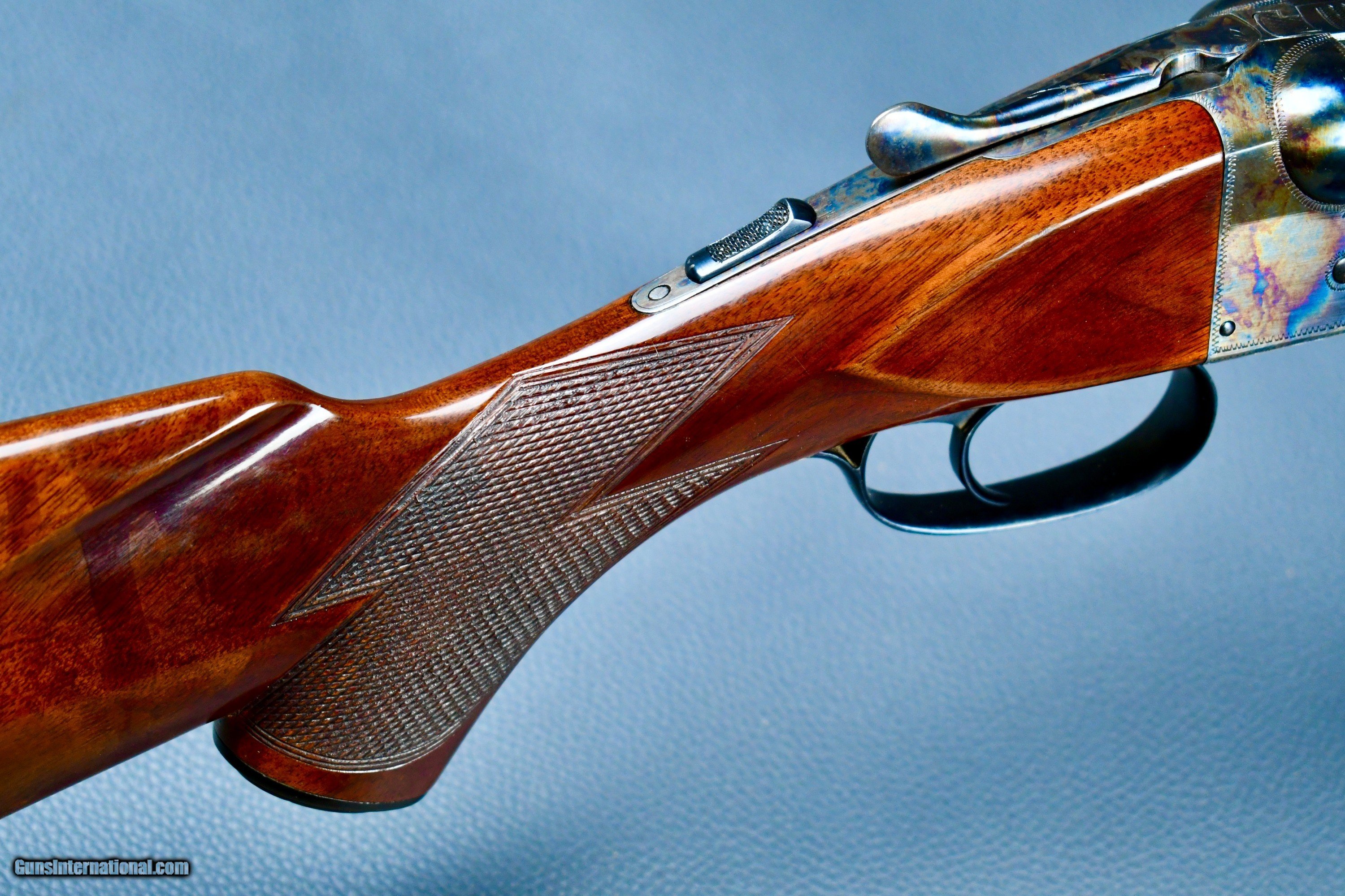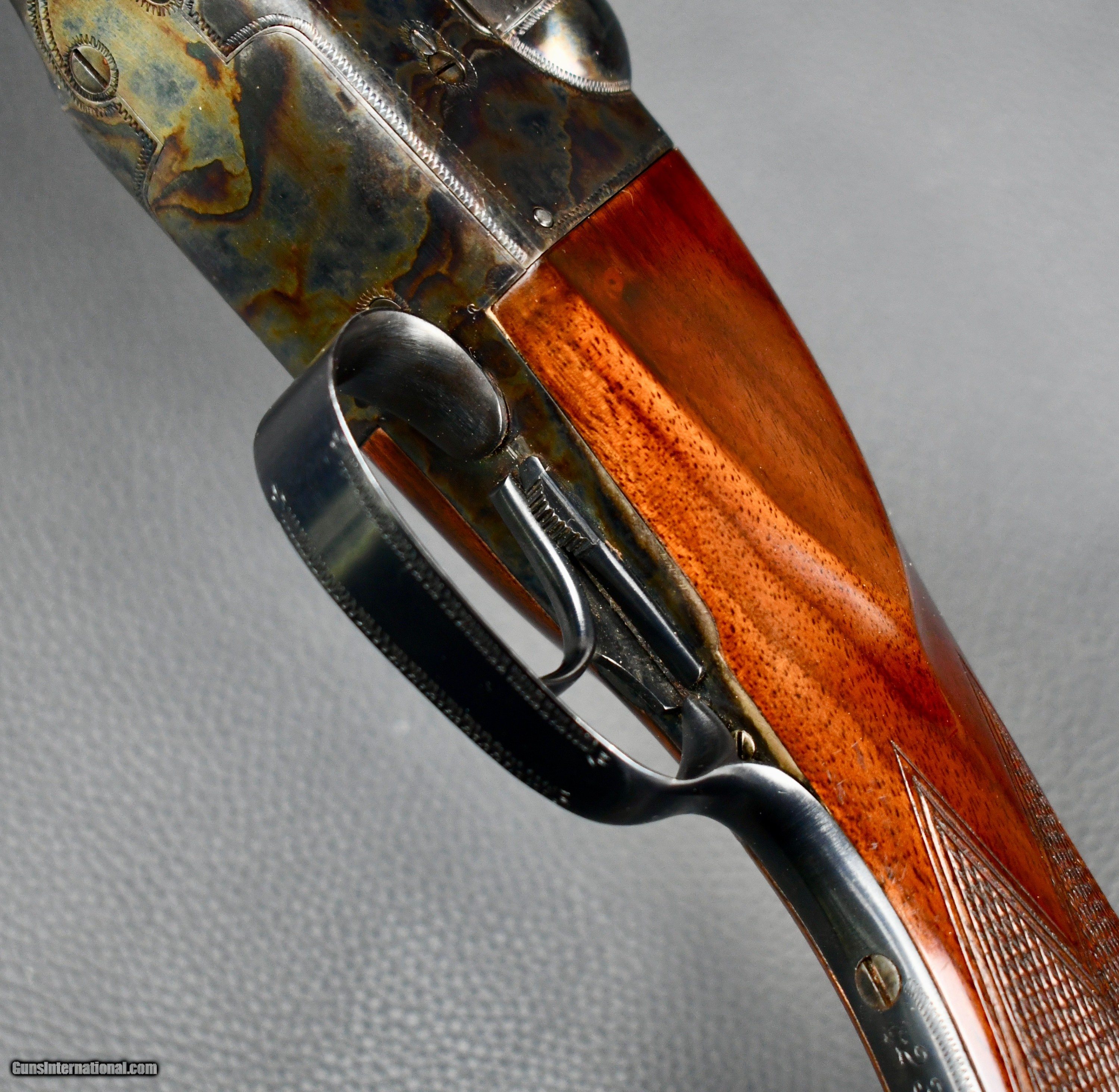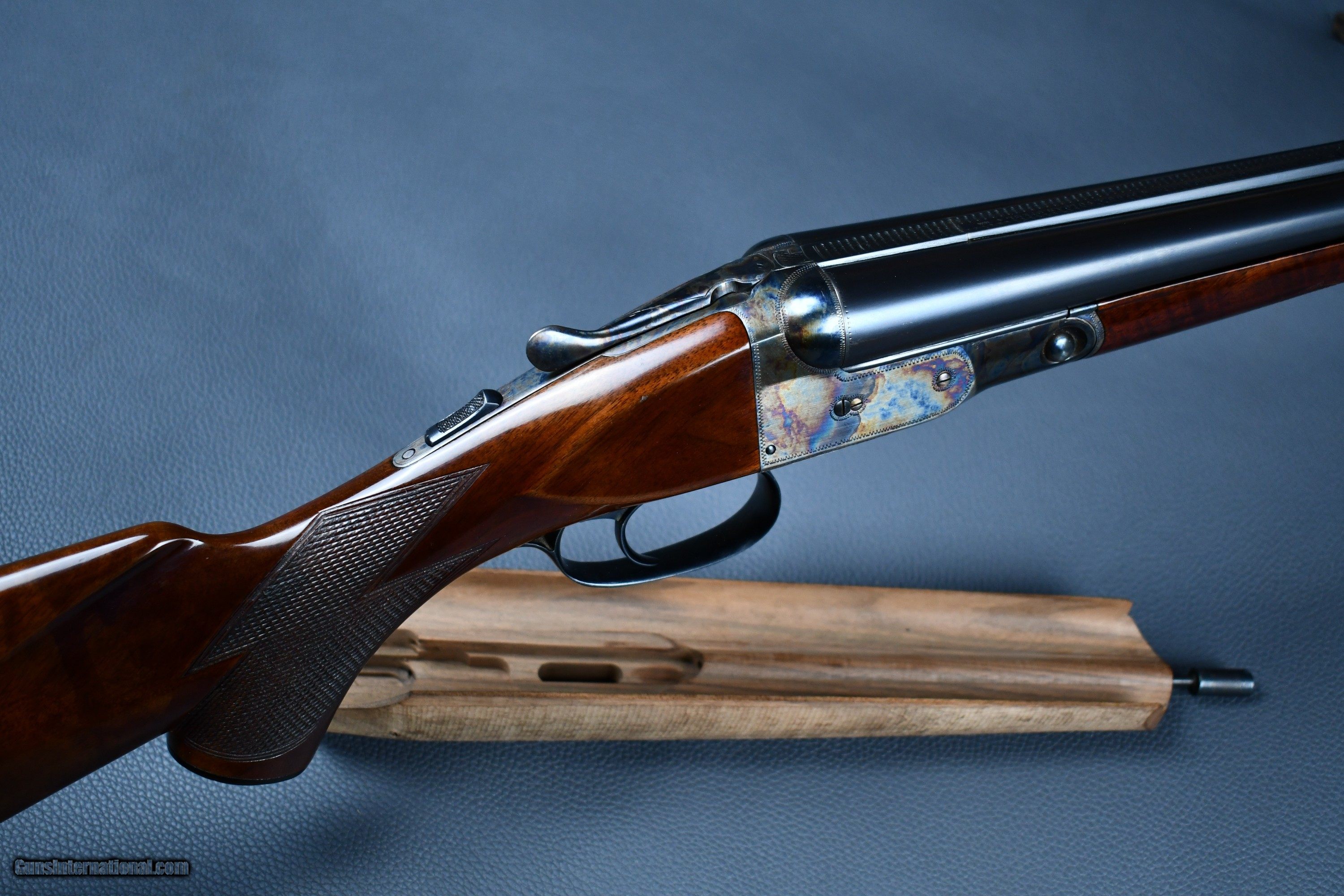 Description: A FACTORY CONFIGURED VHE REMINGTON PARKER "SKEET" 20GA -- ALL SKEET GUNS WERE REVERSED CHOKED BY PARKER -- THIS GUN CARRIES ITS ORIGINAL CHOKES AS ORDERED AT MOD/IC -- REINFORCED BARREL LOOP AND LUG -- RAISED FOREND BOSS -- DOUBLE WHITE BEADS -- 26" BARRELS -- FACTORY SINGLE SELECTIVE TRIGGER -- PISTOL GRIP -- SPLINTER FOREND AND A NON FINISHED BEAVERTAIL FOREND WITH DRAW BOLT -- FOREND IRON IS DRILLED AND TAPPED FOR THE THRU BOLT --SUPER NICE DIMENSIONS -- GUN APPEARS AS NEW AND HAS BEEN REFINISHED AND STOCKED BY LARRY DELGRECO AND SONS AS IT CARRIES EARLY REMINGTON CYANIDE COLORS -- A SUPER RARE IN THE BOOK ALL OPTIONED VHE 20GA THAT WOULD MAKE A GREAT SHOOTER OR HAVE IT RECOLORED AND FOREND FINISHED BY TURNBULL TO PLACE IN THE SAFE...... SELLING IT FOR THE PRICE OF A BANGER 20GA. THIS GUN IS LISTED IN THE SERIALIZATION BOOK AS A #14 OPTION SKEET GUN...... HARD TO FIND AT THIS PRICE AND TIGHT AS NEW -- AT GREENES, WE LITERALLY HAVE ACCESS TO HUNDREDS OF SMALLBORE AMERICAN AND EUROPEAN COLLECTABLE LONGARMS -- FEEL FREE TO CALL WITH YOUR NEEDS -- WHY FIGHT THE EXPENSIVE AND AGGRAVATING CROWDS FOR THAT ONE IN FIFTY CHANCE. WE HAVE THEM AND YOU ARE NOT GOING TO PAY A 20% BUYERS PREMIUM. STOP HITTING THE "BID NOW" BUTTON, PICK UP THE PHONE AND CALL ME! Factory Parker Brothers skeet and field guns..... We have them. Factory Graded Winchester 21's....... Not a problem English and European O/u and SXS's Rare and hard to find Colts and S&W hand guns I have been providing hard to find smallbore American and English long guns to collectors and dealers since 1997. Give us a try call , text or email. you have nothing to lose except 20% of your money! SOLD Shotgun Gauge: 20 Gauge Manufacturer: REMINGTON PARKER Model: VHE Serial Number: 238442 Barrel Length: 26 Chambers: 2 3/4 Ejectors: YES Condition: EXCELLENT AS NEW Metal Condition: EXCELLENT AS NEW Wood Condition: EXCELLENT AS NEW Bore Condition: EXCELLENT Action: SXS Triggers: SINGLE SELECTIVE Stock: FULL PISTOL Stock Comb: 1 1/2 Stock Heel: 2 1/4 Butt Pad: FACTORY PLATE LOP: 14 7/8 Rib: SOLID MATT Finish: CASE COLOR / BLUE Weight: 6lbs 8.5oz Sights: 2 Choke Left: IC Choke Right: MOD Engraving: YES Case: NO |