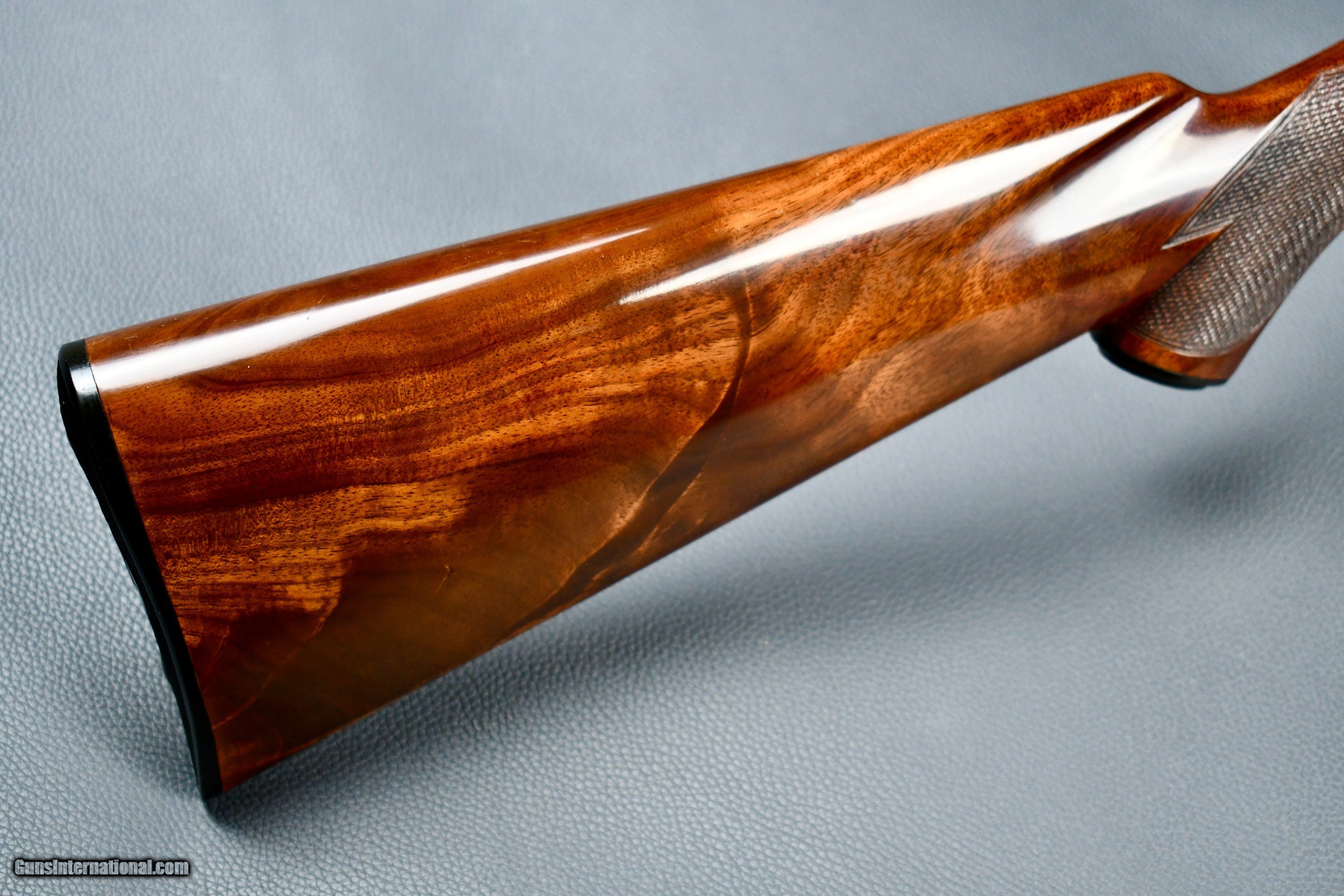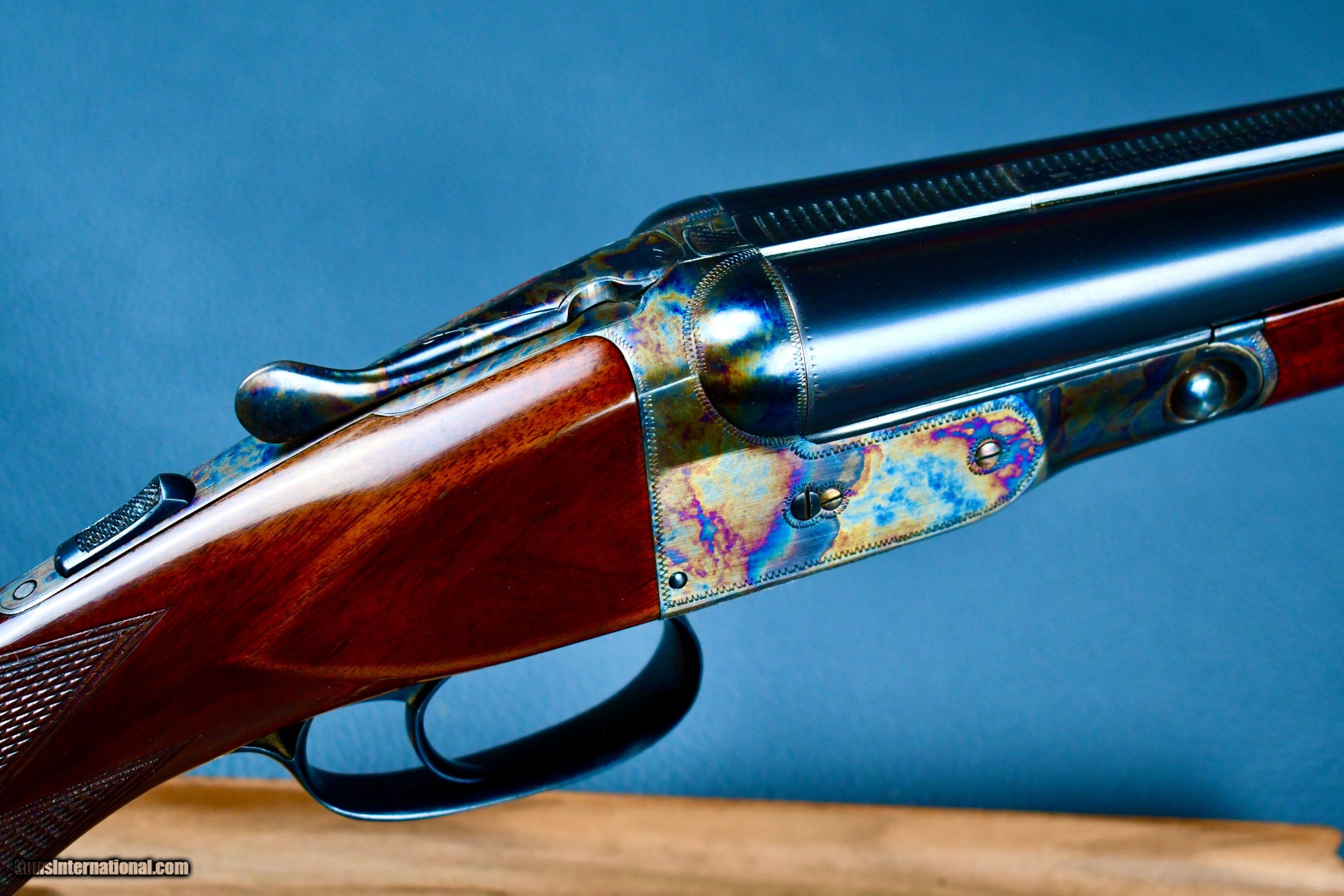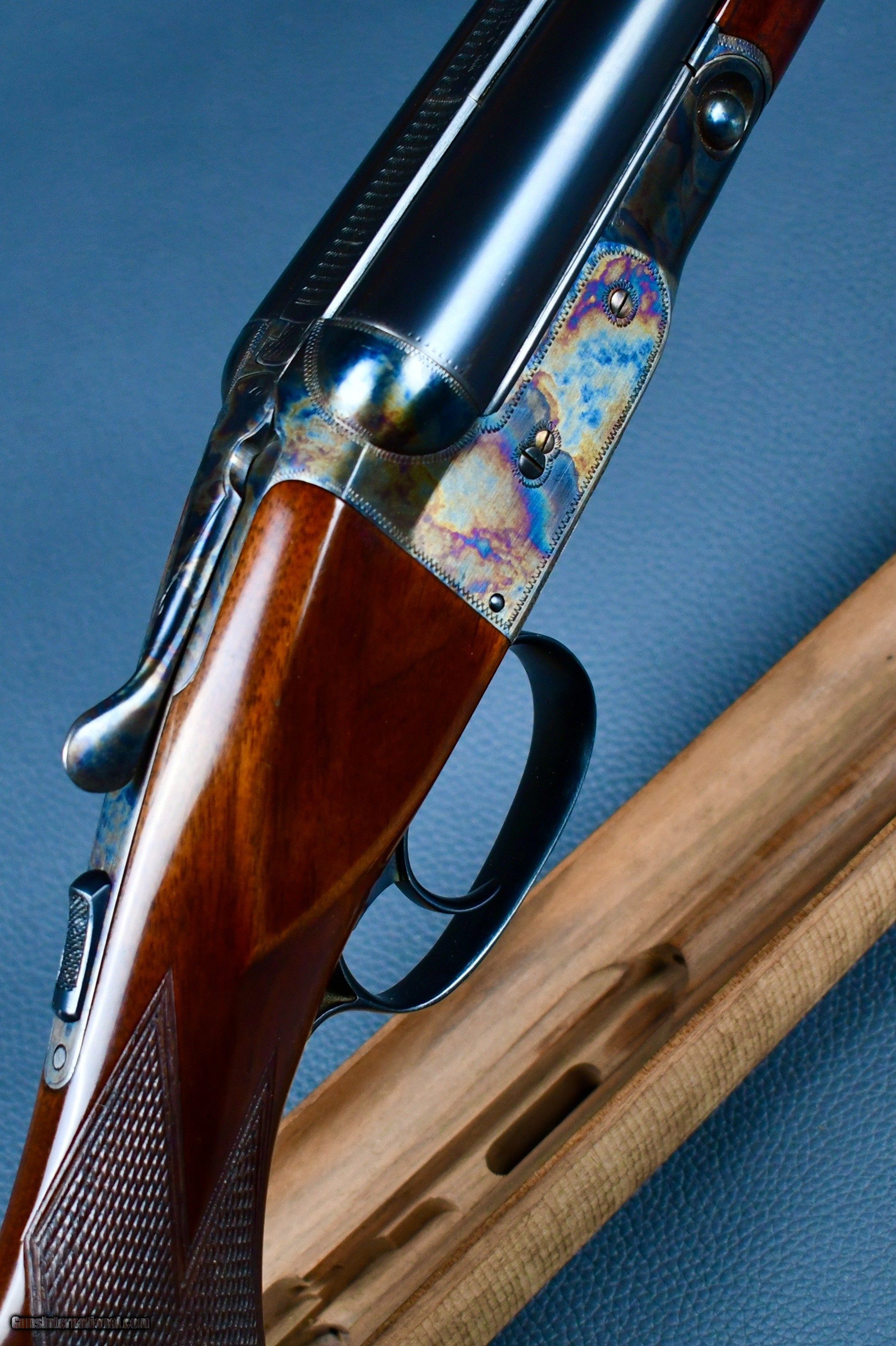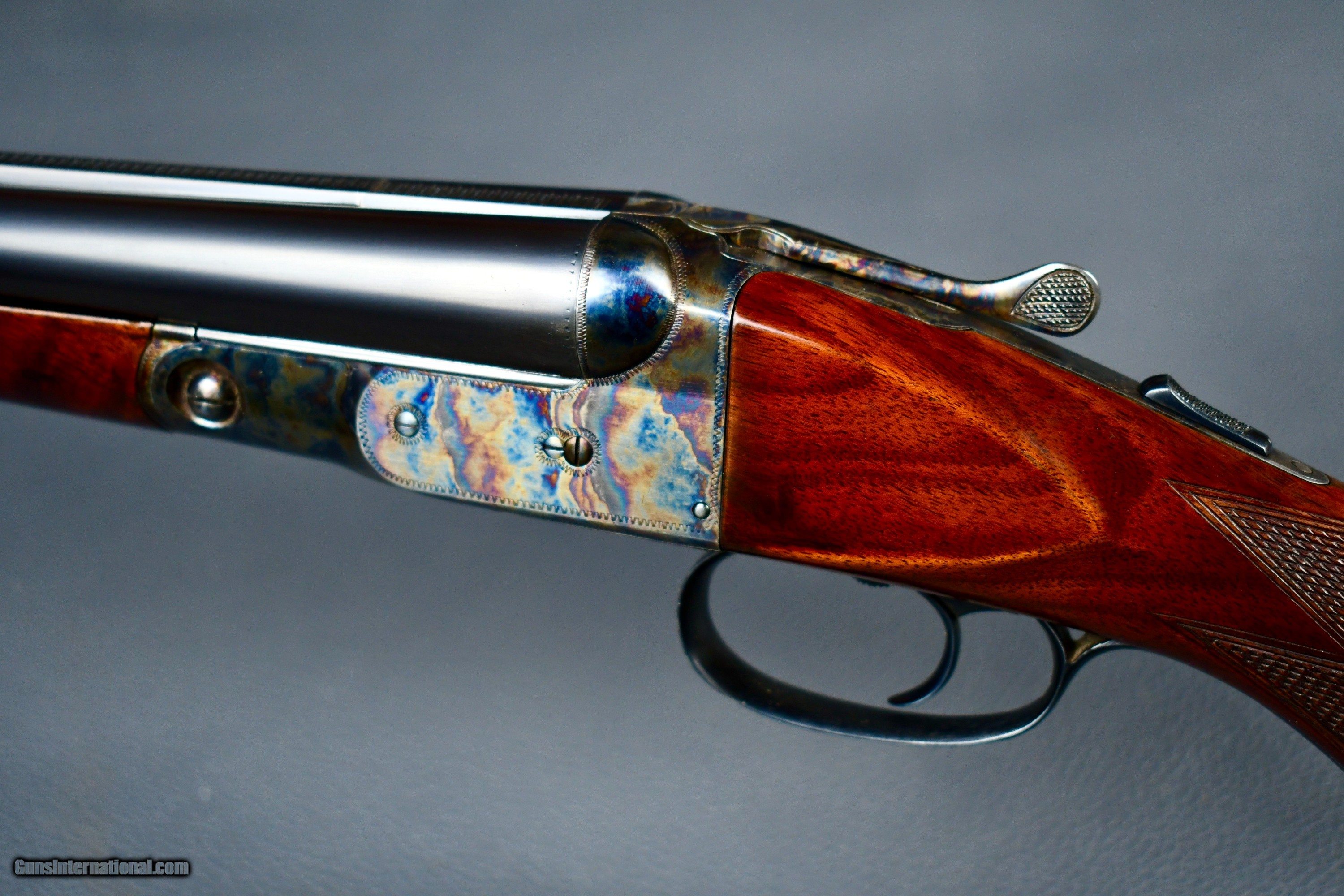 Description: A FACTORY CONFIGURED VHE REMINGTON PARKER "SKEET" 20GA -- ALL SKEET GUNS WERE REVERSED CHOKED BY PARKER -- THIS GUN CARRIES ITS ORIGINAL CHOKES AS ORDERED AT MOD/IC -- REINFORCED BARREL LOOP AND LUG -- RAISED FOREND BOSS -- DOUBLE WHITE BEADS -- 26" BARRELS -- FACTORY SINGLE SELECTIVE TRIGGER -- PISTOL GRIP -- SPLINTER FOREND AND A NON FINISHED BEAVERTAIL FOREND WITH DRAW BOLT -- FOREND IRON IS DRILLED AND TAPPED FOR THE THRU BOLT --SUPER NICE DIMENSIONS -- GUN APPEARS AS NEW AND HAS BEEN REFINISHED AND STOCKED BY LARRY DELGRECO AND SONS AS IT CARRIES EARLY REMINGTON CYANIDE COLORS -- A SUPER RARE IN THE BOOK ALL OPTIONED VHE 20GA THAT WOULD MAKE A GREAT SHOOTER OR HAVE IT RECOLORED AND FOREND FINISHED BY TURNBULL TO PLACE IN THE SAFE...... SELLING IT FOR THE PRICE OF A BANGER 20GA. THIS GUN IS LISTED IN THE SERIALIZATION BOOK AS A #14 OPTION SKEET GUN...... HARD TO FIND AT THIS PRICE AND TIGHT AS NEW -- AT GREENES, WE LITERALLY HAVE ACCESS TO HUNDREDS OF SMALLBORE AMERICAN AND EUROPEAN COLLECTABLE LONGARMS -- FEEL FREE TO CALL WITH YOUR NEEDS -- WHY FIGHT THE EXPENSIVE AND AGGRAVATING CROWDS FOR THAT ONE IN FIFTY CHANCE. WE HAVE THEM AND YOU ARE NOT GOING TO PAY A 20% BUYERS PREMIUM. STOP HITTING THE "BID NOW" BUTTON, PICK UP THE PHONE AND CALL ME! Factory Parker Brothers skeet and field guns..... We have them. Factory Graded Winchester 21's....... Not a problem English and European O/u and SXS's Rare and hard to find Colts and S&W hand guns I have been providing hard to find smallbore American and English long guns to collectors and dealers since 1997. Give us a try call , text or email. you have nothing to lose except 20% of your money! SOLD Shotgun Gauge: 20 Gauge Manufacturer: REMINGTON PARKER Model: VHE Serial Number: 238442 Barrel Length: 26 Chambers: 2 3/4 Ejectors: YES Condition: EXCELLENT AS NEW Metal Condition: EXCELLENT AS NEW Wood Condition: EXCELLENT AS NEW Bore Condition: EXCELLENT Action: SXS Triggers: SINGLE SELECTIVE Stock: FULL PISTOL Stock Comb: 1 1/2 Stock Heel: 2 1/4 Butt Pad: FACTORY PLATE LOP: 14 7/8 Rib: SOLID MATT Finish: CASE COLOR / BLUE Weight: 6lbs 8.5oz Sights: 2 Choke Left: IC Choke Right: MOD Engraving: YES Case: NO |