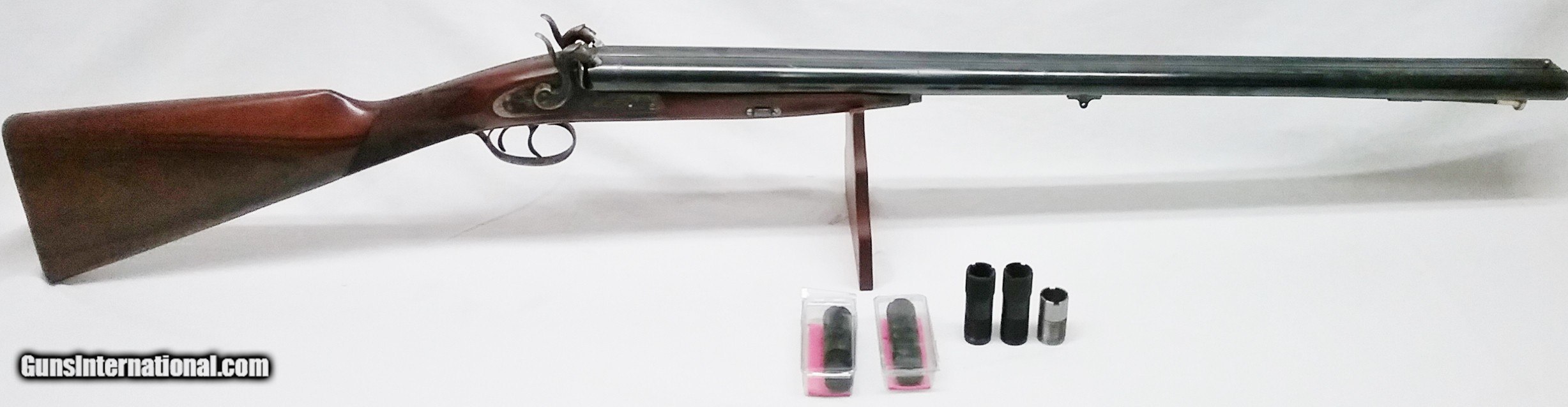 Description: P-32-50 Pedersoli Double Barrel 12Ga Percussion - Stk #P-32-50 This 12Ga Double Barrel and features two 28-1/2” blued tapered round barrels that are in very good condition with some handling marks. The front sight is fixed bead sight. The bores are in excellent condition. The bluing on the barrels is in very good condition. The P grade checkered European Walnut stock is in very good condition with the exception of some handling marks. The stock features a metal butt plate. Both locks are color case hardened and feature tasteful engraving. Both the hammers and tang are also color cased hardened with engravings. Length of pull is left 13-1/2” right 14-1/2”, overall length is 44-3/4”, and weight is 9.6 lbs. Our stock number is #P-32-50. This shot gun also come with removable chokes; there are 2 installed and 5 more that are included. Buyer pays freight and insurance. SOLD Shotgun Gauge: 12 Gauge Manufacturer: Pedersoli Model: Side by Side Bore: Smooth Condition: Very Good Metal Condition: Very Good Wood Condition: Very Good Bore Condition: Very Good Barrels: Two Barrel Type: Tapered Round Action: Percussion Triggers: 2 Stock: European Walnut Weight: 9.6 lbs Sights: Bead Chokes: Removable Engraving: Yes Item Location: OR - Oregon |