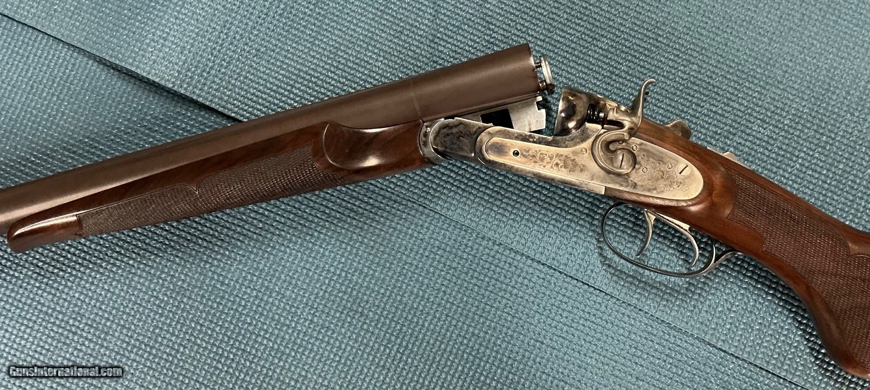 Description: Pedersoli - Gardone V-T - IT /22 SXS 28 inch barrels. Both chambered in 12ga, 3 inch shells. Currently one barrel is modified choke and the other barrel is improved choke. This gun is in super fine condition. With just minimal wear in the usual places. The barrels are finished in a flawless brown. Stocks, engraving and patina are beautiful. Price: $2,500.00 Shipping: $75.00 Contact Seller |