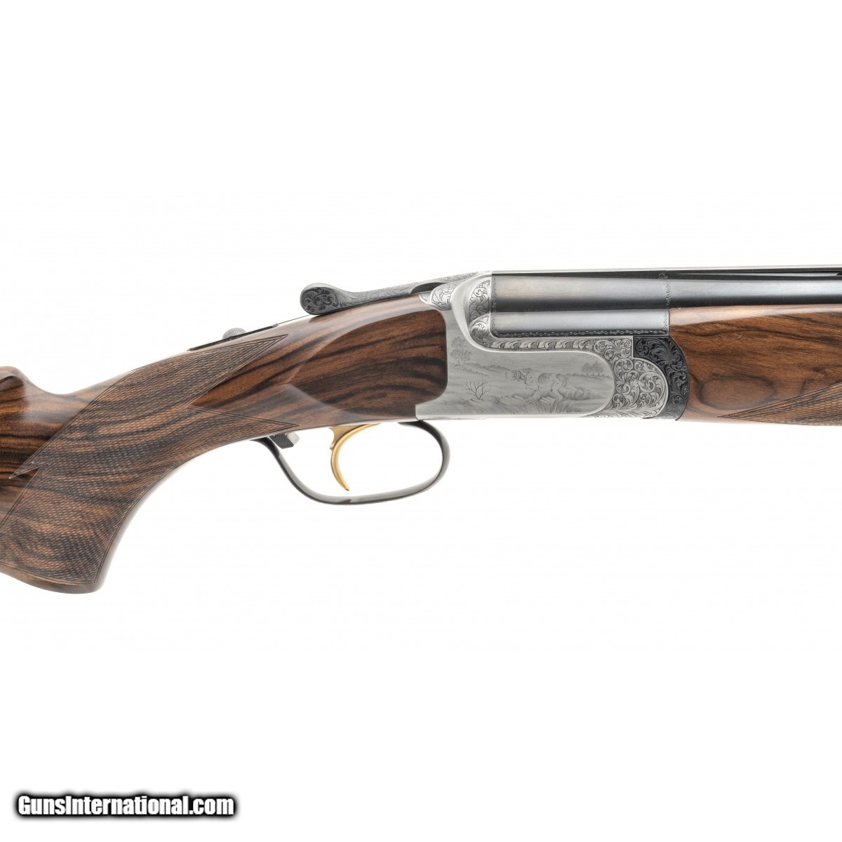 SN: 128464. Modern production 20ga with 28"" barrels. Beautiful over/under field gun. Has game scene engraving and fine scroll. The stock is highly figured walnut with 14.5"" LOP. Excellent condition with case, chokes and accessories.