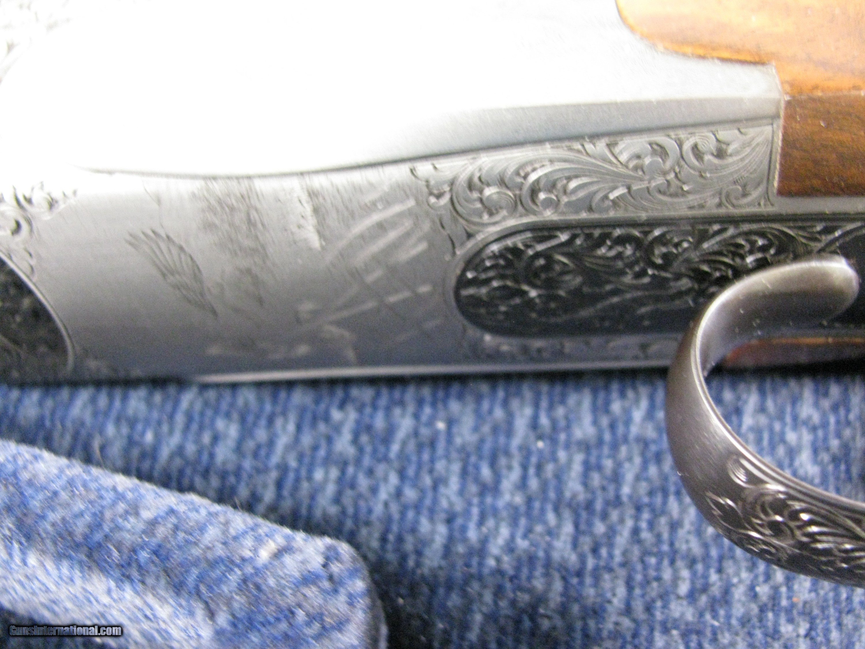 Description: 7988 Perazzi MX8-20 SC3 Grade,28 Gauge, It has only been fired once. Matched oil SC3 Grade with Pistol Grip stock, very Figured. It has Improved and Modified Chokes, The game scene engraved with Quail, Pheasant and duck. The Barrel length for the 28” for the 28 gauge. DAC 1 ¼, DAH 1 7/8, LOP 14 ¾. It has a Perazzi Case, cloth sleeves and all documentation. 99% SOLD Shotgun Gauge: 28 Gauge |