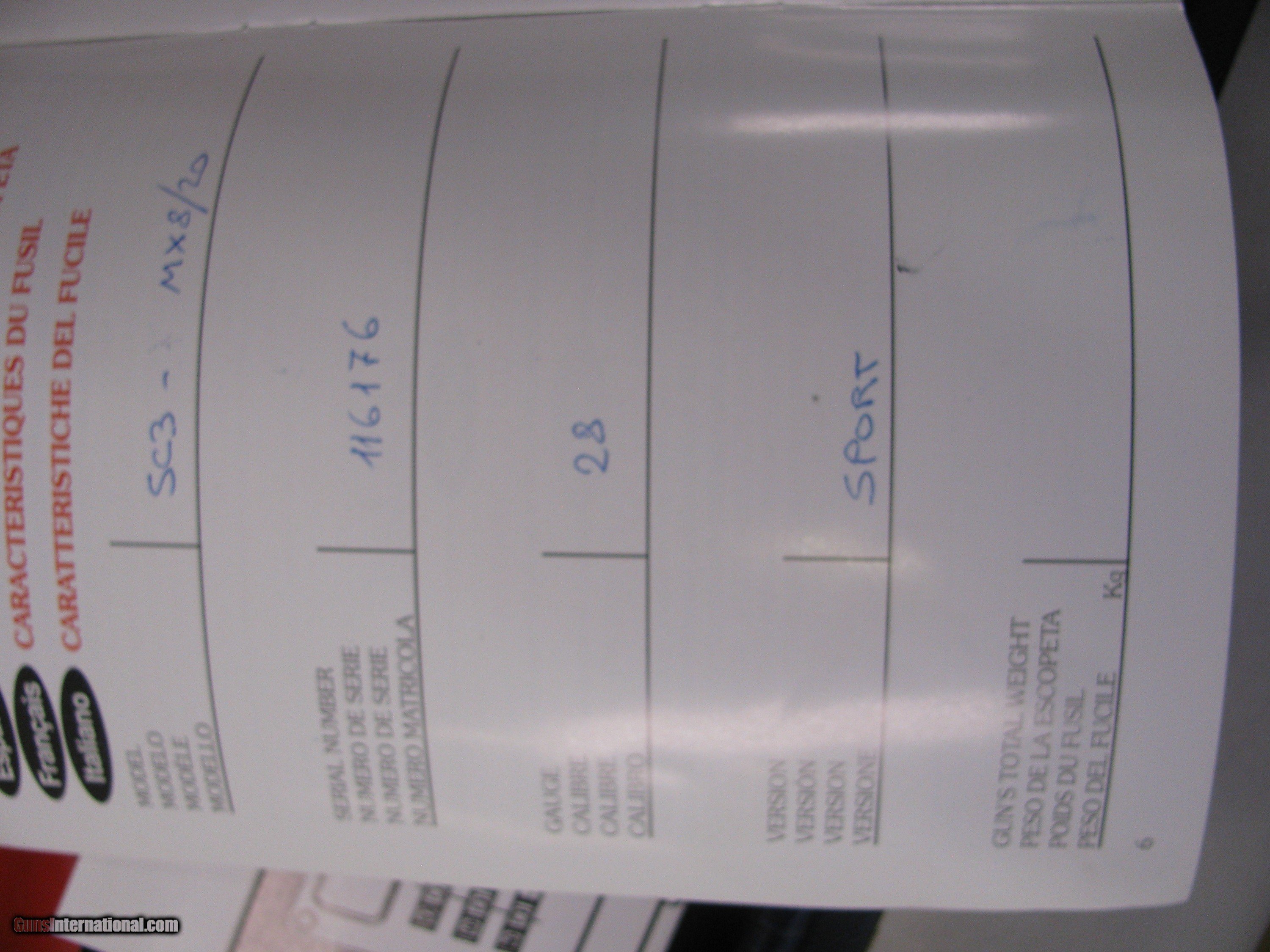 MX8-20 SC3 Grade,28 Gauge, It has only been fired once. Matched oil SC3 Grade with Pistol Grip stock, very Figured. It has Improved and