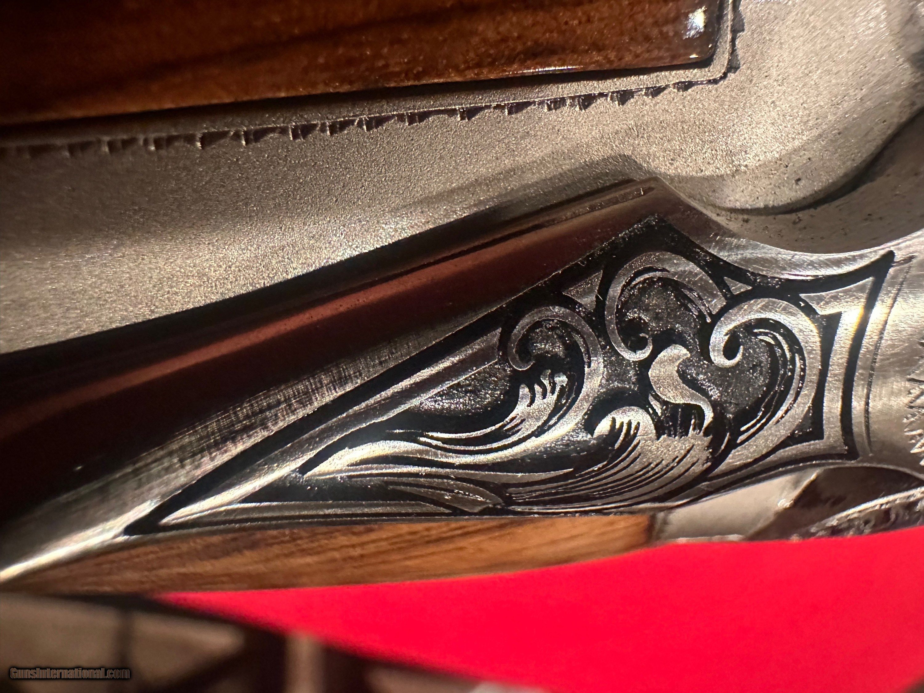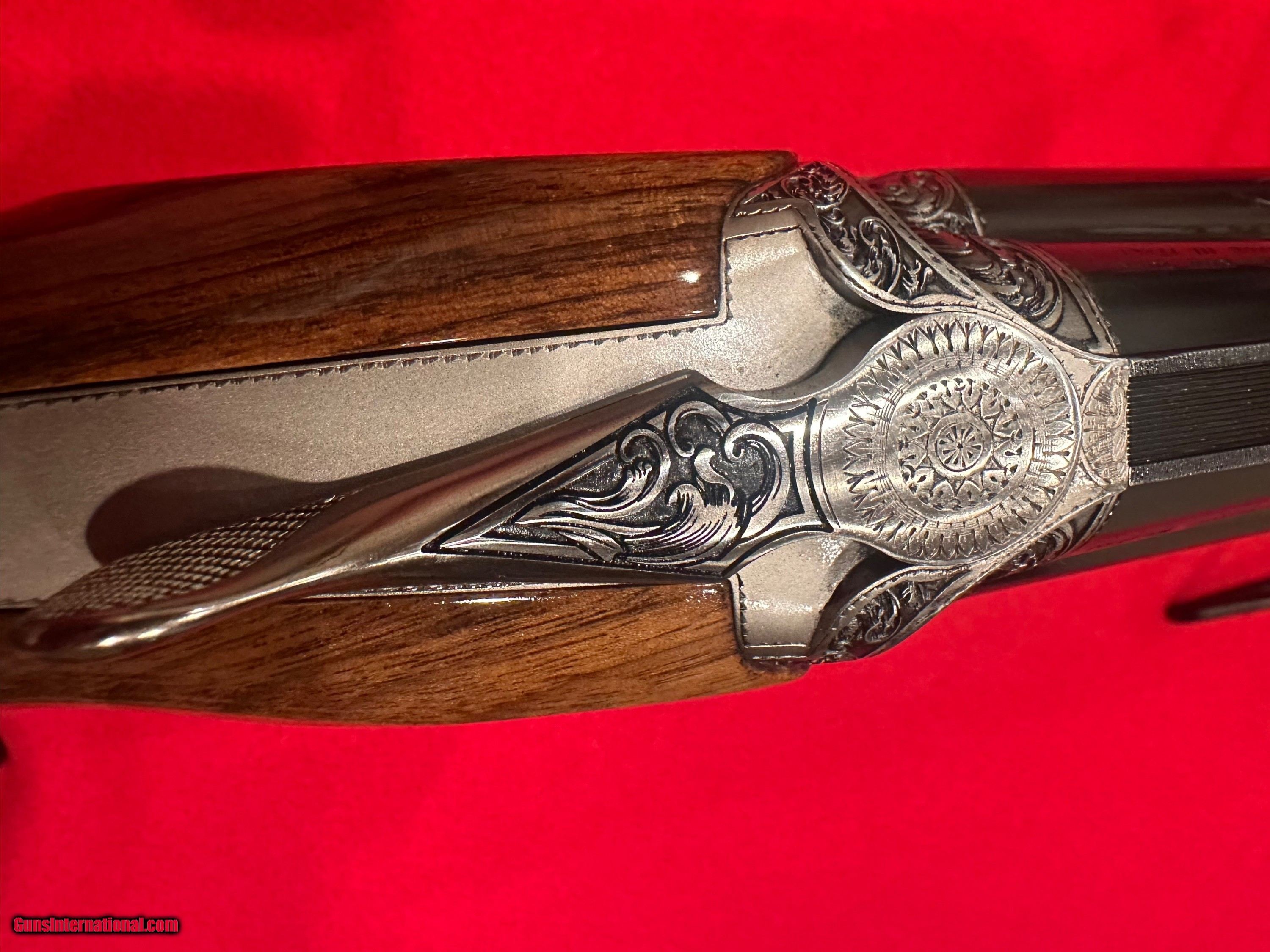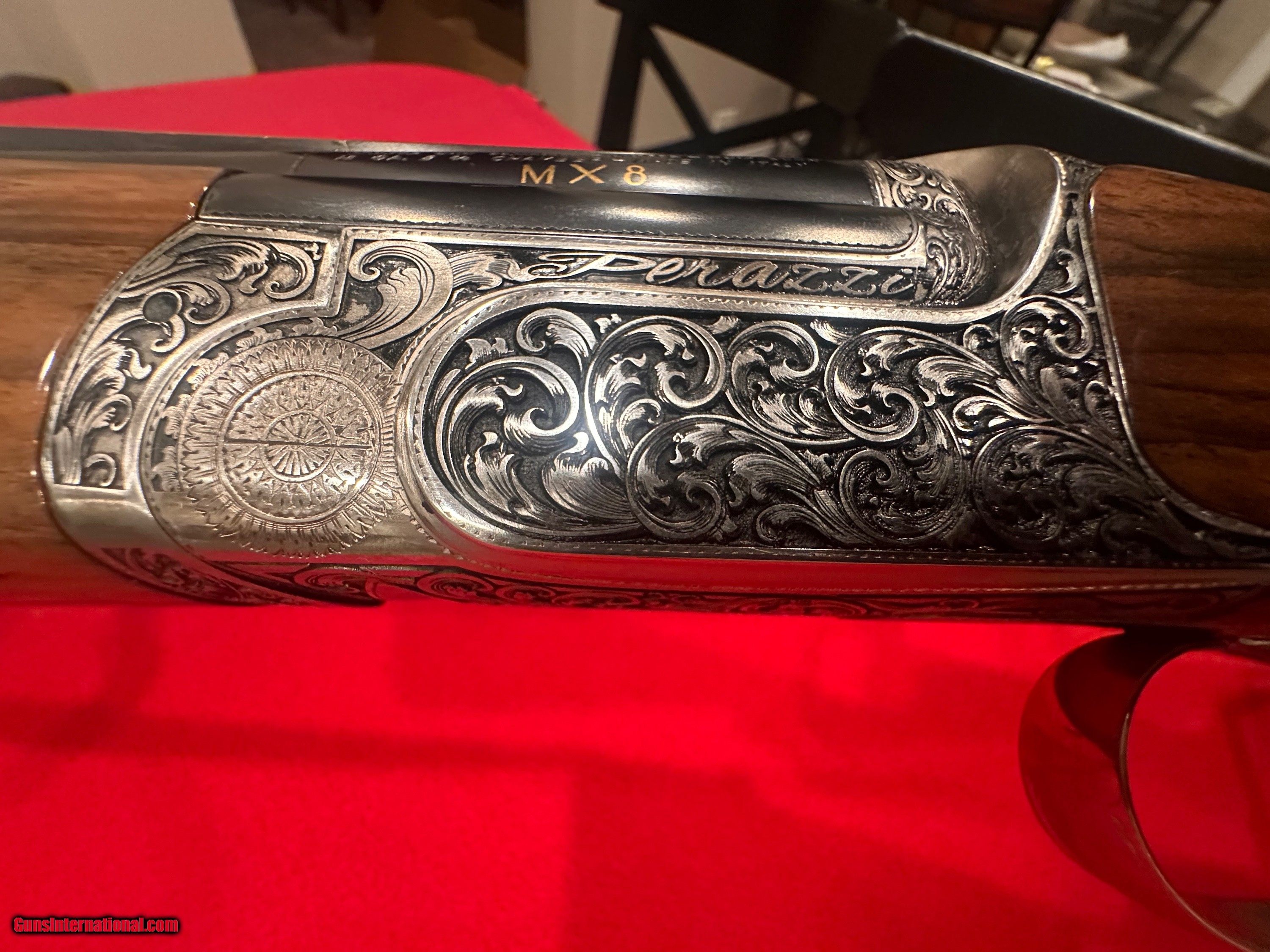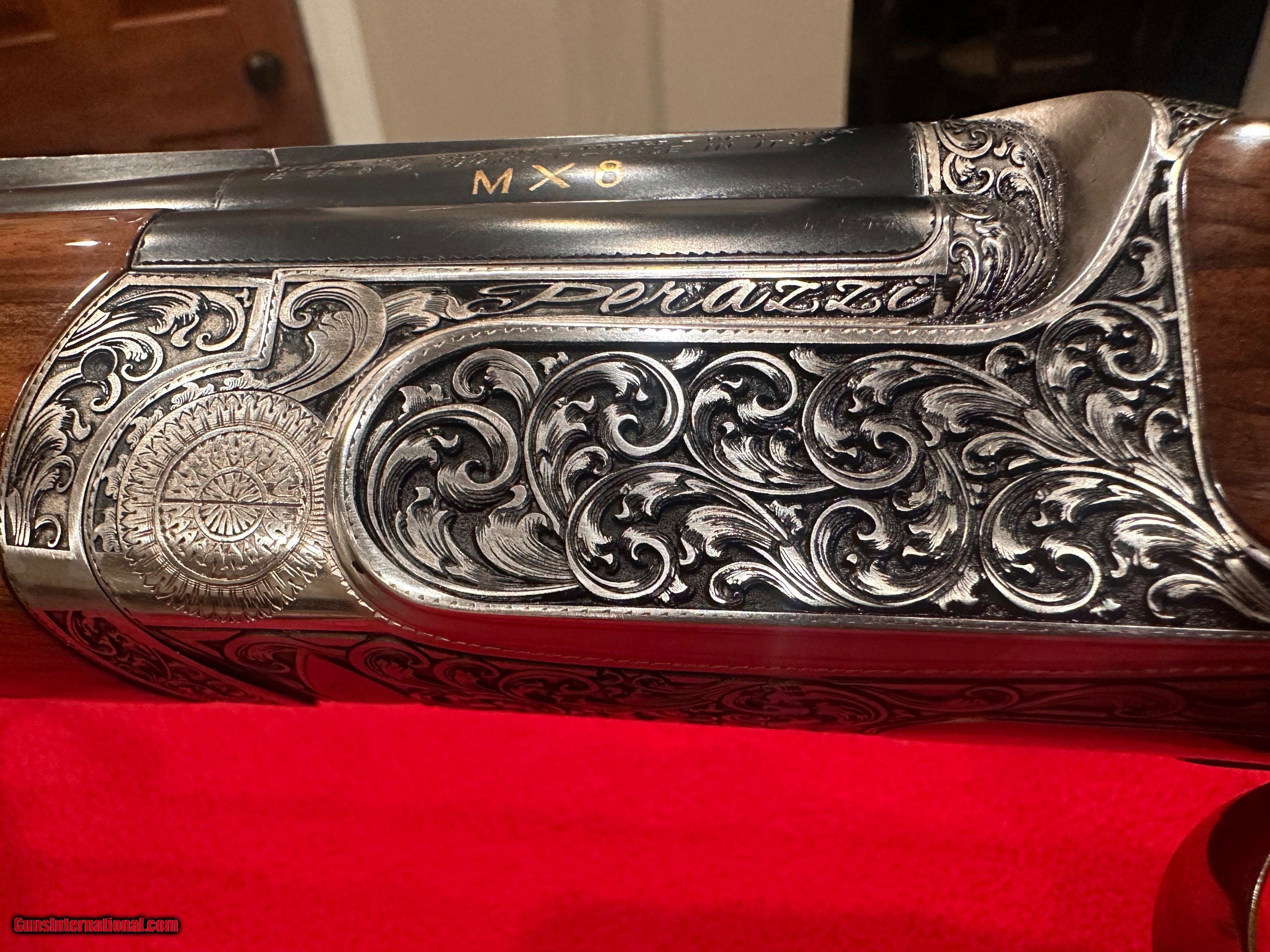 Description: Just in time for Christmas! A TRUE SAFE QUEEN ! Perazzi MX8 12 GA. 32” Step rib barrels Beautiful wood FULLY Engraved Briley thin Wall chokes Jones adjustable but plate New kick-eel pad 14.5 LOP 1.5 “DAC 1 5/8 “ DAH Comes in a perazzi case SOLD |