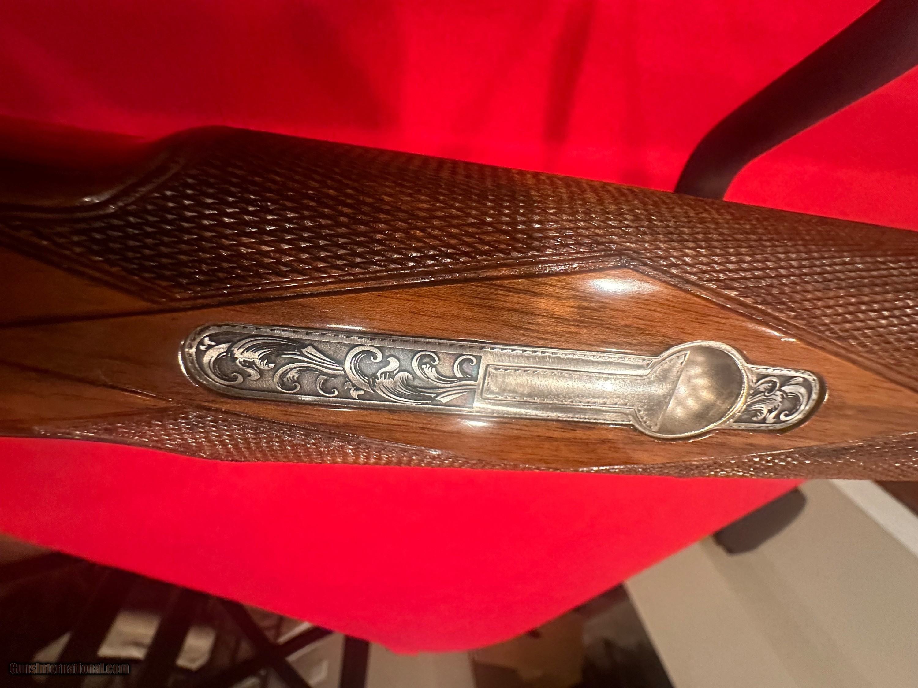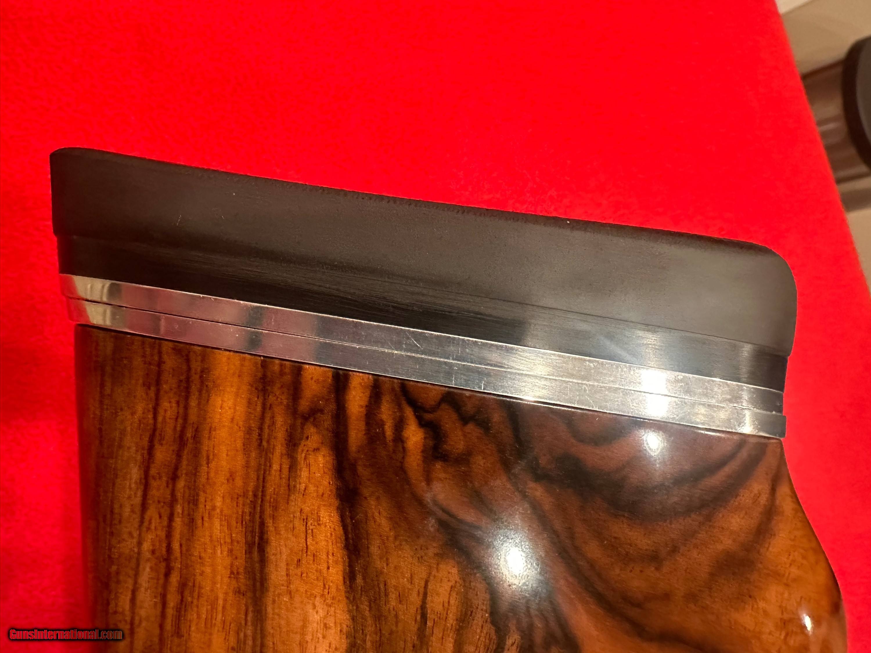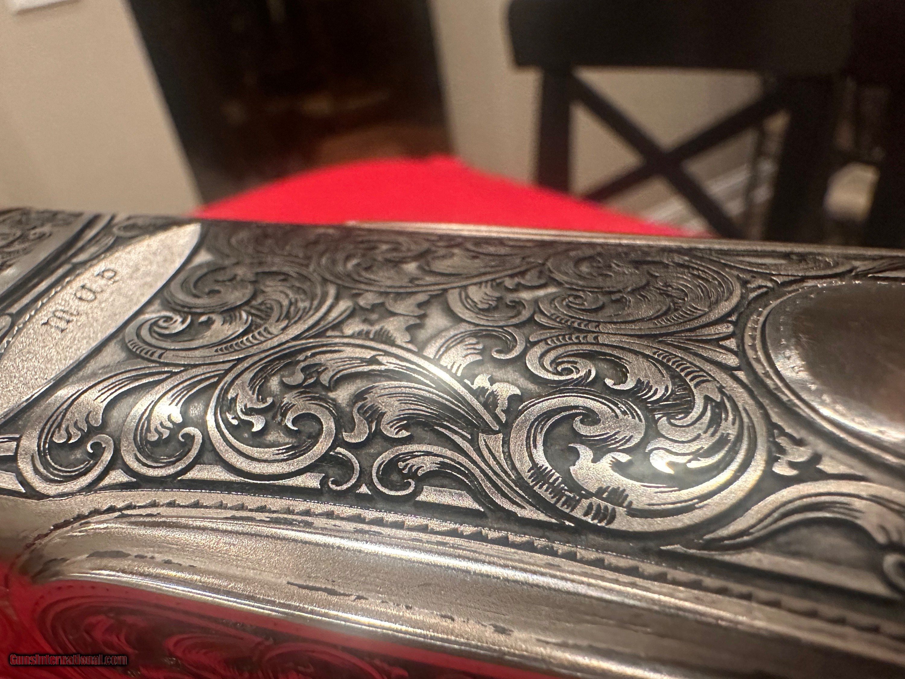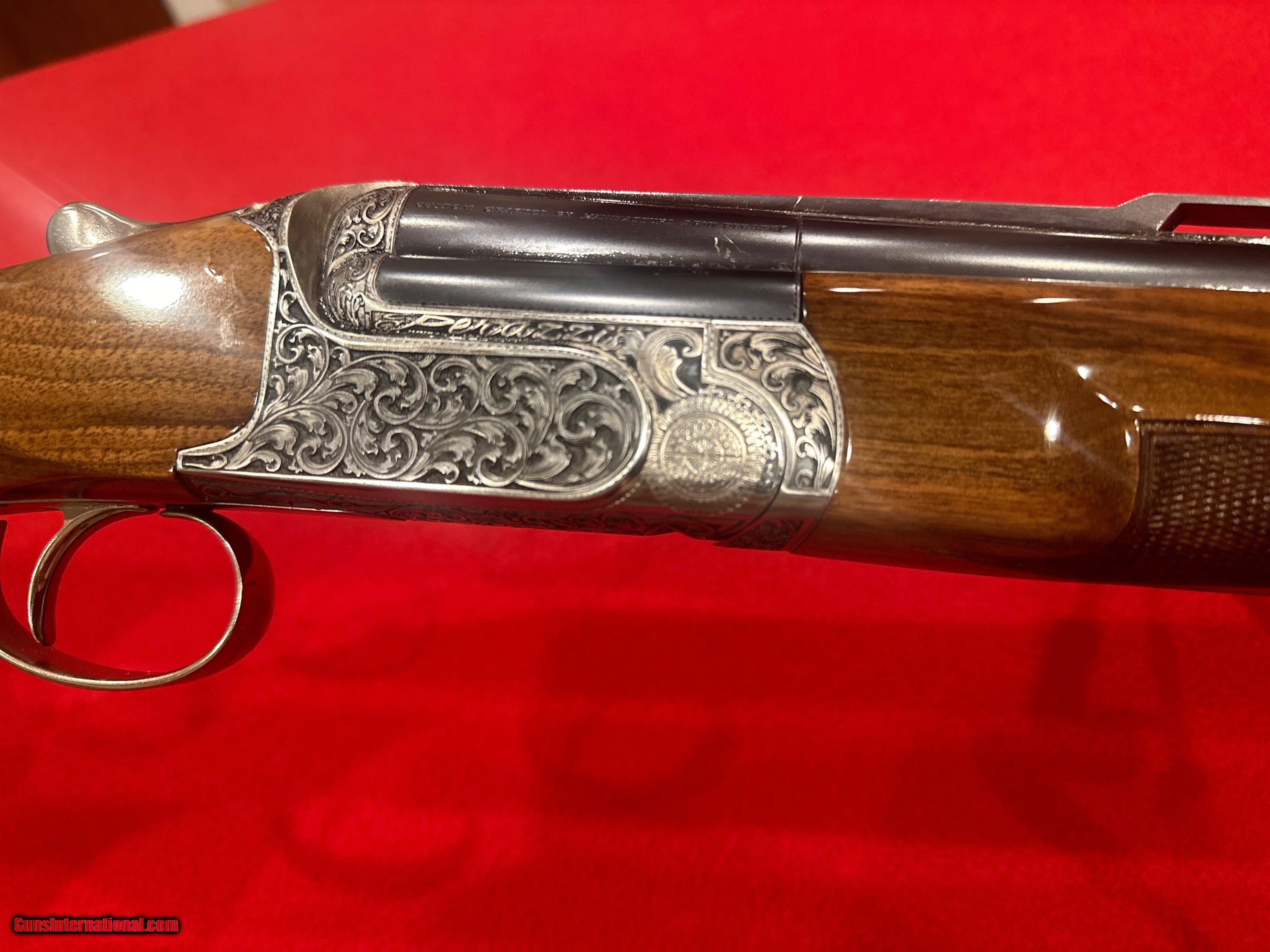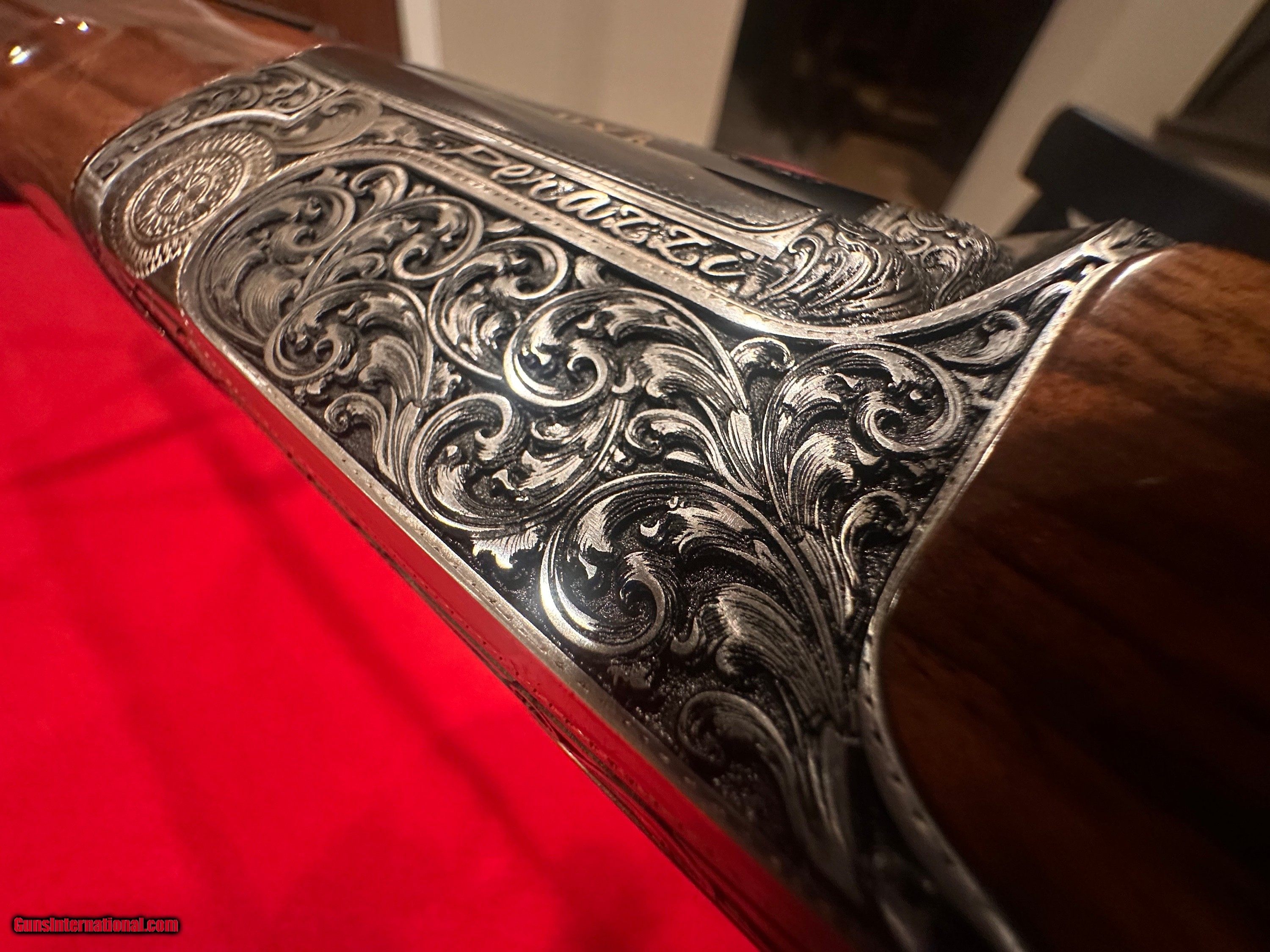 Description: Just in time for Christmas! A TRUE SAFE QUEEN ! Perazzi MX8 12 GA. 32” Step rib barrels Beautiful wood FULLY Engraved Briley thin Wall chokes Jones adjustable but plate New kick-eel pad 14.5 LOP 1.5 “DAC 1 5/8 “ DAH Comes in a perazzi case SOLD |