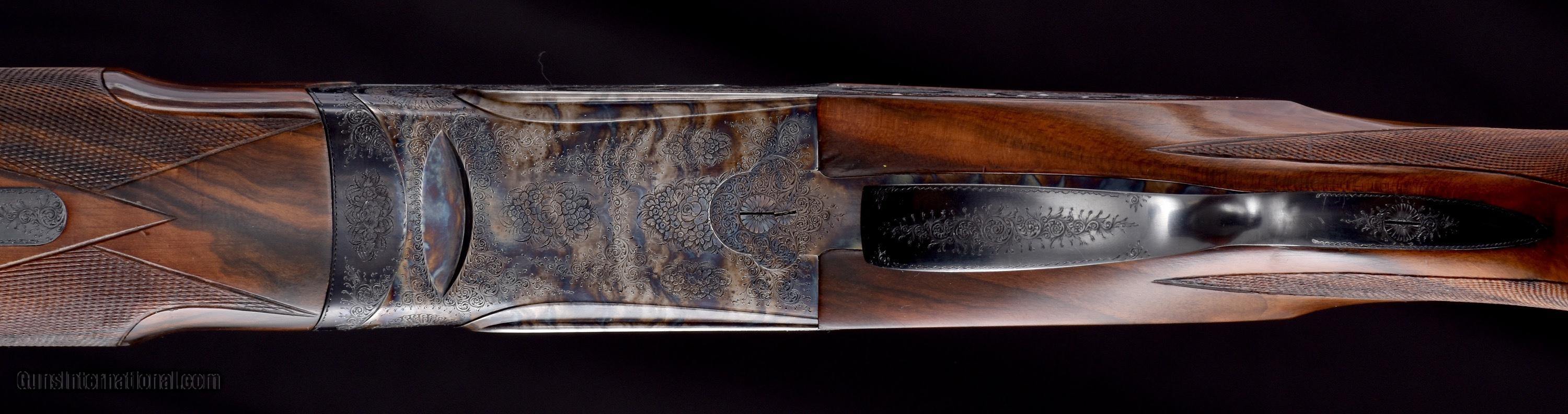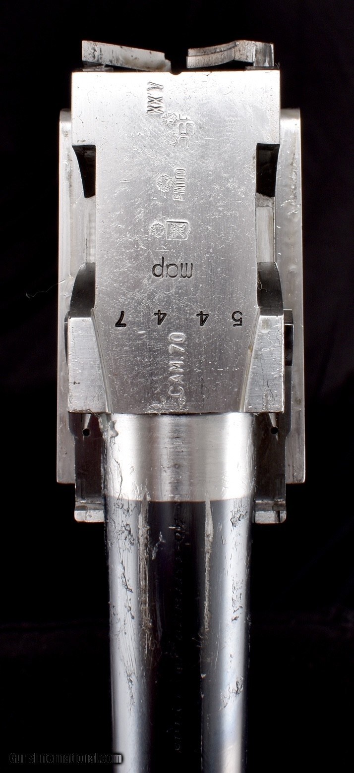 Description: Beautiful 12ga Perazzi SHO Quality gun made in 1969 with 28" barrels. Nicely checkered grooved forend. Case hardened action is beautifully scroll and floral engraved. Pistol grip buttstock is of nicely figured European stump walnut and butt terminates with a black pad and has an extra spacer which can easily be removed. Gun remains in excellent lightly field used condition with more than 97% original finish to wood and metal surfances. Stocks are excellent and sound. Bores are brilliant and shiny. Mechanics are crisp. This fine gun is priced at $9450 plus shipping to your FFL. Please dont hesitate to contact me at (704) 280-2382 or via PM on this site with any questions or reasonable offers. SOLD Shotgun Gauge: 12 Gauge Manufacturer: Perazzi Model: SHO Serial Number: 5447 Barrel Length: 28 Chambers: 2-3/4 Ejectors: Yes Condition: Excellent Metal Condition: Excellent Wood Condition: Excellent Bore Condition: Brilliant and shiny Triggers: SST Stock Comb: 1-5/8 Stock Heel: 2-1/4 Butt Pad: Black pad LOP: 15-1/2" to end of the pad. 14" to end of wood Weight: 8lbs 0oz Manufacture Date: 1969 Choke Left: Bottom- Imp. Mod Choke Right: Top. Light Mod Minimum Wall Thickness Left: Over .025 Minimum Wall Thickness Right: Over .025 |