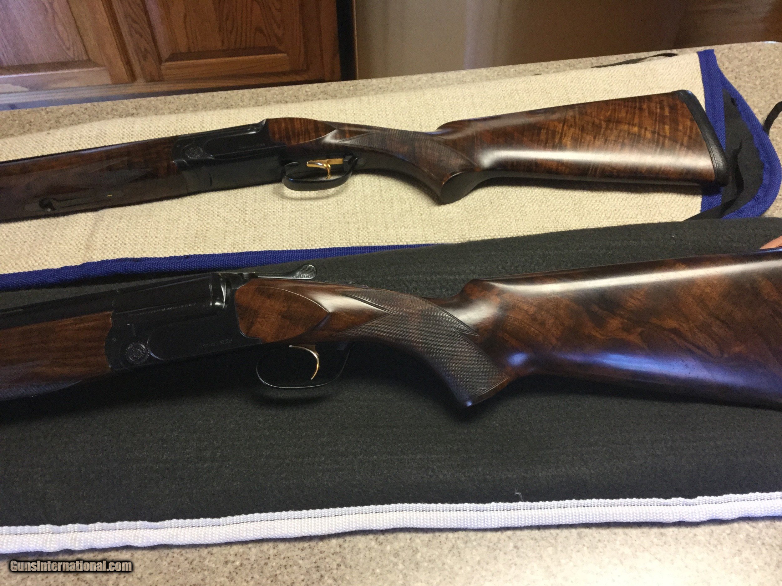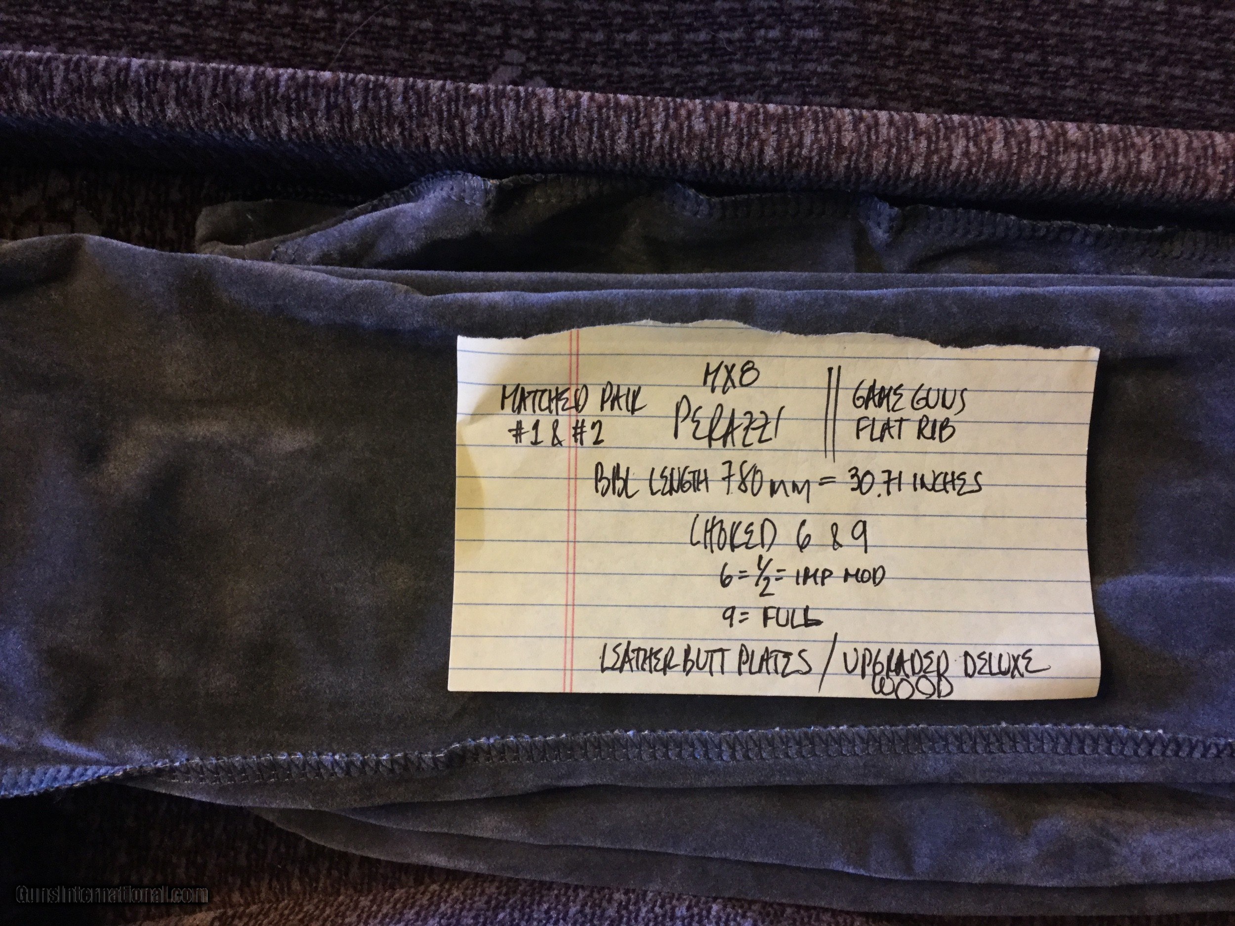 Description: Matched Pair game guns #1 and#2 .MX8 with 30" flat rib barrel choked imp mod and full with leather butt plates and upgraded deluxe wood. Only used on two shoots, excellent condition SOLD Shotgun Gauge: 12 Gauge Manufacturer: perazzi Model: MX8 Barrel Length: 30” Ejectors: Yes Condition: Ex Metal Condition: Ex Wood Condition: Ex Bore Condition: Ex Barrels: 30” Action: O/U LOP: 15” Rib: Flat Case: Yes |