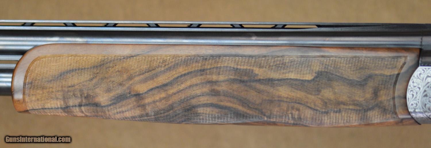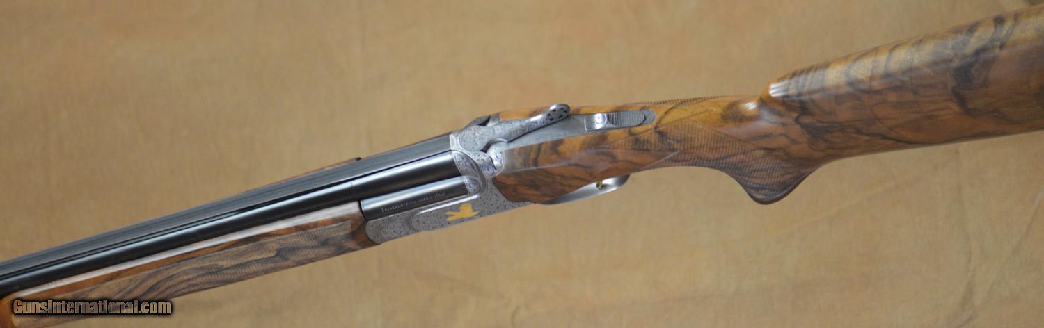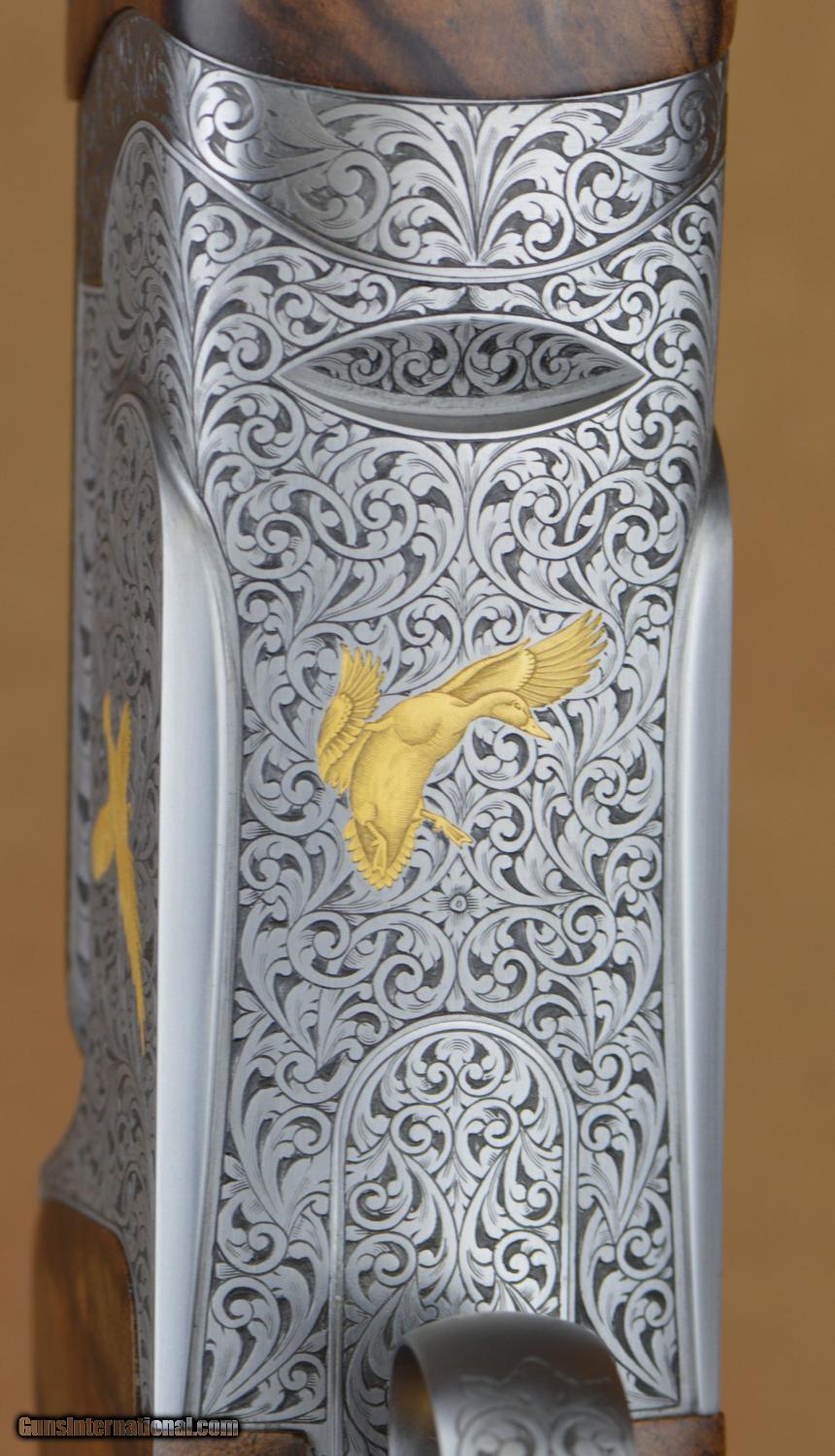 Description: New Perazzi MX8C SC3 Gold 12GA Sporting with 31 1/2" factory choke tubed barrels, 11x7 flat tramline rib. New SC3 Gold Pattern commissioned by Pacific Sporting Arms, this is the first of this excellent new engraving pattern, #100 scroll pattern featuring gold birds by Italian Master Engraver Narcisi. Factory pistol grip stock with right-hand palmswell and fully checkered English Sporting forearm. Includes factory case, chokes and tools. SOLD |