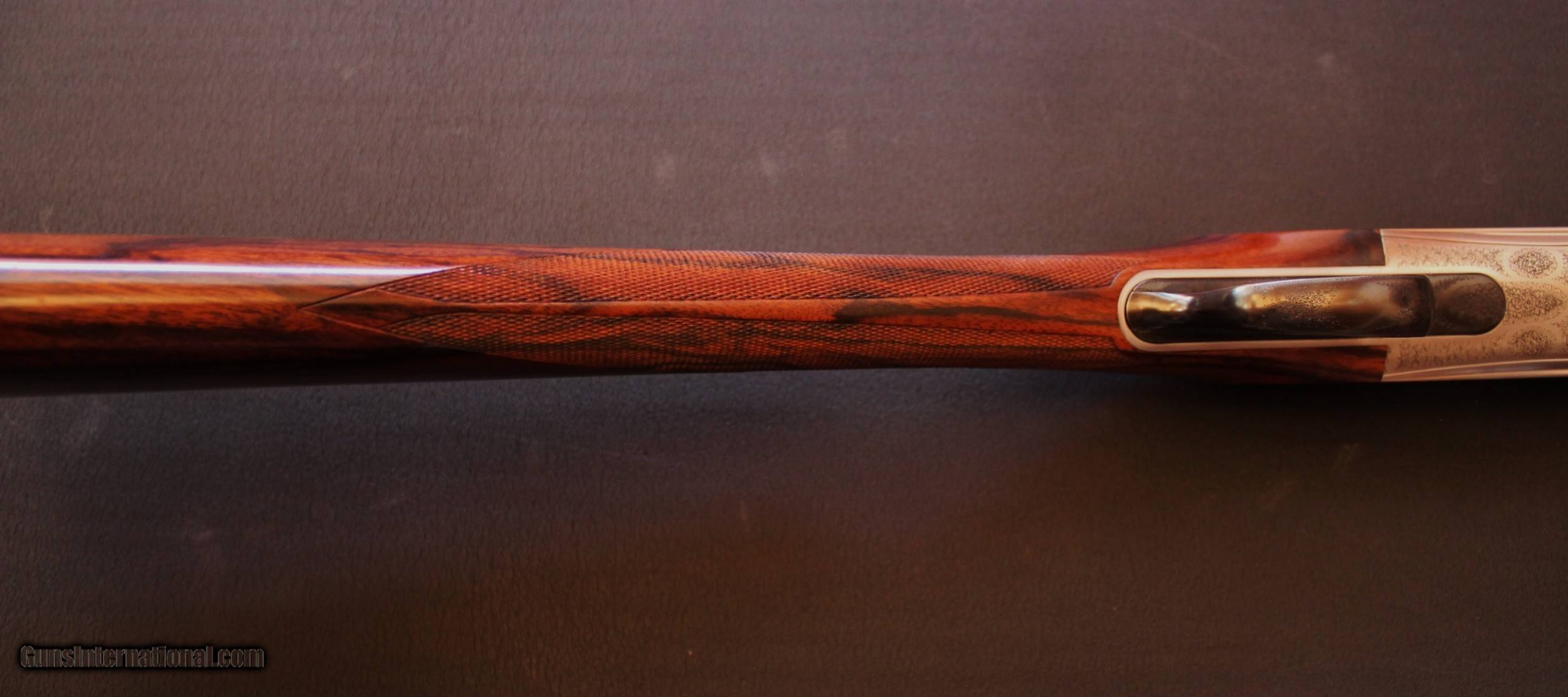 Description: FOR YOUR CONSIDERATION AN EXTREMELY RARE PERAZZI 20 GAUGE GAME GUN.ONE OF ONLY 3 MADE. THIS GUN IS FROM THE FIRST RUN OF 49 GUNS . THE SECOND RUN OF 84 HAD A LARGER FRAME. ABOUT 30 OF THE TOTAL OF THE TWO RUNS CAME TO THE USA.. OF THE OF 133 GUNS 3 HAD DROP OUT TRIGGERS. THE LAST GUN OF THE SECOND WENT TO MR. PERAZZI. THIS GUN WAS ENGRAVED BY IORA. SC4 GRADE WEIGHS JUST 6 LBS 5 OZ. BARRELS ARE 27 7/8" CHOKED MOD/IMP. MOD LOP 14 3/4" TO BACK OF PAD. DROP 1 1/2"-- 2 1/4". VERY SLIGHT CAST OFF. IN PHOTO SECTION IS A COPY OF PAGE 30 FROM MR. KARL LIPPARDS BOOK (PERAZZI SHOTGUNS) DETAILING THESE GUNS. AN INCREDIBLY RARE PERAZZI . . SOLD |