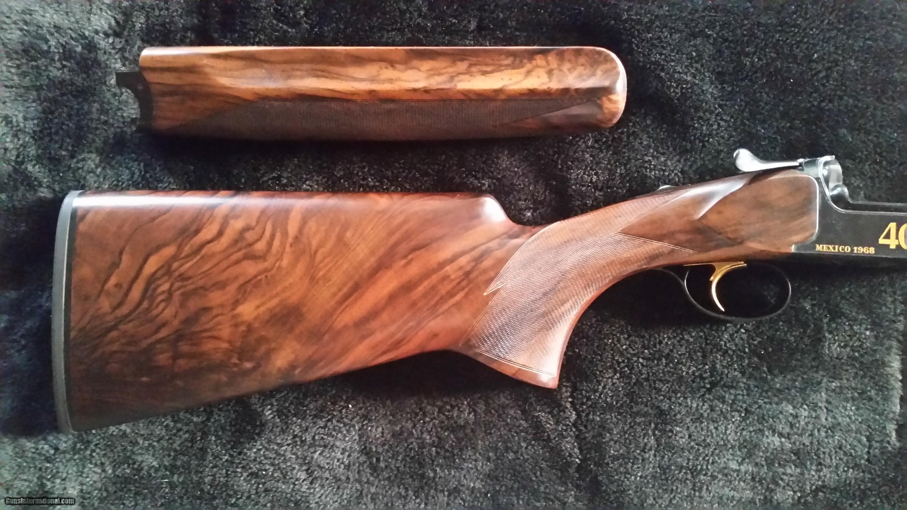Description: This gun was released in 2008 to celebrate the 40th anniversary of the 1968 Olympics. There were 40 guns sold numbered 1 to 40 this gun is the (number one gun) I have owned this gun from new it has never been fired except for (factory test) and when opened the forend has been removed first. The gun is in perfect factory condition. SOLD Manufacturer: Perazzi Model: MX8 1/40 Serial Number: 140401 Ejectors: Yes Condition: Factory Metal Condition: Factory Wood Condition: Factory Bore Condition: Factory Triggers: one Gauge Info: 12g Fore End: trap Rib: 11x11 flat Sights: red Manufacture Date: 2008 Chokes: No Choke Left: Bottom 7/10 Engraving: 1/40 Extras: Top barrel 10x10 chocking Case: Yes |