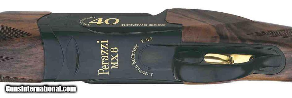 Description: Perazzi Number one of 40 MX8 Released in 2008 to celibate the 40th anniversary of the MX8 for the 1968 Mexico Olympics. Gun is in factory condition never been fired therefore brand new and never been on the market. SOLD Manufacturer: Perazzi Model: 1/40 Anninversary MX8 Serial Number: 1/40 Ejectors: yes Gauge Info: 12g |