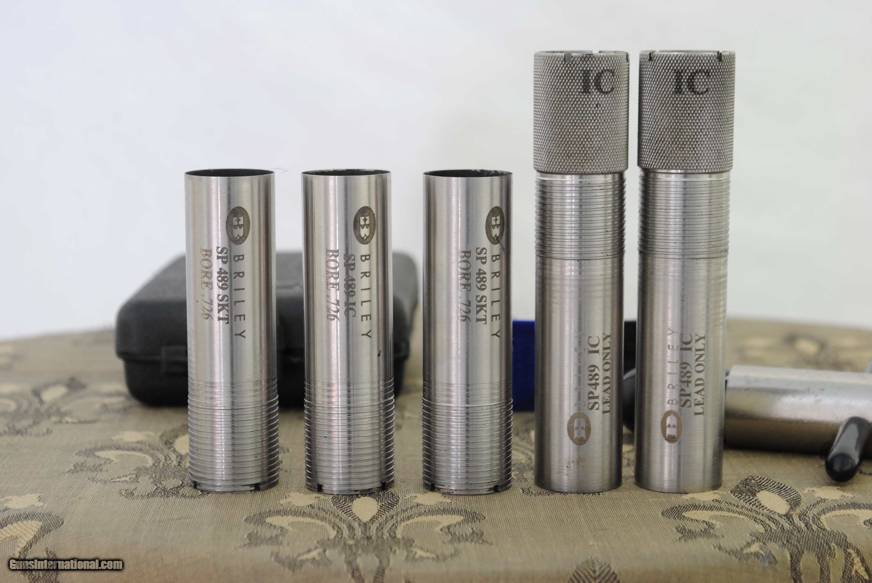 Description: Perazzi 30" Type 3 barrels. Briley thin wall SP 489 chokes in both barrels. The following choke tubes are provided; two Skt, one IC, two extended IC, one Light Mod and one Imp Mod. Bottom barrel measures .726 while the top is .725. Mirror bores. Side ribs and top rib are tight. Barrels are 30" (nominal) and have a step, non tapered - 11MM x 11MM rib. Bottom barrel is ported in compliance with ISSF standards (can be used in international competitions). Barrel weight is stamped 1,590. On my scale it measures 1,537. Perazzi original front and center beads. Shipping is $50 SOLD Shotgun Gauge: 12 Gauge |