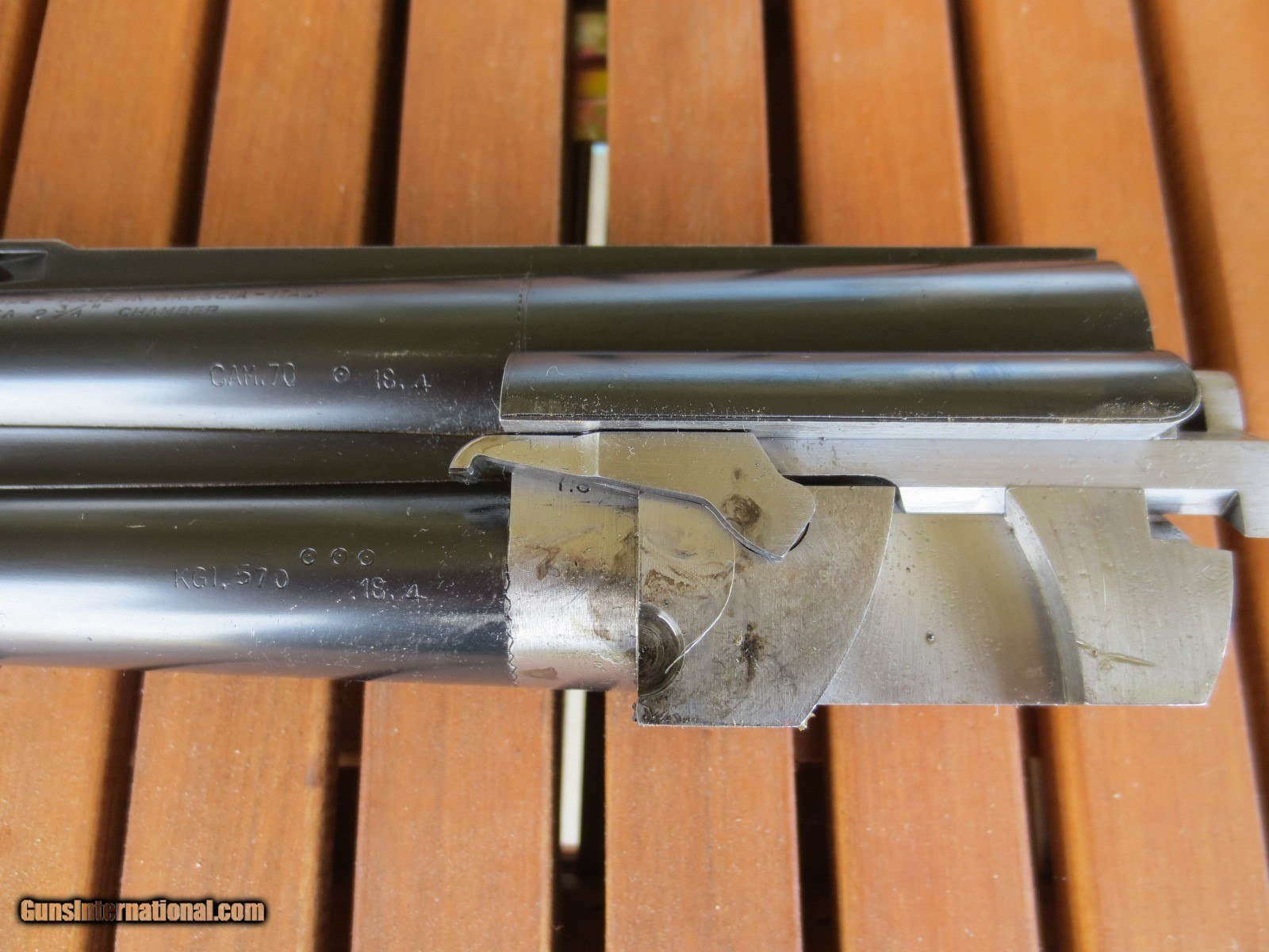 Description: For sale is a type four, Perazzi 29.5" O/U barrel that is choke tubed with three Briley thin wall chokes. SN 66xxx. Small stepped, tapered rib 11x7mm. These are shootable 12 ga. barrels. Not carrier barrels. Skeet(.05), I.C.(.012) and Mod(.018) are the constictions of the choke tubes. In addition, there are fitted Briley 26" sub gauge tubes. All three, .410, 28ga. and 20ga., are skeet choked. The 28ga and 20ga are fixed choked at skeet/skeet. However, the .410 has removable Briley chokes that are skeet configuration. The barrel bore is 18.4. The barrel weight is 1.57kg(3 pounds 4.5 ounces). without the sub gauge tubes. With sub gauge tubes installed the barrel weight is 4 pounds. The forcing cones are original. I show pictures of the complete gun to prove these barrels do fit on any Perazzi square mono block MX8 receiver. The photos will show some minor staining on the mono block side of the barrels. Not galling. There is a small blemish on the bluing at the muzzle end. The receiver, iron, trigger, wood and case are specifically not included. The case is for sale at an additional $200.00 if purchased with the barrels. The wood is also available for an additonal $350.00 if purchased with the barrel. All shipping is included. SOLD Manufacturer: Perazzi Model: Mirage (MX8) Serial Number: 66xxx Caliber Info: 12ga Bore: 18.4 Chambers: 2 3/4 Ejectors: yes Condition: 92 Percent Bore Condition: bright and shiny no pits Barrels: 29,5" Briley choked Barrel Type: Fluid steel, O/U, small step, tapered, 11x7mm, vent rib Finish: blued Weight: 1.57 kg barrel weight Sights: front and mid bead Chokes: Briley thin wall flush chokes Proof:Nitro: yes |