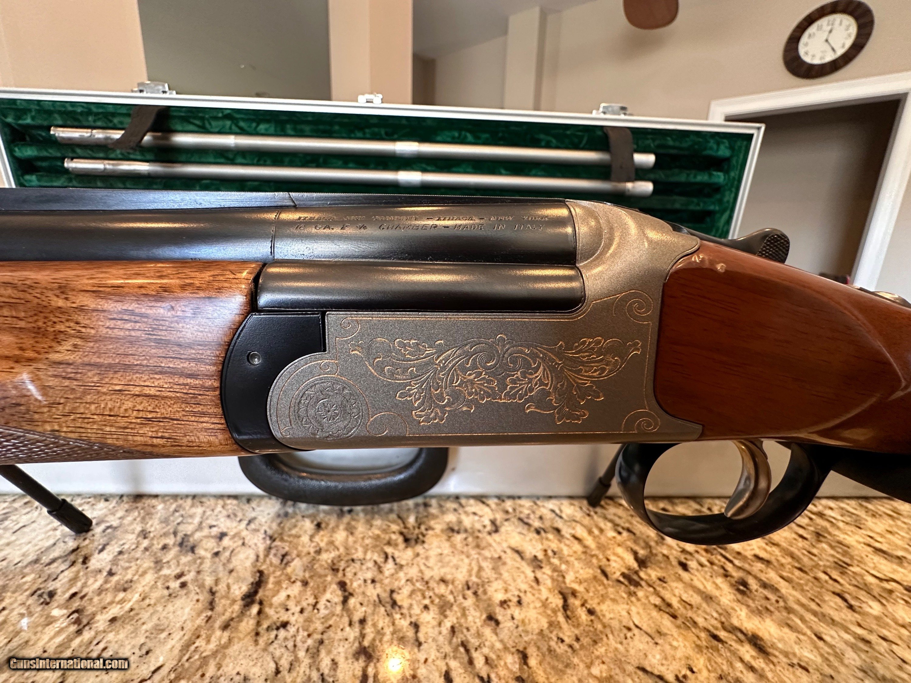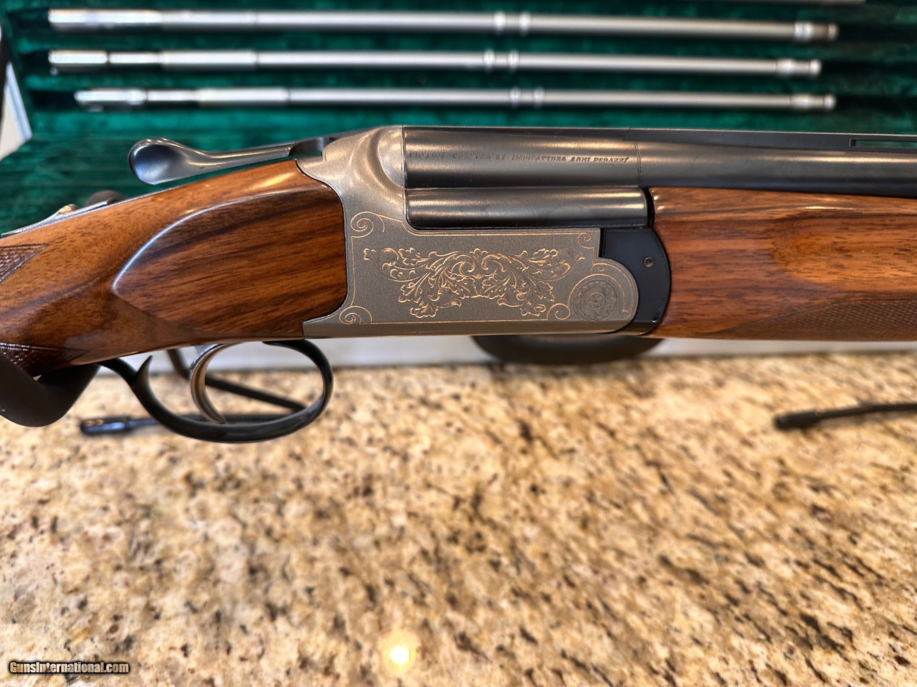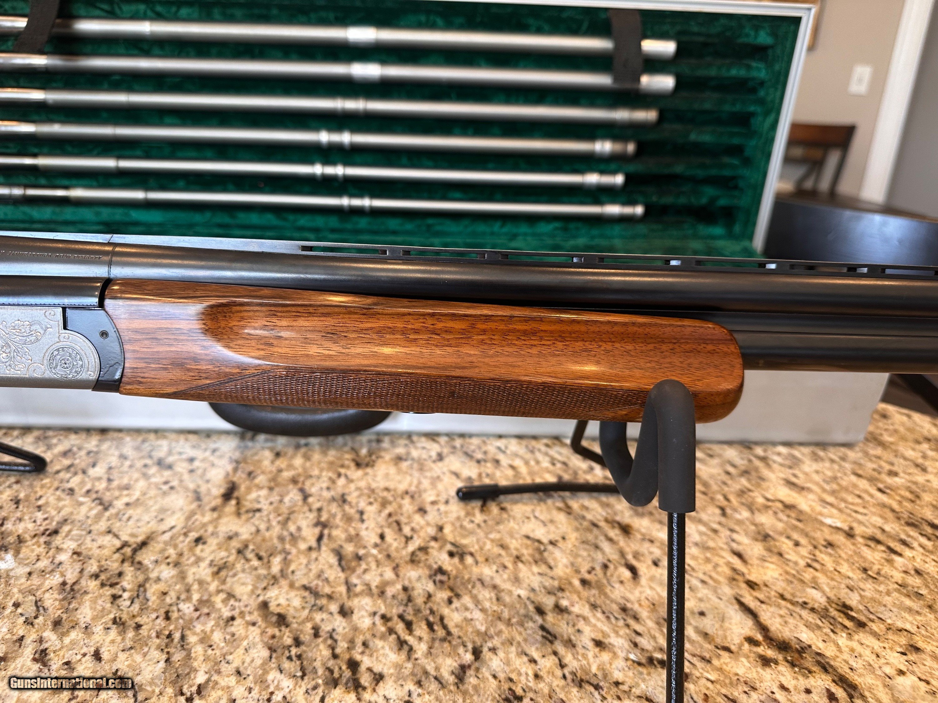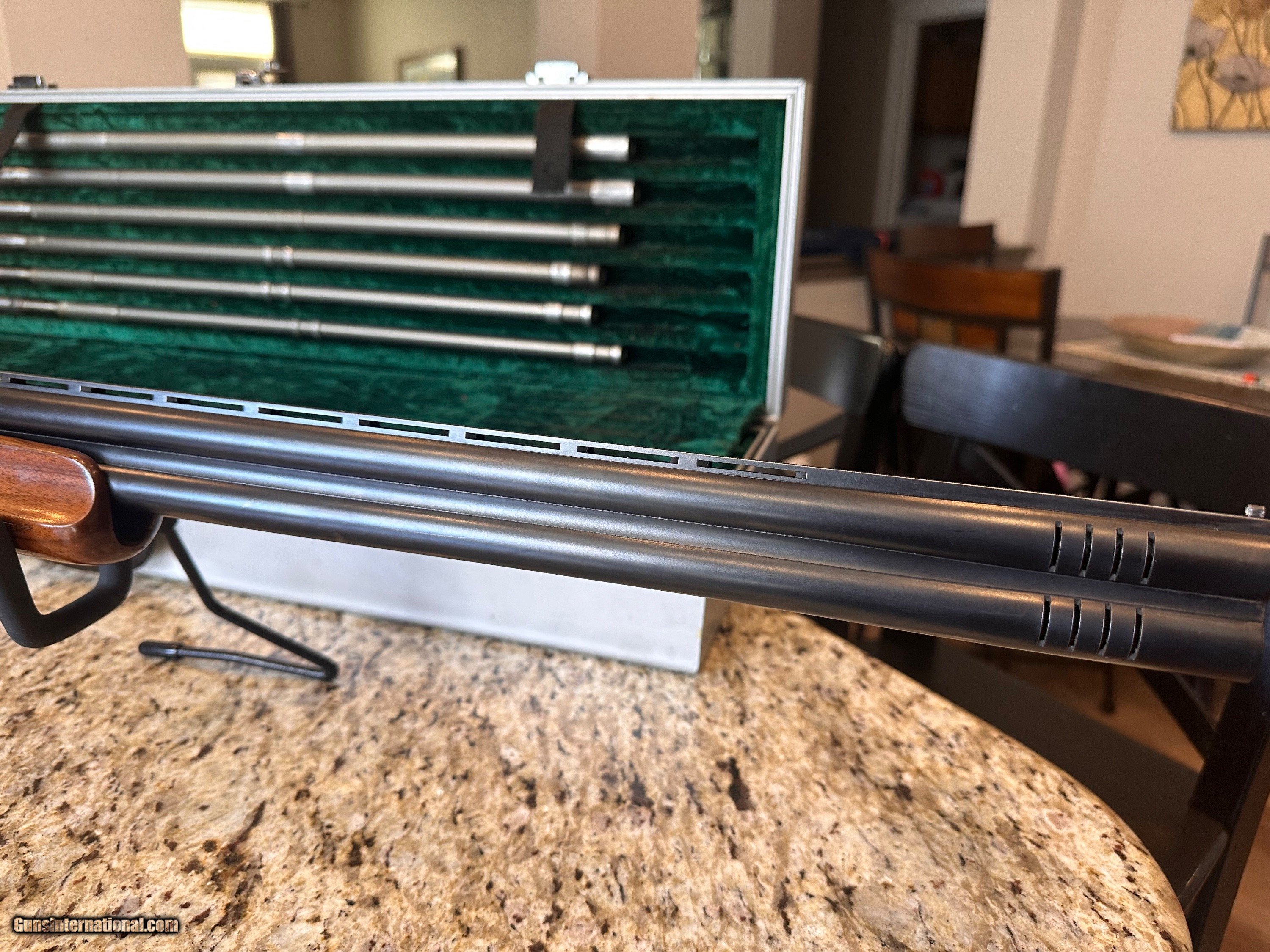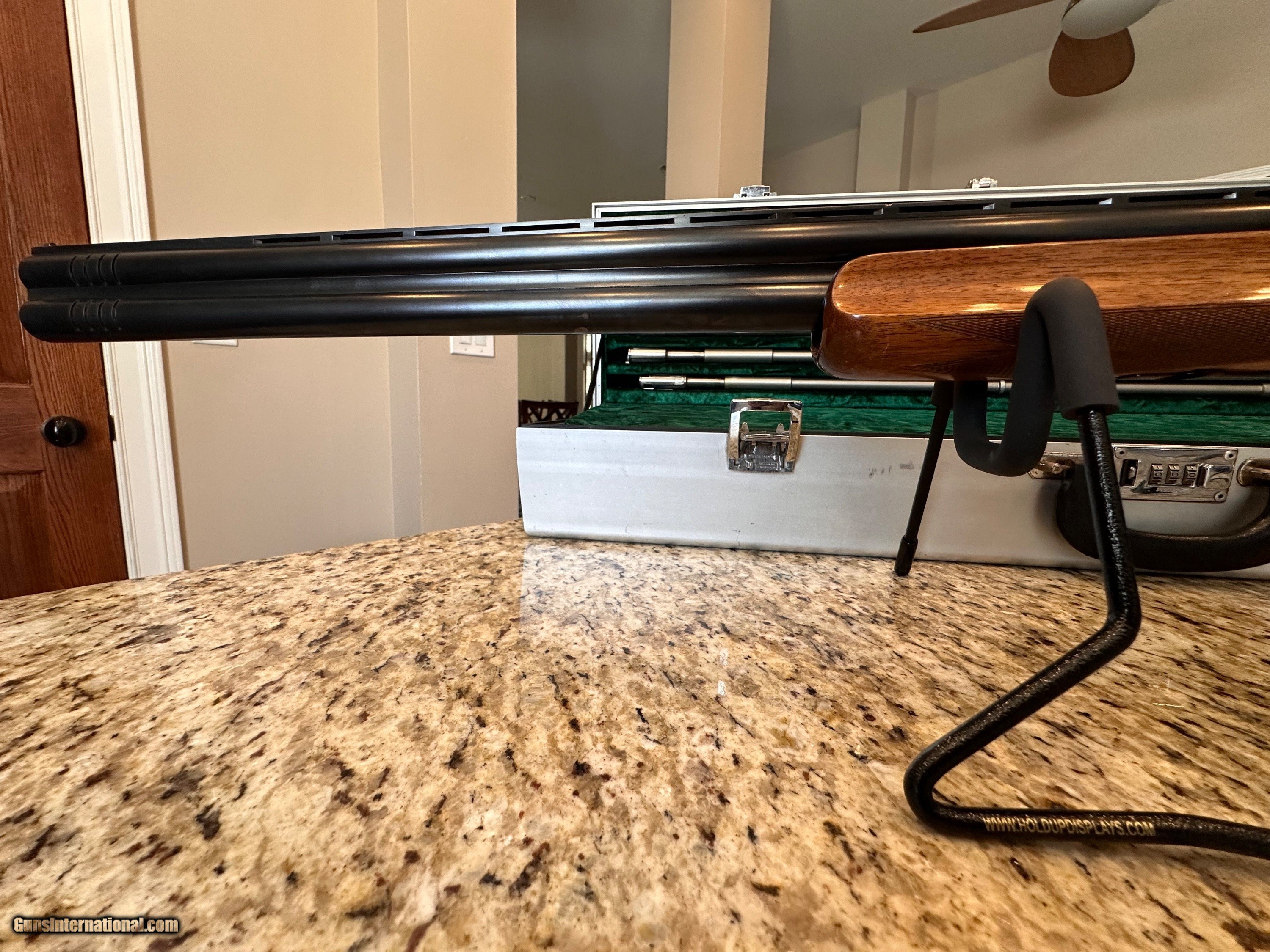 Description: Here we have a beautiful 1974 Perazzi Comp 1 otherwise known as the Mirage. This gun comes with 27 1/2 inch barrels fixed skeet and skeet , with a complete set of Kolar sub gauge tubes . It comes with an adjustable LOP buttpad . Also has a adjustable comb! The wood is amazing ! Besides two small handling marks, one on the forearm , and one on the stock it is almost flawless, it comes in an Americase . ALL NUMBERS MATCH ! 5750.00 SOLD Shotgun Gauge: 12 Gauge Manufacturer: Perazzi Model: Comp 1 Condition: Immacualte Metal Condition: Perfect Wood Condition: 99% Bore Condition: Excellent Action: Over under |