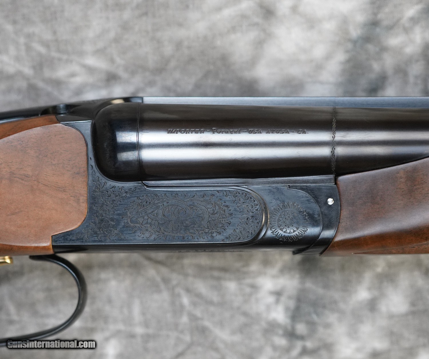 Description: New Perazzi DC Side by Side Sporting 12GA with 32" fixed choke (.024/.028) barrels, 4mm stepped tramline rib. Blued action with fully hand-engraved Lusso pattern featuring florals and scrolls by Terri. Factory removable, selective trigger and pierced top-lever. Factory SC2 grade pistol grip sporting stock with factory adj. comb, right-hand palmswell and full beavertail forearm. Includes factory case, tools. Call 626-633-1002 for pricing. SOLD Shotgun Gauge: 12 Gauge |