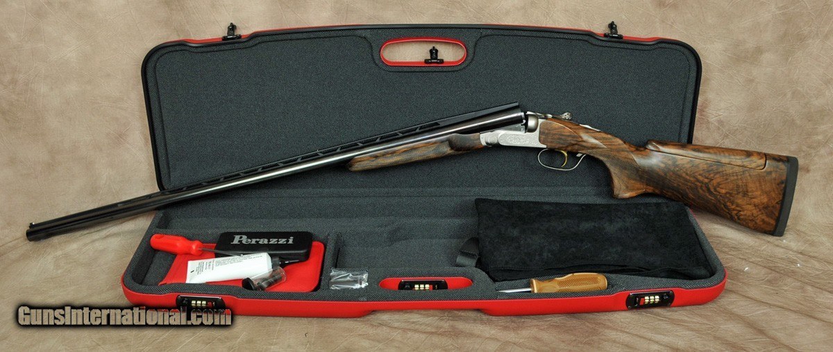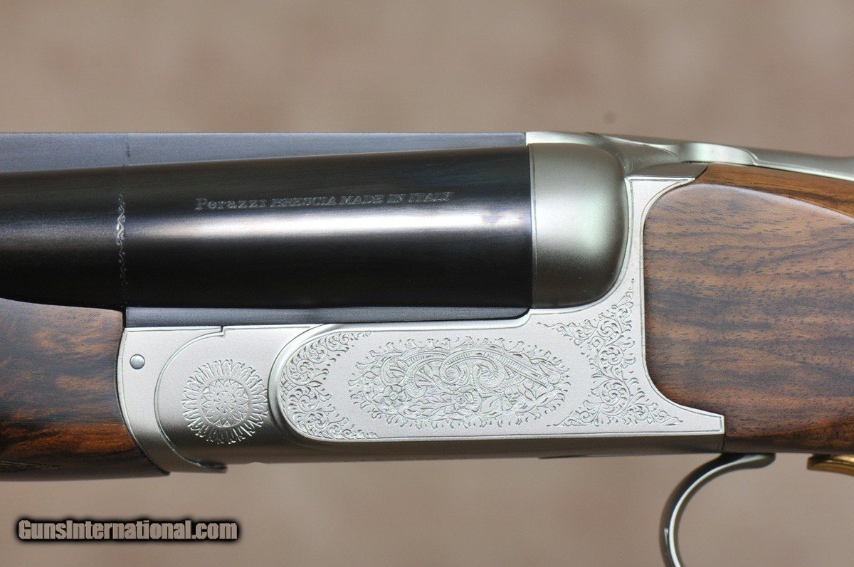 Description: New Perazzi DC12 Lusso Sporter. . Remove Able and Select able Trigger with flat springs and pierced top lever. Highly figured SC3 sporting stock with adjustable comb and Gold Monogram. 31 1/2″ fixed choke barrel (M/IM) with 11 mm x 7 mm tapered step rib with 4 mm ramp for quick target acquisition. Stock dimensions are; 1 1/2″ x 2 1/4″. LOP 14 3/4″. Over all 8 lbs 15 oz. factory hard case included. SOLD |