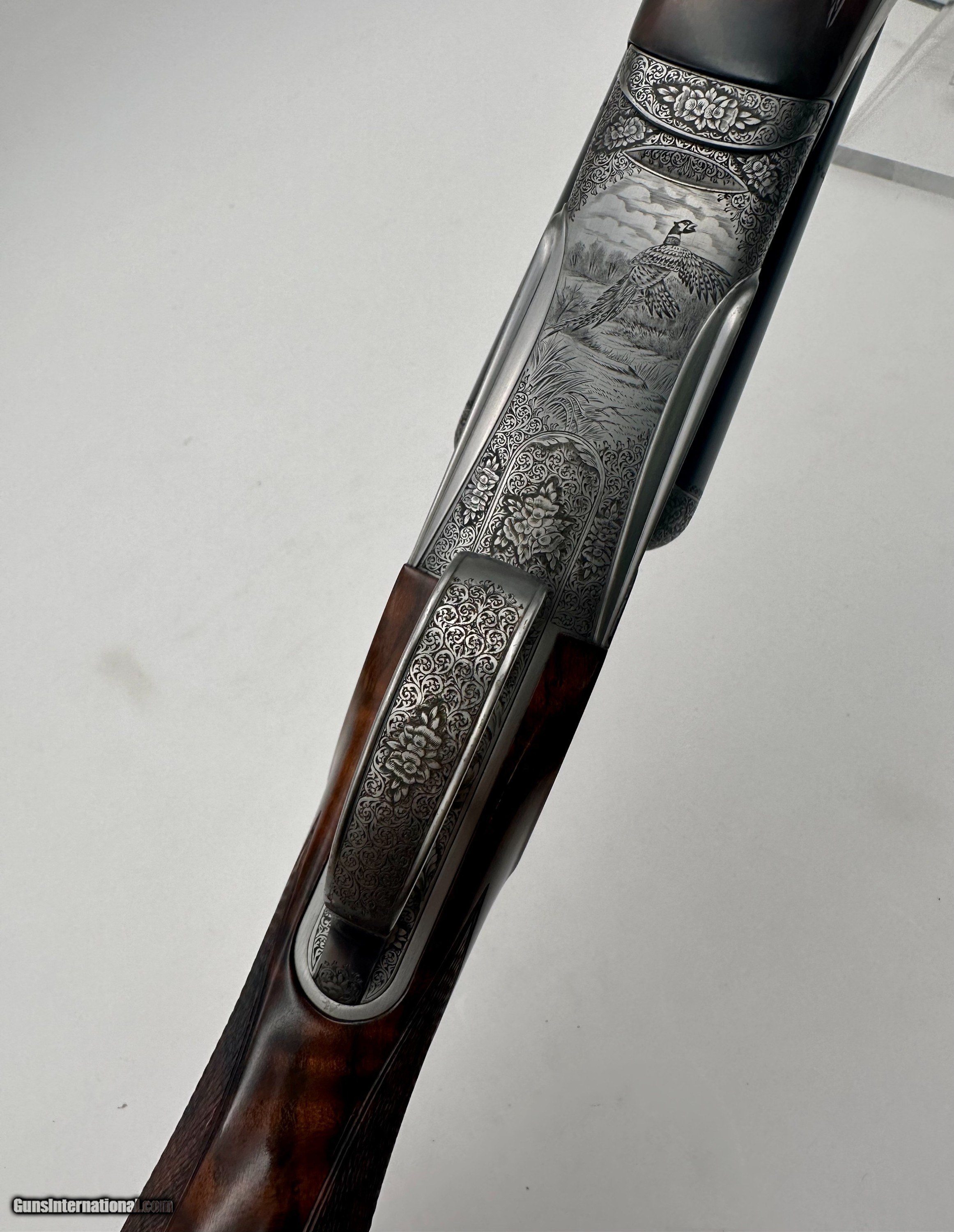 Description: Perazzi DC20 SCO Grade side x side. All original serial number matching #153XXX. Very hard to find SCO DC20 and in Mint condition. Pierced top lever with dropout trigger and gold crown top latch. Engraved and signed by Galeazzi Fausto Barrel specs: 29.5 inch 20 gauge 1.370kg 15.9 bore Tapered 8x6 flat rib Fixed choke Mod and Full Stock dimensions: 1.375 x 2.12 Left hand palm swell 3/8 cast on toe for left handed shooter Length of pull 15 inches SOLD Shotgun Gauge: 20 Gauge |