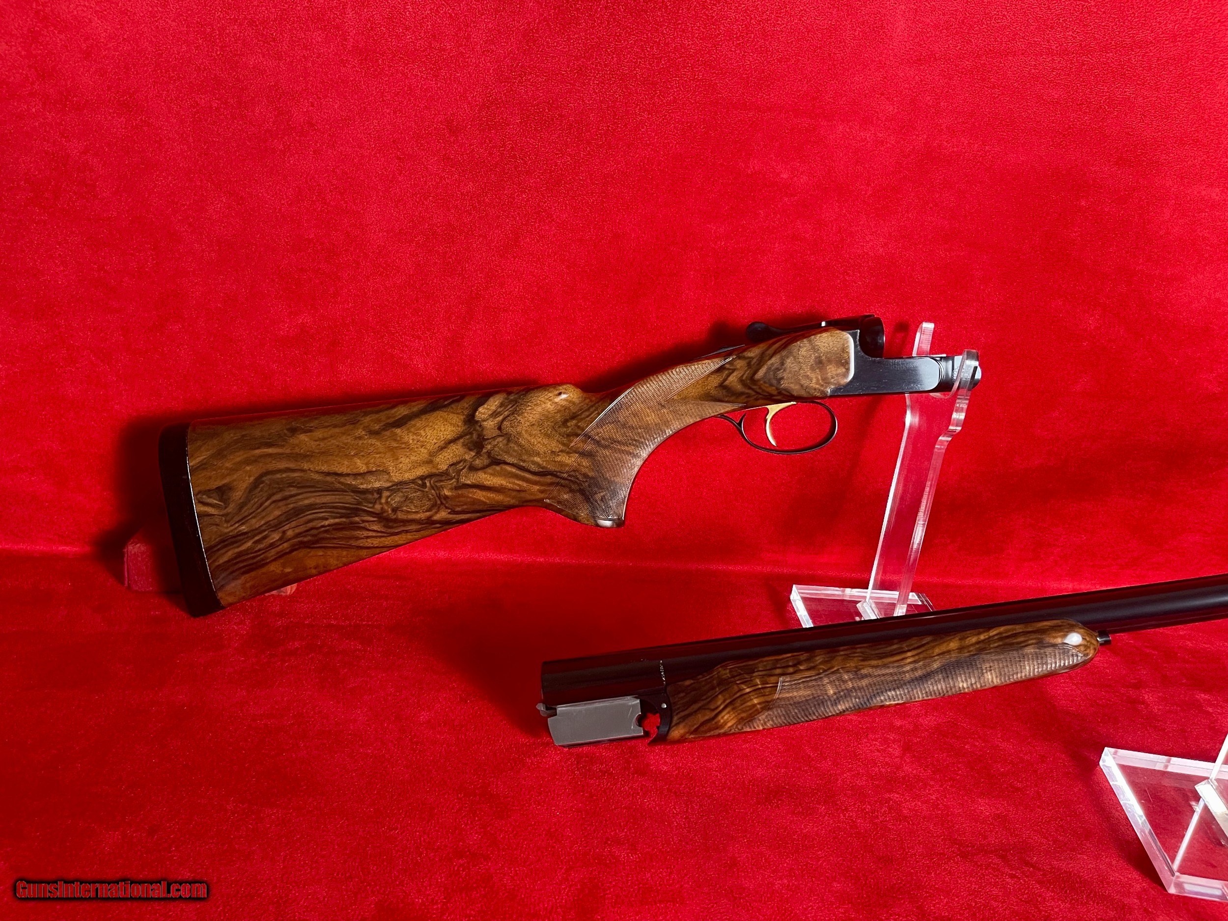 Description: Perazzi DC20 side by side 20 gauge with dropout trigger. In Pristine/MINT condition. Serial #154XXX. Beautiful upgraded SC3 wood that could easily be considered SCO grade Barrel Specs: 28 3/8 inch 15.9 bore 1.320KG 20 Gauge Fixed .016 right barrel and .030 Left barrel Stock dimensions: 1.375 x 1.97 3/8 cast off at toe No palm swell Length of pull 15 inches Leather covered recoil pad Gun comes complete with original case/tools/books. These 20 gauge DC’s are getting harder to find and this one is like NEW SOLD |