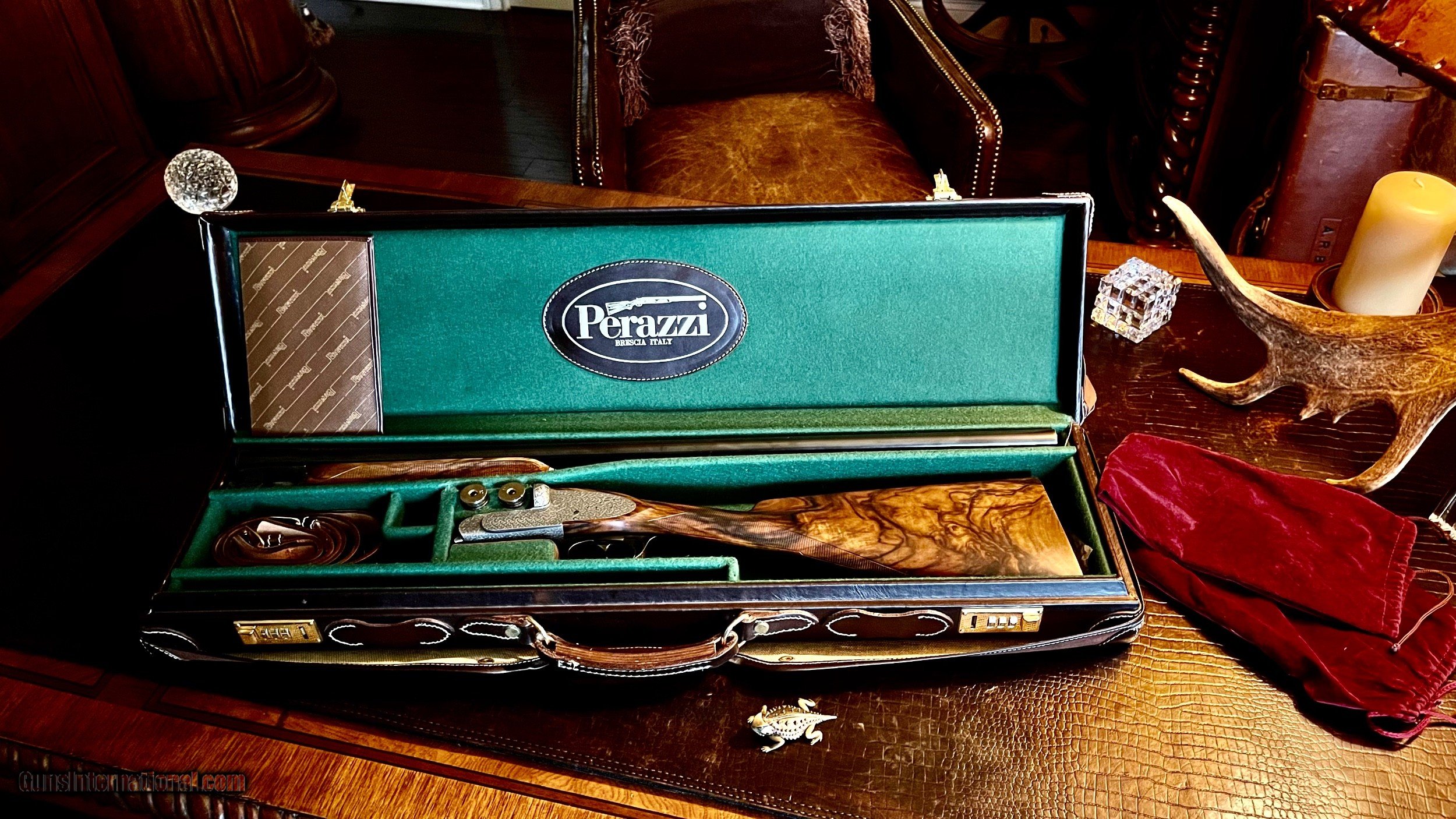 Perazzi DHO SXS 12ga Live Pigeon Style - 28” - IC/IM - DT - English Grip - Galeazzi Master Engraver - Finest Maker’s Case Cover and Accessories