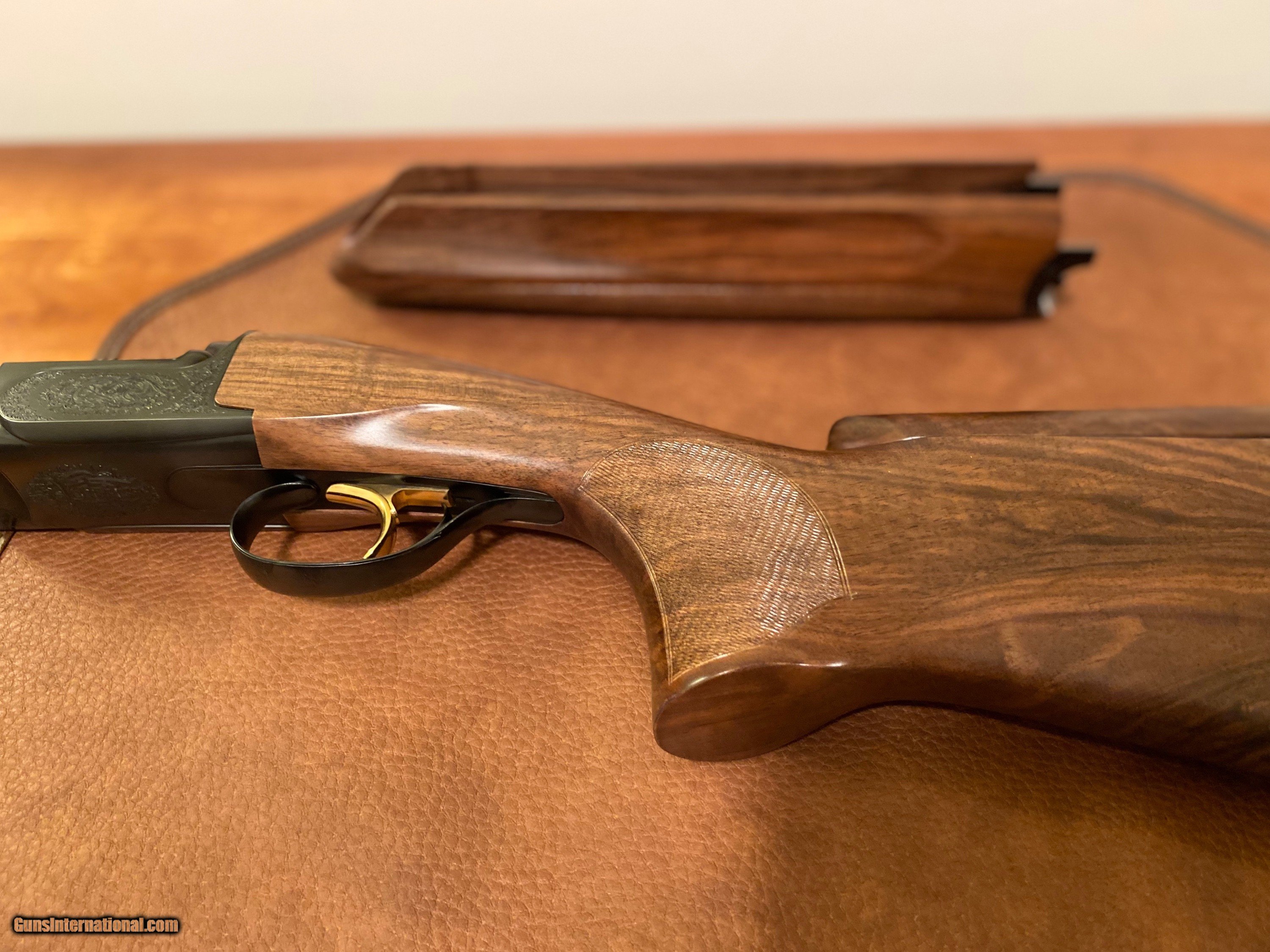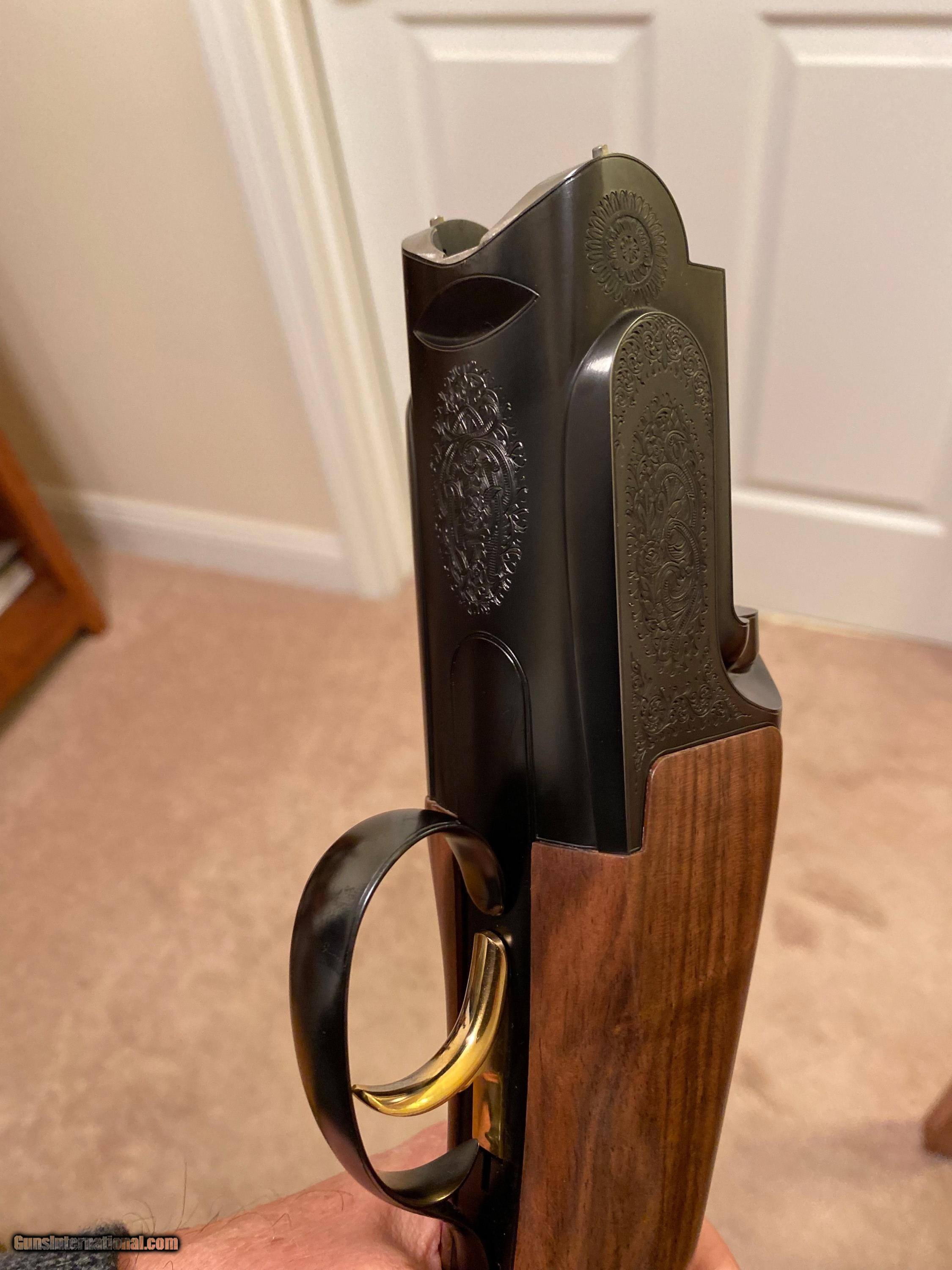Description: Here is a 2018 Perazzi Hi-Tech Lusso S, 12 Gauge, with Tom Wilkinson Barrel work which includes Backboring. The barrels are 33 inches with Tom Wilkinson chokes; eight chokes total, 1-.05, 2-..010, 2-.015, 1-.020, and 2-.025. The bore is .739, both barrels, the chokes are flush and Tom's work is so precise you can hardly tell the gun has chokes, his work is truly outstanding. The best patterning shotgun I have ever owned and I have owned some of the finest. The gun is very soft shooting and is a rock solid pointer. This is a non dropout coil spring trigger group with the barrel selector by the safety. The total weight of the gun put together is 8.7 lbs., It has beautiful Lusso engraving done by Terri with a pierced top latch. There is bluing wear to the barrel where the forend attaches and by the barrel selector/safety and top latch area. The stock and forend wood is in mint condition and the demensions are; 1/38 x 1/12, 2/18 MC, 14/14 LOP with Perazzi Adjustable Comb. The rib is 7 x 7 mm and has a mid bead and a white Bradley style front site. No excuses with this Perazzi!!!! This is a lovely Perazzi and comes with everything it came with when new. Thank you for looking and remember it is always "GO TIME!!!! $10995.00 SOLD Shotgun Gauge: 12 Gauge Manufacturer: Perazzi Model: HTLS Serial Number: 159xxx Barrel Length: 33 Bore: .739 Condition: Excellent Metal Condition: Excellent Wood Condition: Excellent Bore Condition: Bright and Shiny Triggers: SST Weight: 8.7 lbs. Manufacture Date: 2018 Chokes: Adjustable |