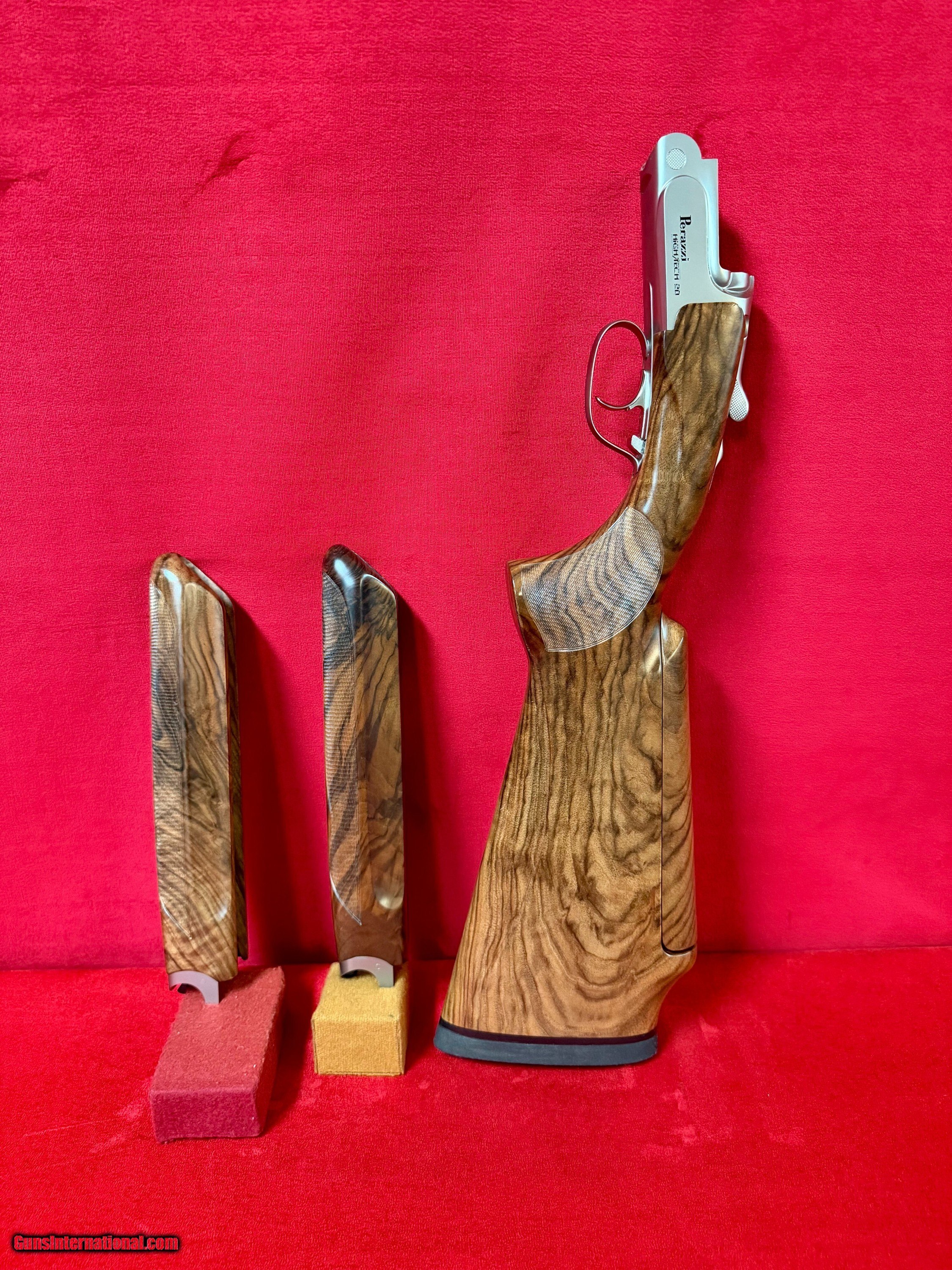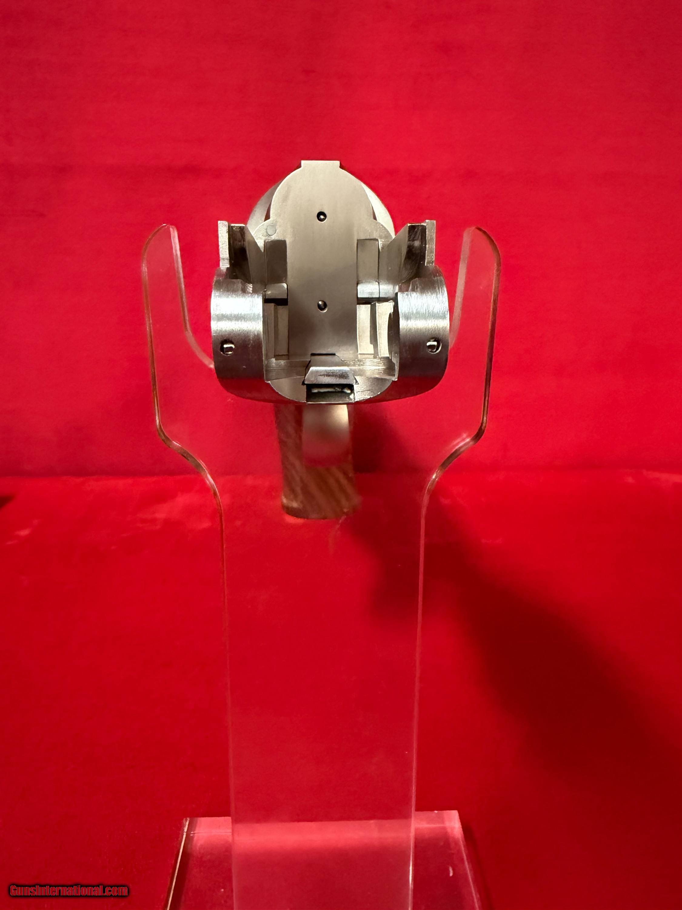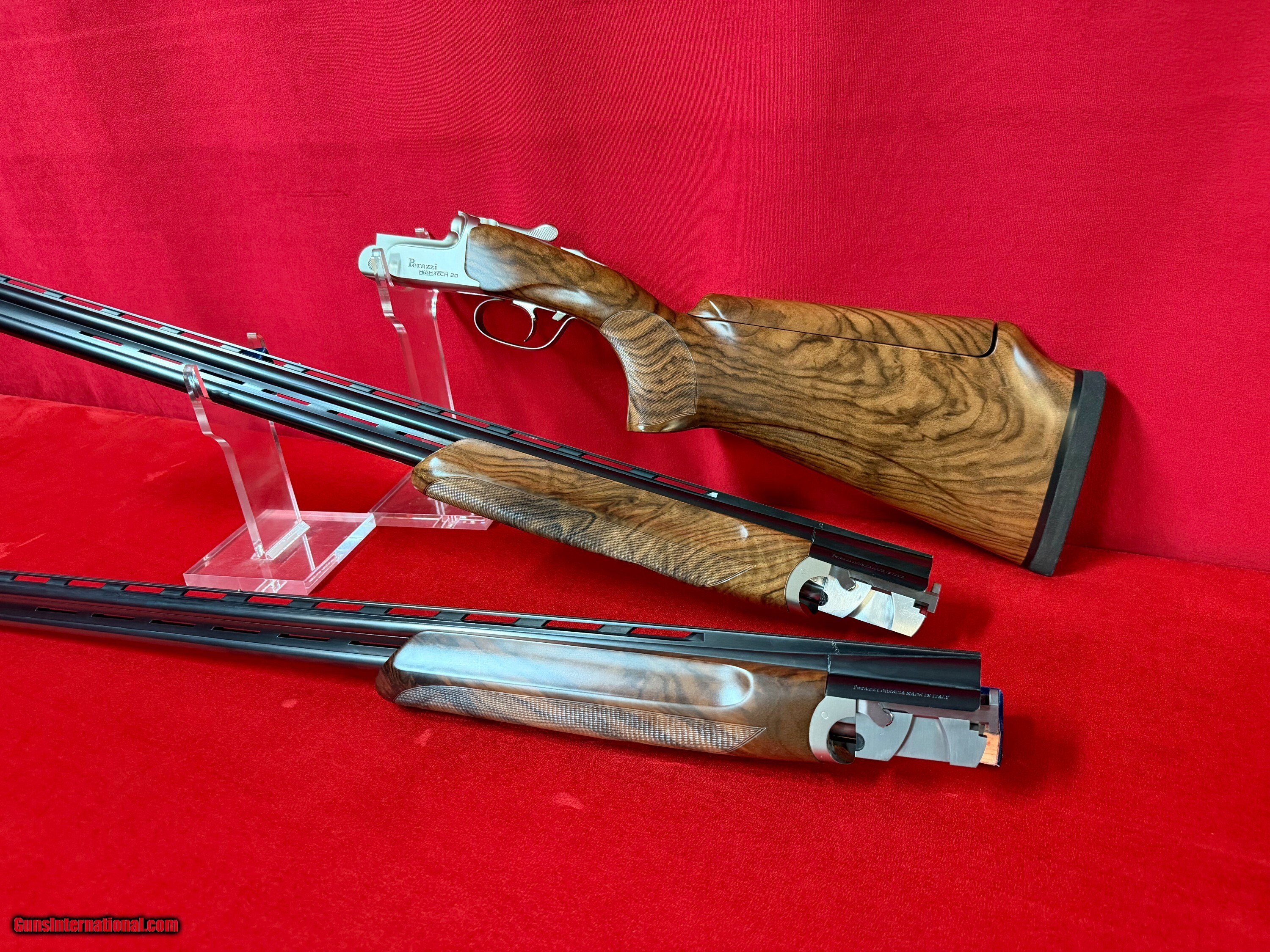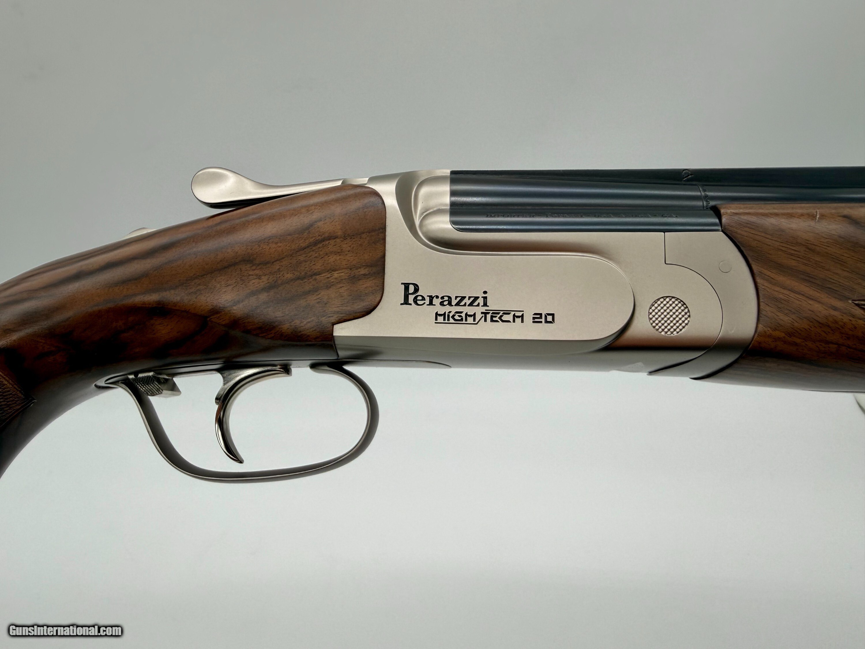 Perazzi High Tech 20 Combo with 32 inch 28 gauge and 410 gauge barrels each with their own individual forearms and irons. All serial numbers matching #165XXX. Gun is absolutely PRISTINE Like NEW in fact the 410 barrel has never been fired and the 28 gauge barrel has less than 4 boxes fired through it. Gun has SC3 wood upgrade with dropout leaf spring externally selectable trigger group and factory adjustable comb. Gun weighs a perfect 8 pounds 7 ounces and balances beautifully. Gun also has the upgraded all nickel package so forearm iron, trigger, top lever and safety button all in nickel