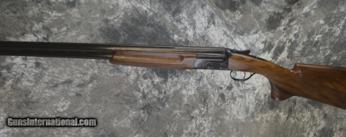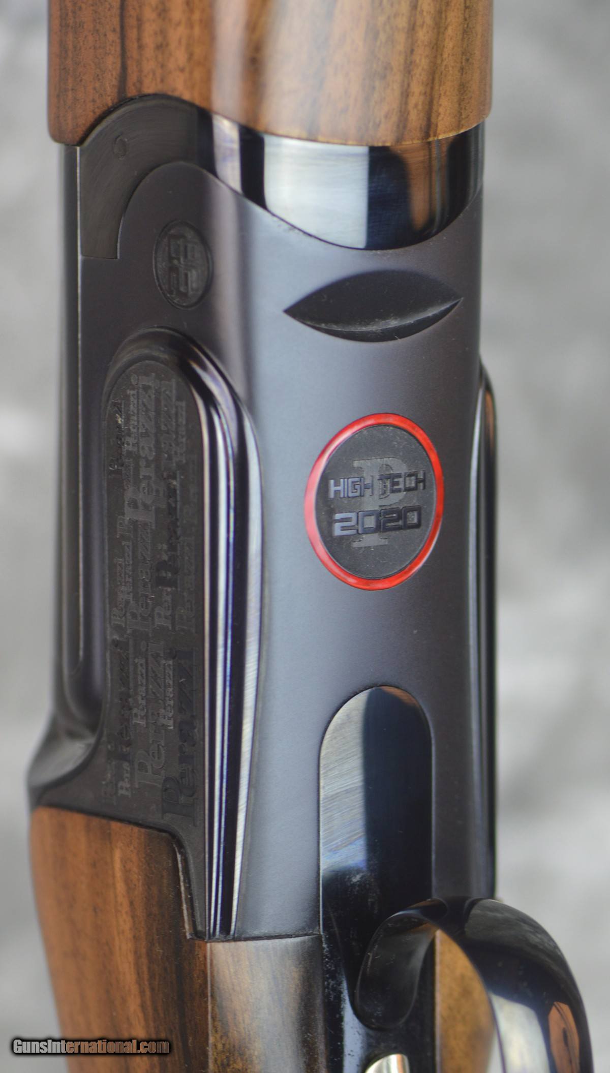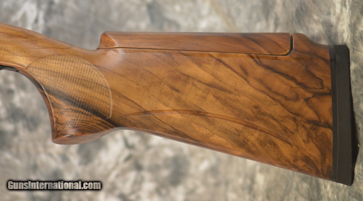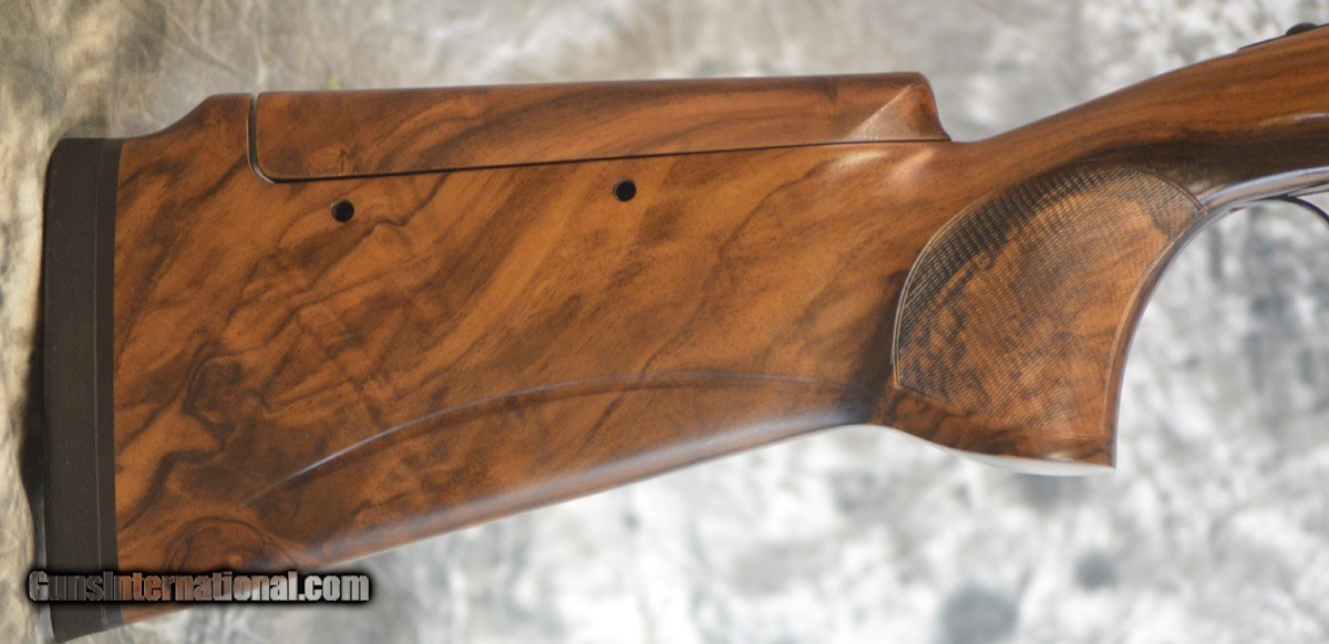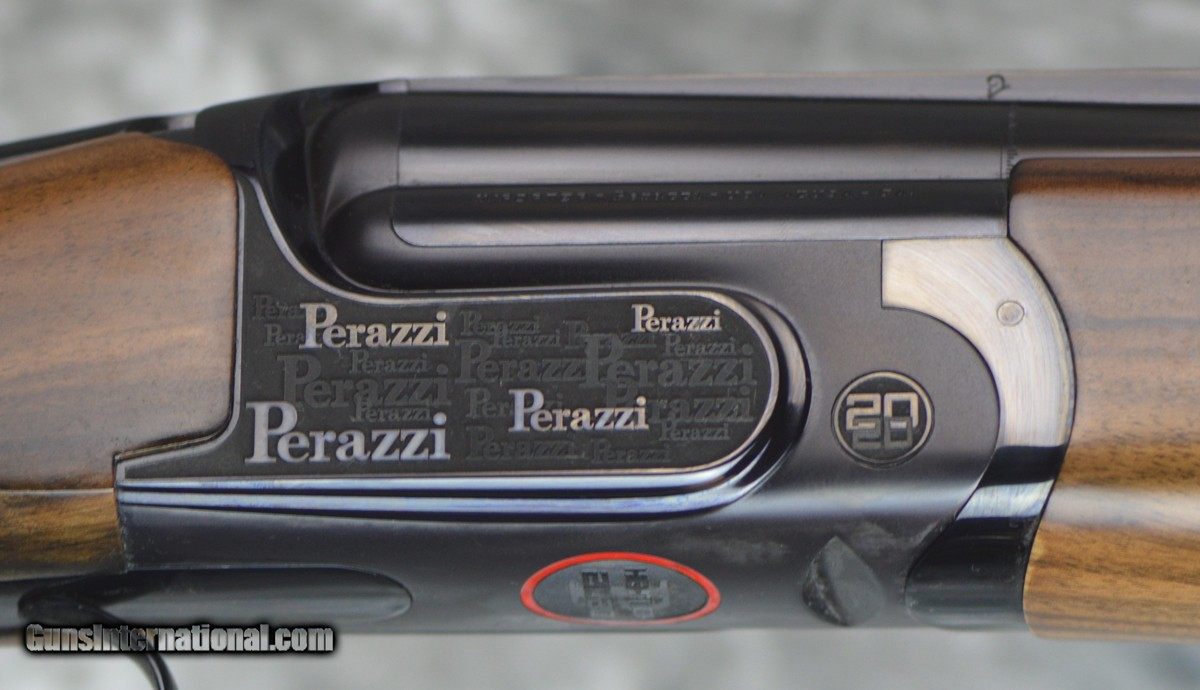Description: New Perazzi High Tech 2020 Dark Edition Sporting 12GA with 32" fixed choke (.020/.028) barrels, 11x7 flat tapered tramline rib. Factory fixed coil spring selective trigger. High Tech "2020" engraving featuring stippling with Perazzi logo and red-enamel bordered medallion, mirror polished forearm iron, scallops, trigger group and top-lever. Factory SC2 grade adj. comb Monte Carlo stock with right-hand palmswell and HT forearm. Includes factory leather trimmed case, tools. Call 626-633-1002 for price. SOLD |