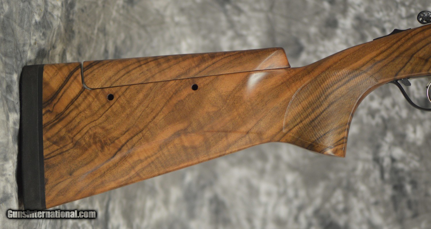 Description: New Perazzi High Tech Black & Gold Edition Sporting 12GA with 34" fixed choke (.016/.024) barrels, 7x7 flat tapered tramline rib (1.640kg). Features blued receiver with gold enamel fill, U.S. flag on bottom of receiver in full color. Outstanding SC2 grade sporting stock featuring a factory adj. comb, right-hand palmswell and fully checkered PSA Pro forearm. Includes factory case, tools. Call 626-633-1002 for best price. SOLD |