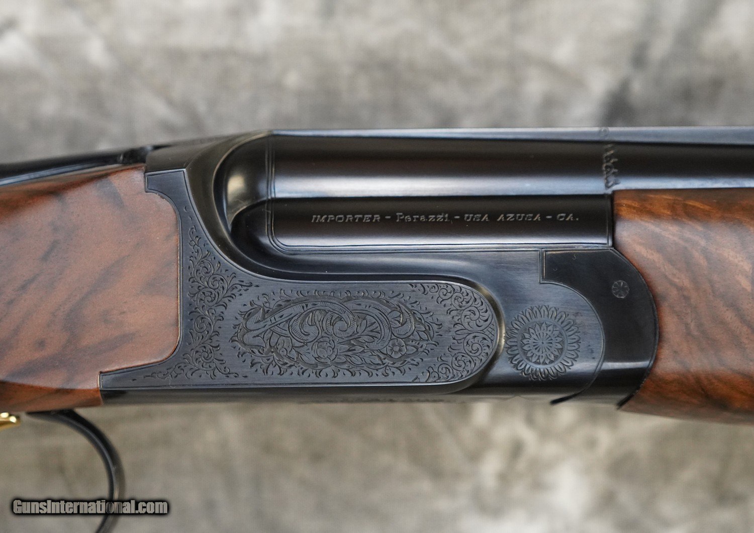 Description: New Perazzi HT28 Lusso Sporting 28GA with 34" fixed choke (M/IM) barrels, 7x7 parallel tramline sporting rib with ventilated side-ribs. Blued scaled 28GA High Tech action with fixed, selective coil spring triggers. Fully hand-engraved Lusso pattern featuring ribbons and scrolls, pierced top-lever. Factory pistol grip sporting stock with right-hand palmswell and adj. comb, PSA Pro sporting forearm. Includes factory case, tools. Call 626-633-1002 for pricing. SOLD Shotgun Gauge: 28 Gauge |