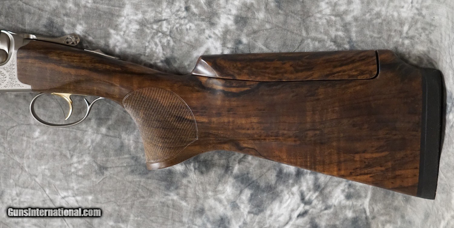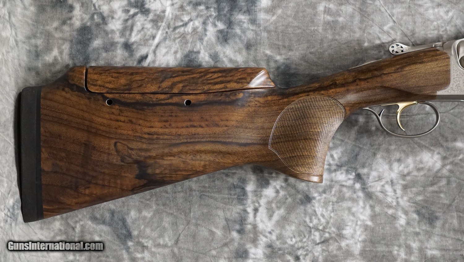 Description: New Perazzi High Tech/3 Lusso Helice 12GA with 3-Position 7x7 parallel adjustable rib, fixed (.028/.040) chokes (1.510kg barrel weight). Nickel finished "Lusso" action with fully hand engraved ribbons and scrolls, pierced top-lever. Factory removable, flat spring non-selective trigger. Factory SC2 grade Monte Carlo adj. comb stock with right-hand palmswell, fully checkered pistol grip, fully checkered PSA Pro forearm and gold inlaid "Helice" target on forearm. This gun is specially configured for Helice (ZZ Birds, Electrocibles) and would be excellent for Box pigeon shooting and Olympic Trap. Includes factory case, tools. Call 626-633-1002 for pricing. SOLD Shotgun Gauge: 12 Gauge |