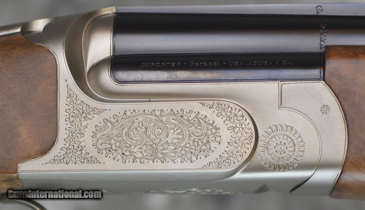 Description: New Perazzi High Tech Sporting 12GA with 32" factory choke tubed barrels, 11x7 flat tapered tramline rib. Nickel finished action with fully hand engraved scrolls and ribbons, selective removable trigger. Factory SC2 grade adj. comb sporting stock with right-hand palmswell, PSA Pro forearm. Includes factory case, chokes and tools. Call 626-633-1002 for pricing. SOLD |