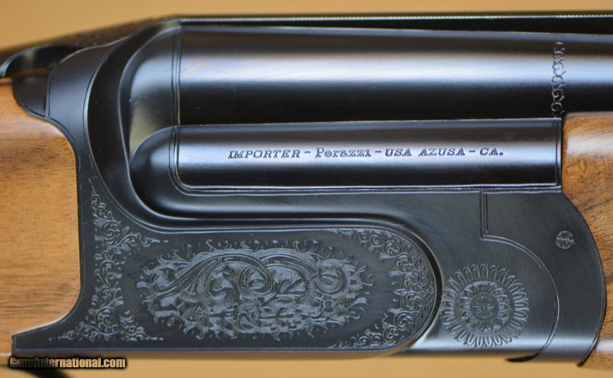 Description: New Perazzi High-Tech Sporting 12GA with 31 1/2" Factory Choke tubed barrels, featuring 7x10 reverse tapered rib. Factory blued action with "Lusso" Style engraving pattern, pierced top-lever, selective removable trigger group. Factory adj. comb pistol grip stock, beavertail style forearm. Includes factory case, chokes & tools refer to 465. SOLD |