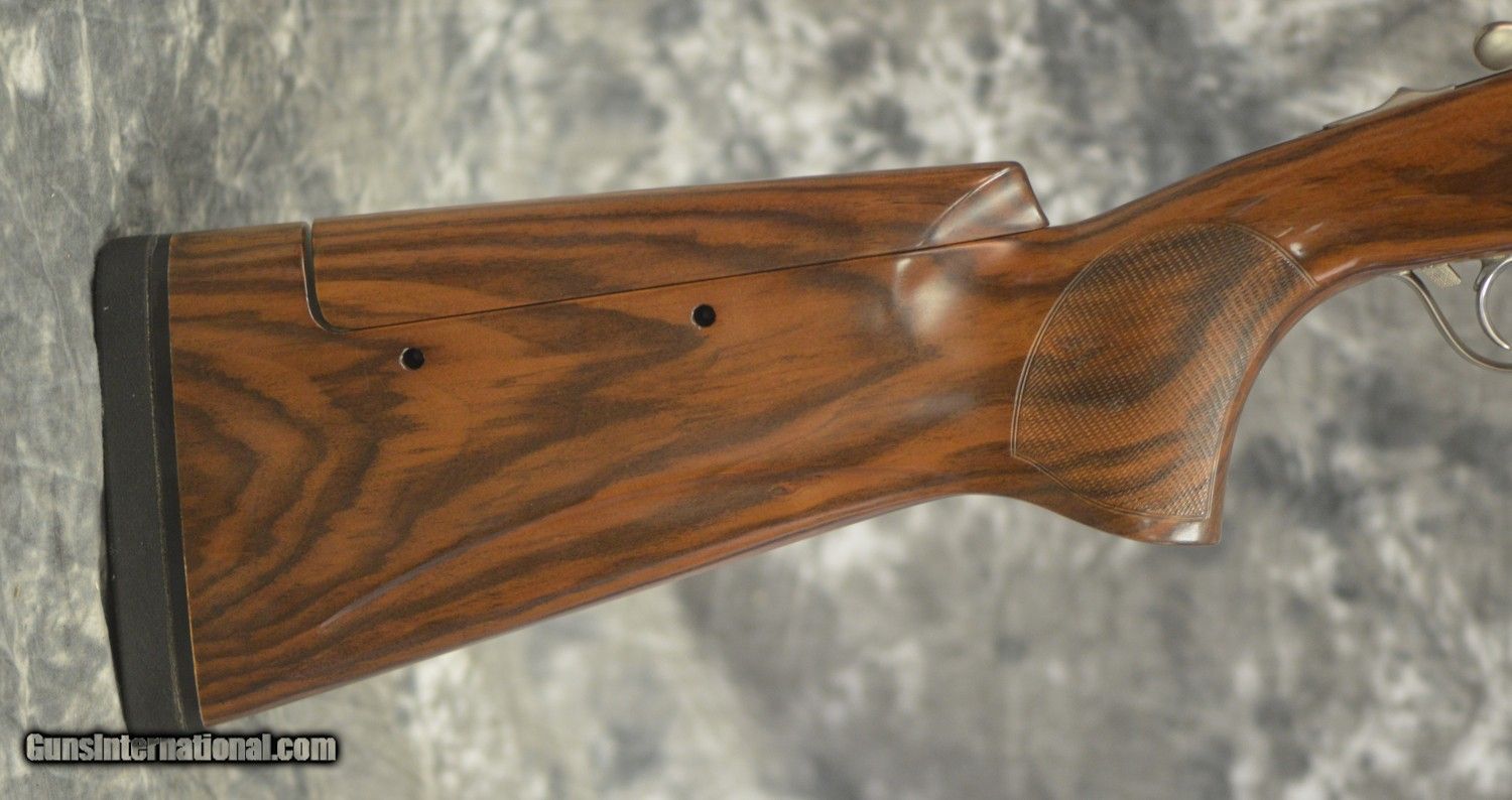 Description: Pre-Owned Perazzi High Tech Sporting Nickel 12GA with 33" fixed choke (.016/.024) barrels (1.600kg bbl weight) with 7x7 parallel sporting rib. Factory nickel finished action with removable, selective trigger. Factory adj. comb sporting stock with right-hand palmswell and HT forearm. Overall outstanding condition with only minor signs of use. Includes factory case, tools. SOLD |