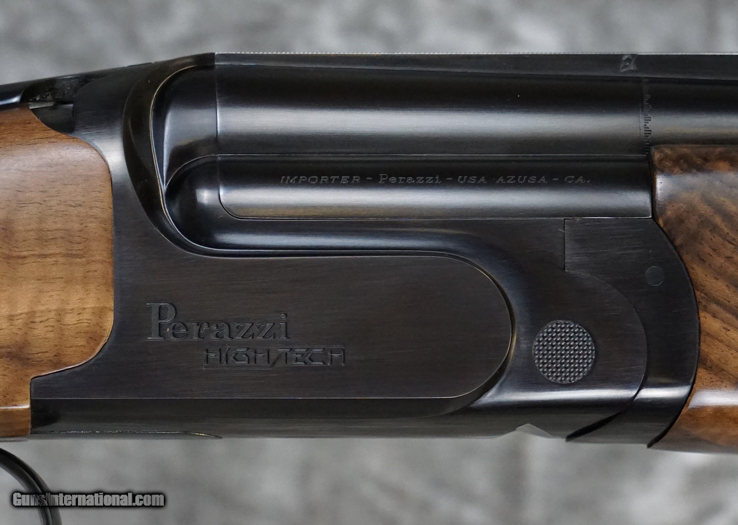 Description: New Perazzi High Tech Olympic Trap or Pigeon 12GA with 30" fixed choke (.028/.036) barrels with 18.4mm (.724) bore and 11x7 flat tapered rib, no side ribs (1.430kg barrel weight). Factory blued action with black-enamel, factory removable non-selective flat-spring trigger. Factory Monte Carlo adj. comb stock with right-hand palmswell and HT trap forearm. Includes factory case, tools. Call 626-633-1002 for pricing. SOLD Shotgun Gauge: 12 Gauge |