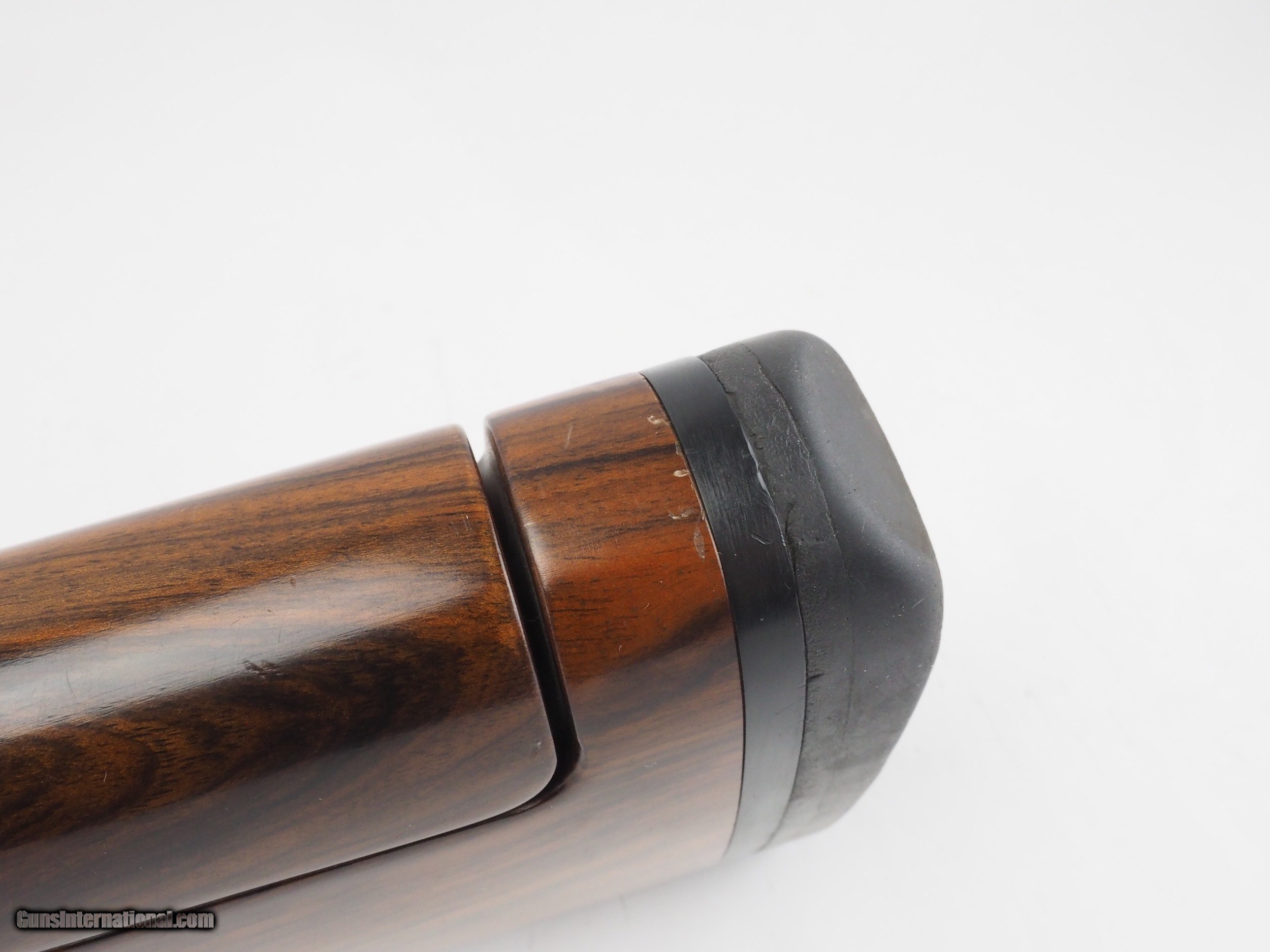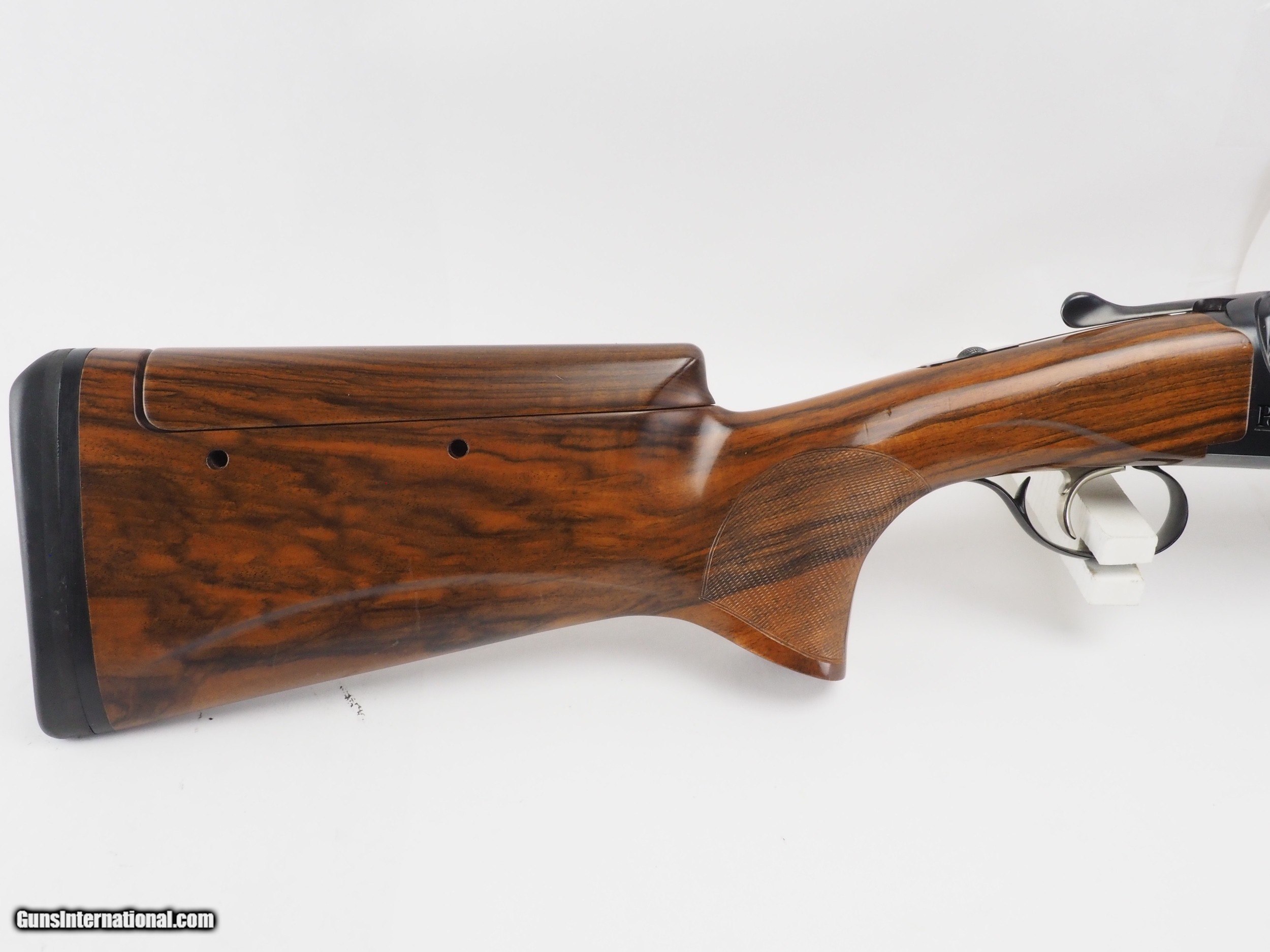 Description: Price: $11,200.00 Exceptionally clean and well-taken-care of Perazzi High Tech S (non-dropout triger) with 3-notch adjustable rib. This gun was purchased new by the previous owner, who took exceptionally good care of the gun. He's trading this gun in becuase he wants a German gun to go with his new Porsche. The only modification done to this gun is a LOP reduction to 14 inches. There are a few minor handling marks on the RH side of the buttstock, plus a small worn spot in the bluing on the underside/rear of the trigger guard. Aside from that, this gun is exactly how it left the Perazzi factory in Brescia. All springs are strong, including the top lever spring. The barrels open with smooth resistance as expected on a like-new Perazzi. The wood appears to be SC3 or better...very nice! Gun is spec'd with a three-notch rib and screw-in chokes. Trigger is selectable via the safety. All the factory paperwork is present. All factory accessories appear to be present, aside from the factory snap caps which have been replaced by Giuliani snap caps. Make: Perazzi Model: High Tech S Manufactured: 2018 Gauge: 12ga, 3" chambers Barrel length: 31.5" Receiver finish: blued Trigger group: non-dropout Comb: adjustable LOP: 14" Cast at heel: 1/4" Cast at toe: 5/16" Chokes: 0, 2, 4, 5, 6, 8, 10 (all factory screw-in) Bore: 18.7mm Accessories: rib adjustment tool, comb wrench, comb spacers, choke wrench, stock wrench, Giuliani snap caps, stock sleeves, factory paperwork + stickers + patch, etc SOLD |