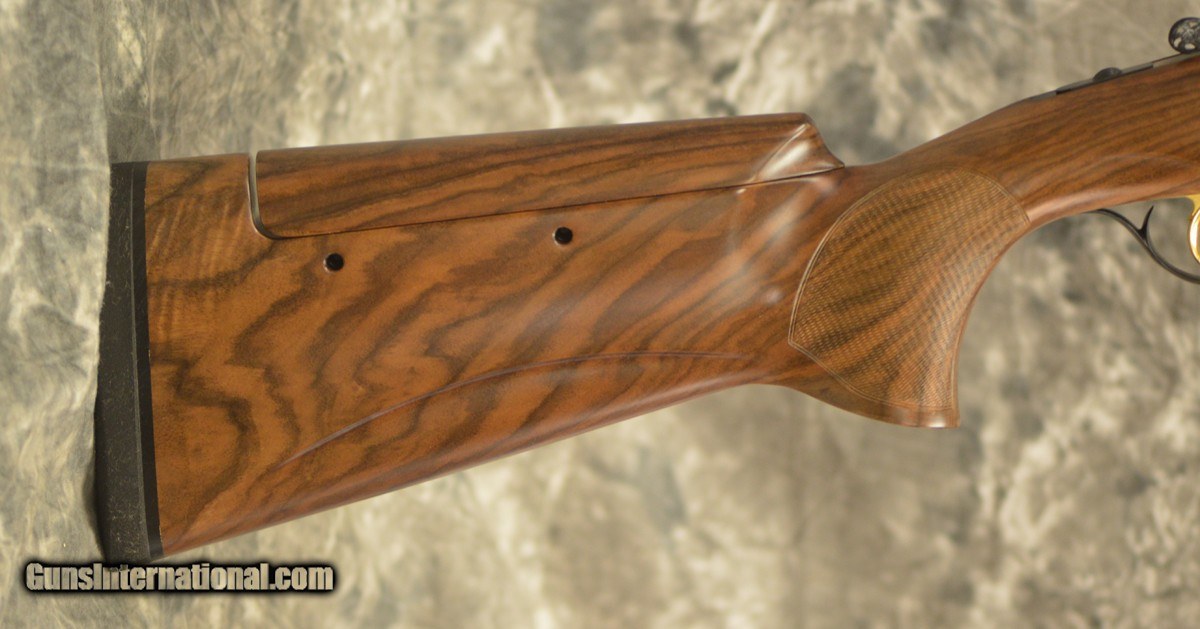 Description: New Perazzi High Tech S Lusso Sporting 12GA with 32" factory choke tubed barrels, 11x7 flat tapered tramline rib. Fixed, selective coil spring trigger. Factory fully hand engraved scrolls and ribbons, blued receiver. Factory SC2 grade Adj. Comb sporting stock with right-hand palmswell and HT forearm. Includes factory case, tools. Call 626-633-1002 for pricing. SOLD |