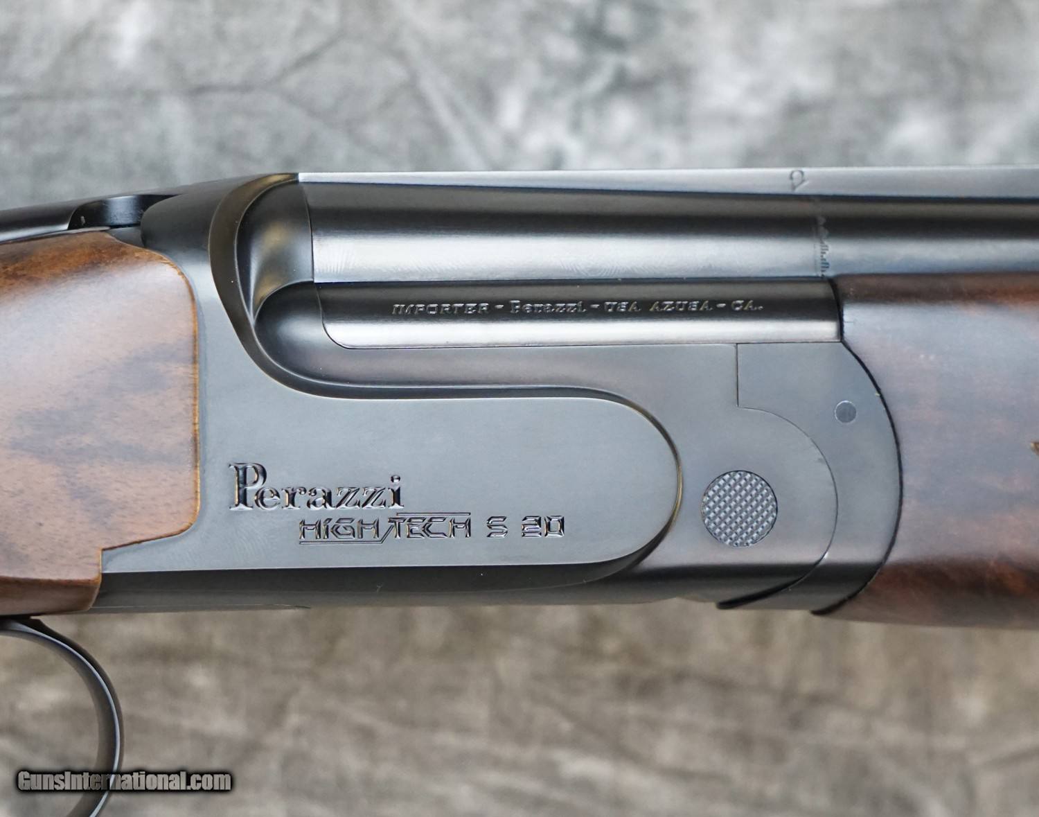 Description: New Perazzi High Tech S Sporting 20GA with 34" factory choke tubed barrels (7 Chokes included), 7x7 parallel tramline rib. Blued action with black enamel, fixed coil spring selective trigger. Factory SC2 grade adj. comb pistol grip stock with right-hand palmswell, HT forearm. Includes factory case, chokes and tools. Call 626-633-1002 for pricing. SOLD Shotgun Gauge: 20 Gauge |