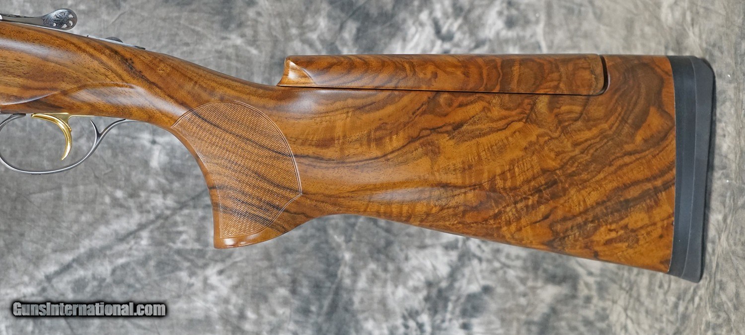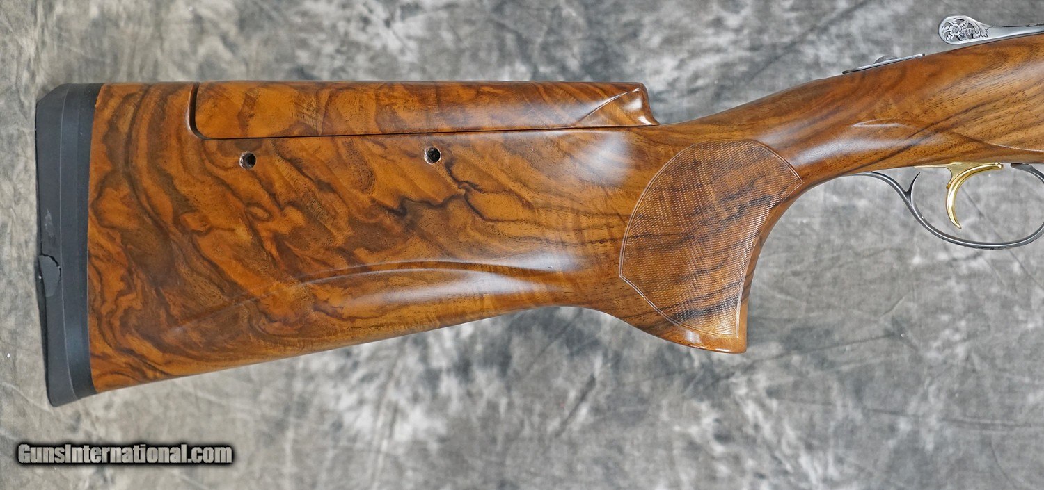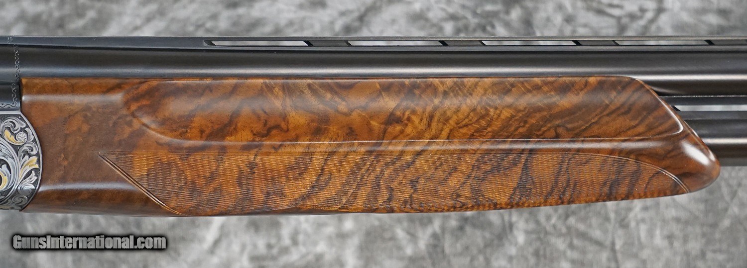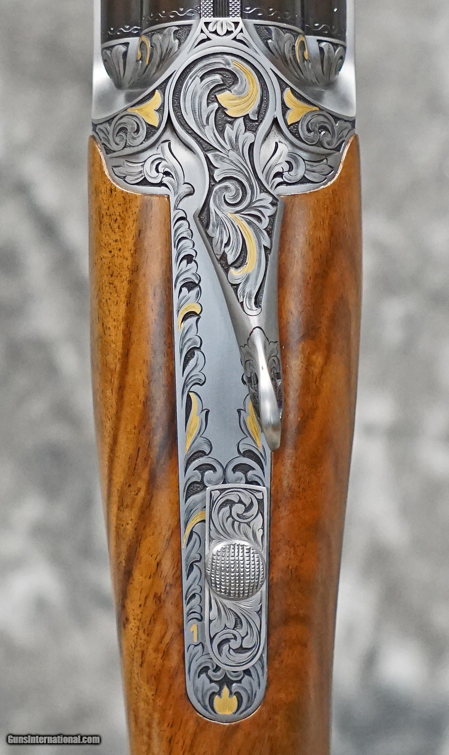 Description: Demo Fired Only Perazzi High Tech S SC3 Gold Sporting 12GA with 32" factory choke tubed barrels, 7x7 tramline parallel rib. Coin finished action featuring gold inlaid scrolls, deeply engraved and highly detailed by the Masters at Giovanelli. Factory fixed coil spring, selective trigger, pierced top-lever. Factory adj. comb sporting stock with right-hand palmswell, HT forearm. Includes factory leather trimmed case, chokes and tools. Very little use, nearly as-new, only recoil pad has been changed to Kickeez No. 600 sporting pad. SOLD Shotgun Gauge: 12 Gauge |