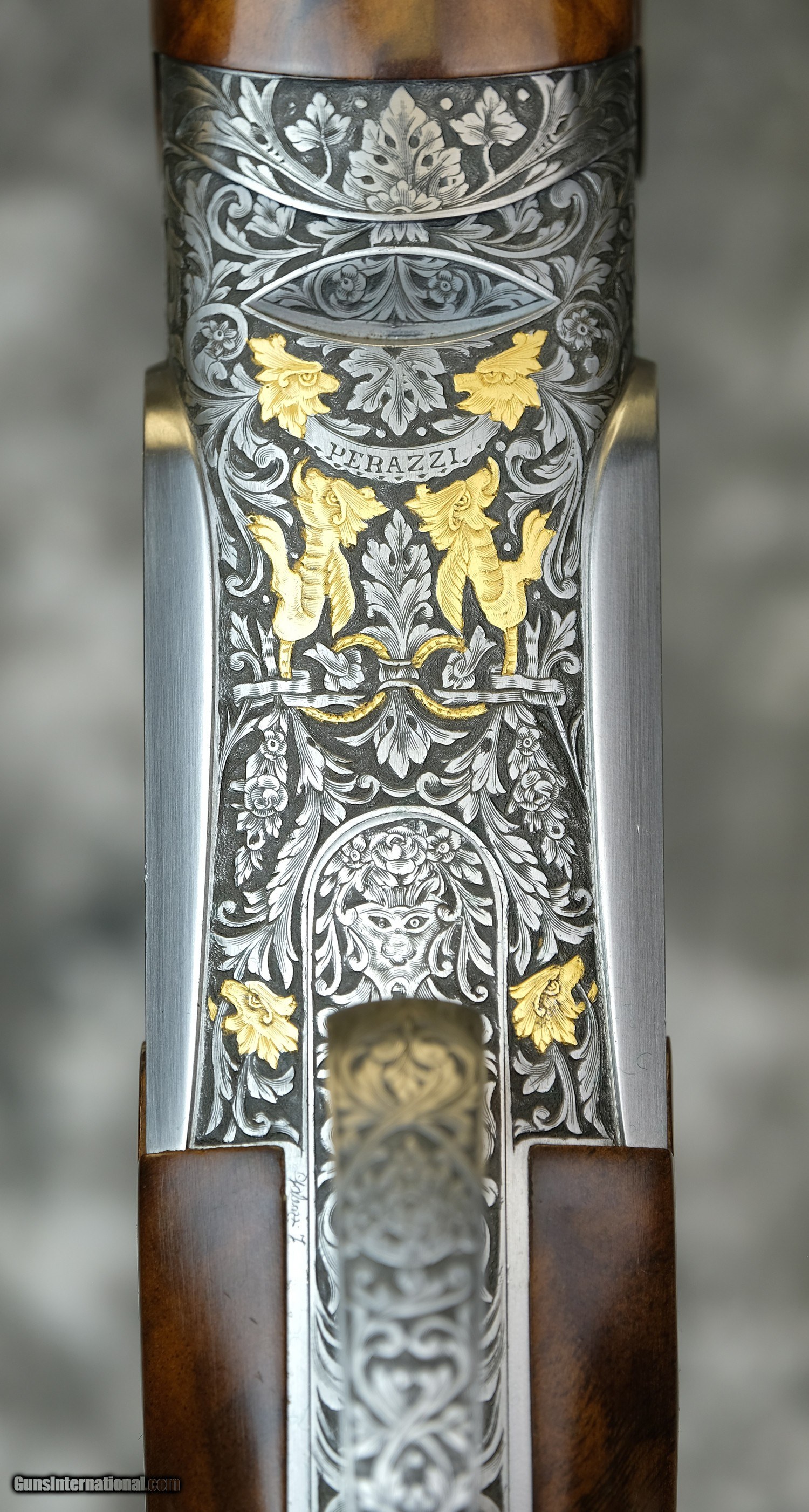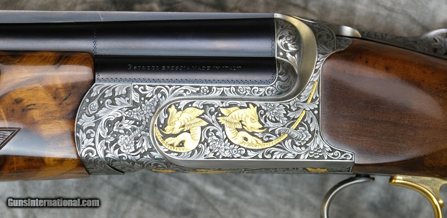 Description: Pre-Owned Perazzi High Tech SCO Gold Sporting 12GA with 31 1/2" factory choke tubed barrels, 11x7 flat tapered tramline rib. Coin finished action with factory selective, removable trigger group; factory deep scroll engraving with gargoyles and mystic scenes, deep scroll engraving by the Italian Master Fausti Galaezzi (Factory Engraved SCO Gold). Factory adj. comb sporting stock with right-hand palmswell, USA Kick-Eez recoil pad and HT forearm. Minor handling marks and finish wear. Includes full leather case, chokes and tools. SOLD Shotgun Gauge: 12 Gauge |