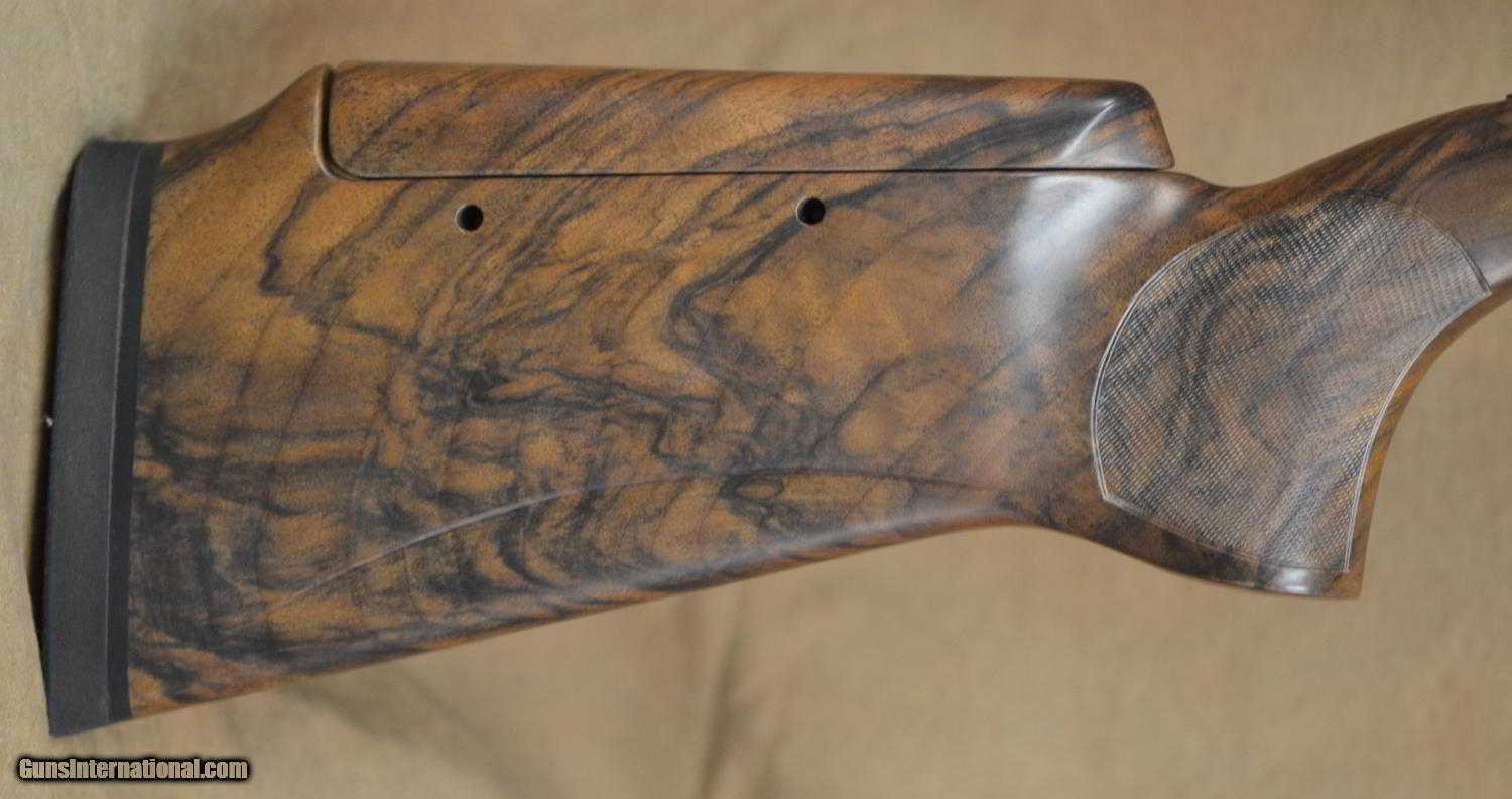 Description: New Perazzi High-Tech SCO Gold Sporting 12GA with 31 1/2" factory choke tubed barrels, 11x7 tramline flat tapered rib. Coin finished action fully hand engraved by Italian master engraver Laura Galaeazzi, features deeply engraved scrolls, gold gargoyles and gold angels. Incredibly unique engraving by one of the very best Italian engravers. Factory removable selective trigger, pierced top-lever with gold crown. Factory adj. comb monte carlo stock with right-hand palmswell and Hi-Tech style forearm. Includes factory tools, choke tubes and full leather case. SOLD |