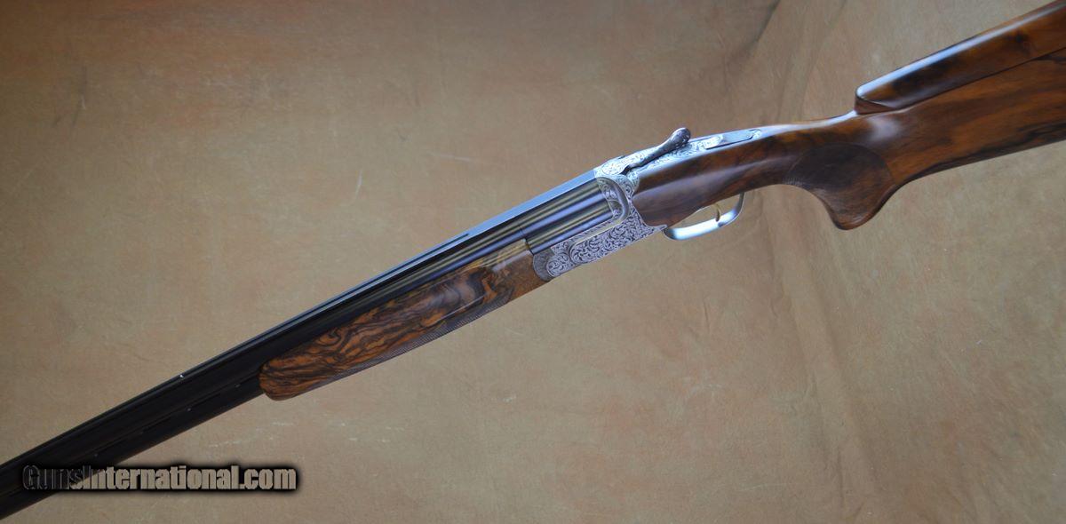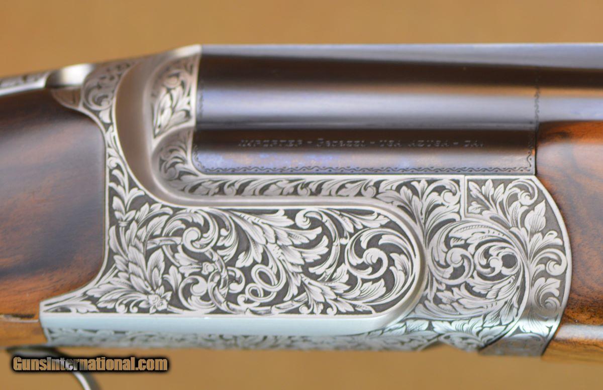 Description: New Perazzi High Tech Sporting 12GA with 31 1/2" factory choke tubed barrels, 2mm ramped 11x7 tapered, tramline rib. Factory removable selective trigger. Factory coin finished receiver with SCO Scroll Pattern No. 135 featuring deeply engraved, detailed scrolls by the Italian Masters at Creative Art. Outstanding factory adj. comb Monte Carlo sporting stock with right-hand palmswell and HT forearm. Includes factory case, chokes and tools. As-New Unfired, minor signs of shelf-wear. SOLD |
