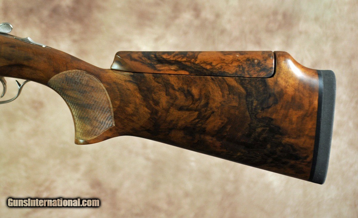 Description: Pre-owned, in very good condition, Perazzi High Tech Skeet 12ga. Features fixed choke skeet and skeet 30" barrels with flat rib. Comes with fitted set of Briley Ultra Light sub gauge tube set. Nickel receiver and parts with removable non selectable trigger. Highly figured right handed Monte Carlo stock with adjustable comb and PSA Pro forend. Comes in Negrini tube set case. CONSIGNMENT, ineligible for trades. SOLD Shotgun Gauge: 12 Gauge |