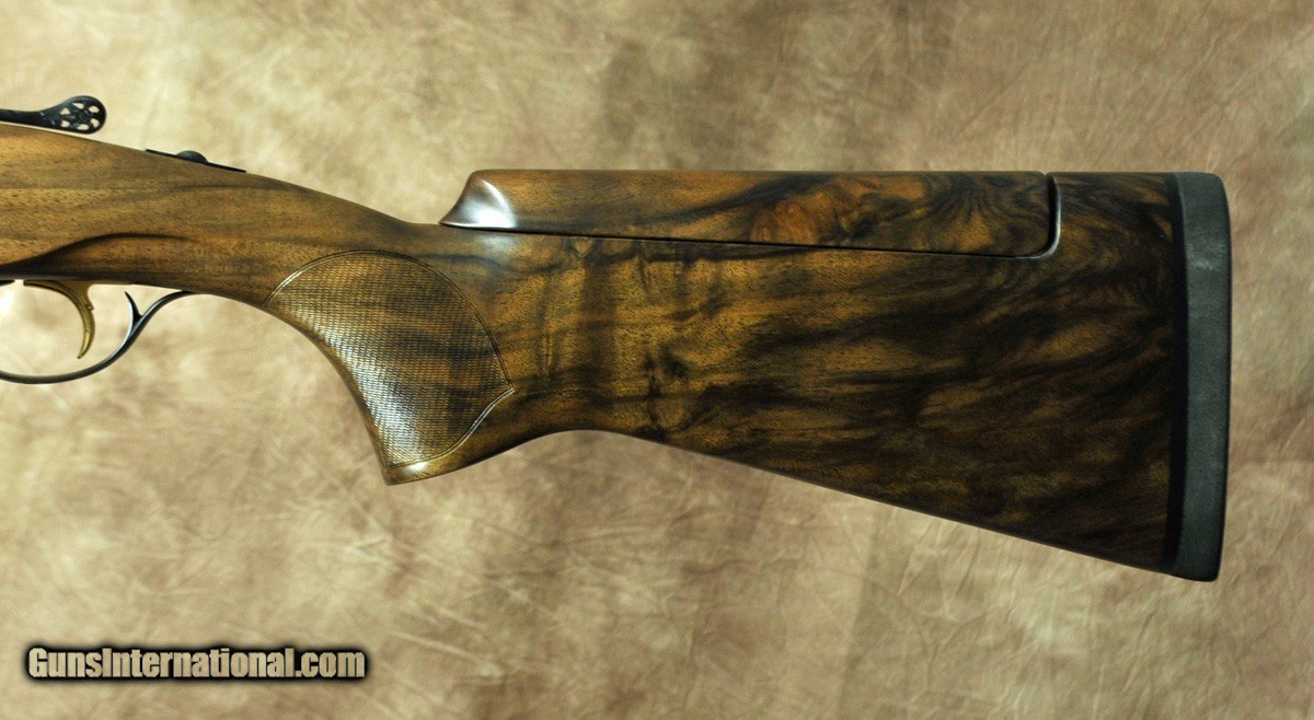 Description: New Perazzi High Tech SC3 Sporting 12ga. Features fixed choke improved modified and improved modified 33" barrels with flat tramline rib. Blued receiver featuring new bold 150 pattern of deep floral scrolls with pierced top lever and fixed selectable trigger hand engraved by Italian master engravers at Bottega Giovanelli. Outstanding right handed Sporting stock with adjustable comb and PSA Pro forend. Comes in factory leather trim case. SOLD Shotgun Gauge: 12 Gauge |