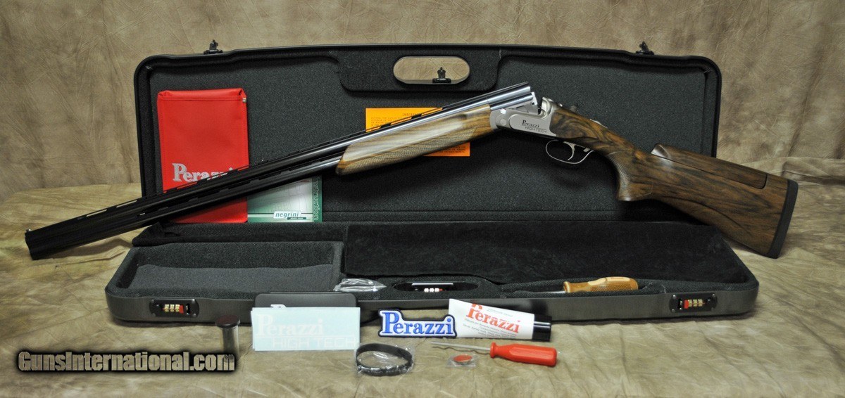 Description: New Perazzi HT sporter 12 gauge. Features Nickel receiver with remove able/ select able trigger and flat springs. 33" fixed choke barrels (M/IM) 1.610 KG/ 18.7 bore. 11 mm x 7 mm flat tapered tram line rib. Sc2 grade sporting stock with High tech fore arm and adjustable comb. Stock dimensions are: 1 1/2" x 2 1/4". 3/16" cast off at the heel, 3/8" at the toe. LOP 14 3/4". Set includes factory hard case, tools and owners manual.Contact our Michigan location at 248-960-7262 for additional information. Refer to (372) SOLD |