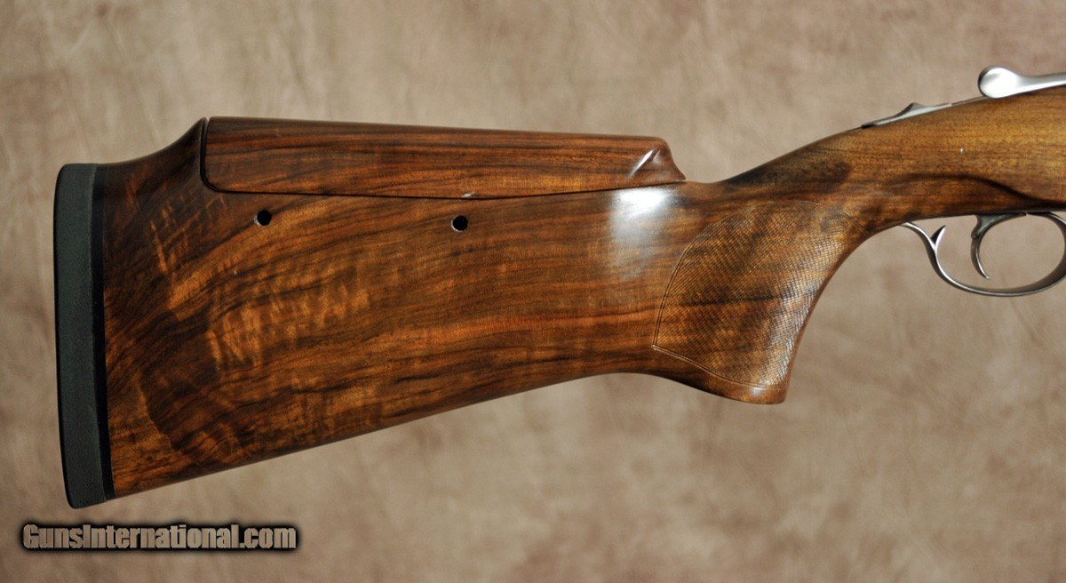 Description: Pre owned in excellent condition, Perazzi HTRS Trap Combo. Nickel receiver with black writing, features remove able, non select able trigger group with flat springs. 34″ unsingle with matching 31.5″ O/U. 18.7 bore (1.630/1.640KG). RS 4 notch adjustable ribs. left handed Sc2 Trap stock with adjustable comb and beaver tail fore arm. THE STOCK HAS A CRACK IN THE GRIP THAT HAS BEEN REPAIRED BUT IN NOT GUARANTIED .Stock dimensions are: 1 1/2″ x 1 1/2″ x 2 1/2″. 1/4″ cast on at the heel, 15/32″” at the toe. LOP 14 3/4″. Over all weight 9 lb 4 oz. Set includes factory hard case, tools and owners manual. Contact our Michigan location at 248-960-7262 for additional information. Refer to (044) SOLD |
