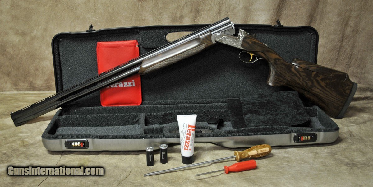 Description: New Perazzi HTS Elle Lusso Sporter 12 gauge. Designed specifically with the female or small frame shooter in mind. Features Nickel receiver engraved by Terri. 30 3/4" light weight fixed choke barrel (M/IM) 1.510 KG/18.7 bore. 11 mm x 7 mm flat tapered, tram line rib. SC2 Sporting stock with grip moved forward. Stock dimensions are: 1 1/2" x 1 1/2" x 2 1/2". LOP 14 3/16". 1/4" cast off at the heel, 3/8" at the toe. Over all weight 8 lb 9 oz. Set includes factory hard case, tolls and owners manual. Please contact our Michigan location at 248-960-7262 for additional information. Refer to (072) SOLD |