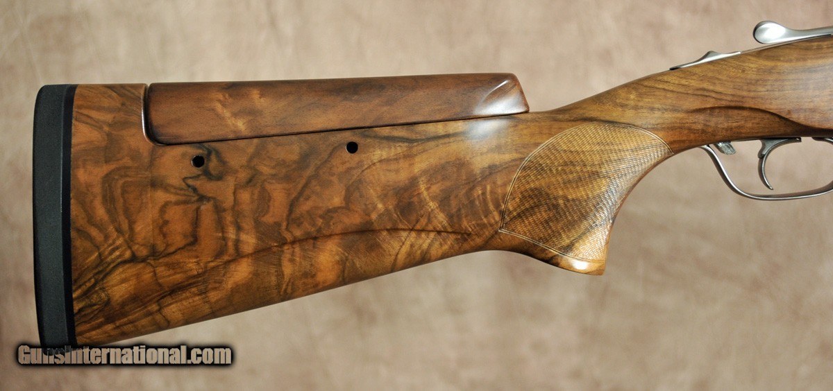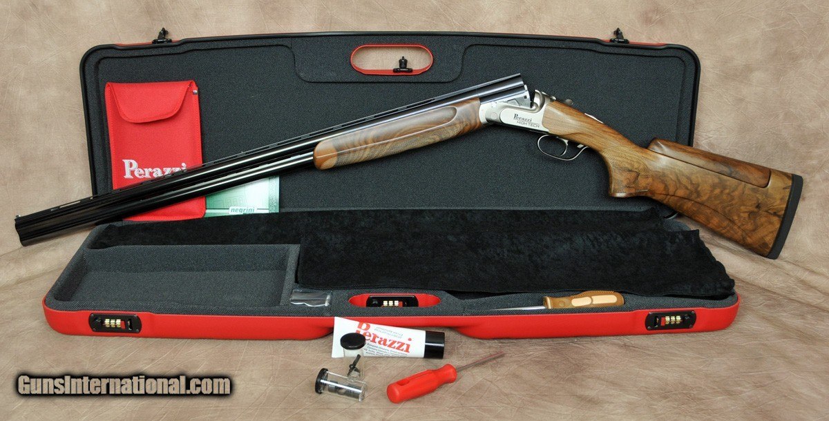 Description: Pre owned in excellent condition Perazzi HTS Sporter. Features Nickel receiver, 32″ fixed choke barrels with Briley extended thin wall chokes. (1.570kg/18.7) 11 mm x 7 mm flat tapered rib, SC2 sporting stock with pad adjuster and adjustable comb. Stock dimensions are; 1 1/2″ x 2 1/4″. LOP 14 1/2″. Over all weight is 8 lbs 14 oz. SOLD |