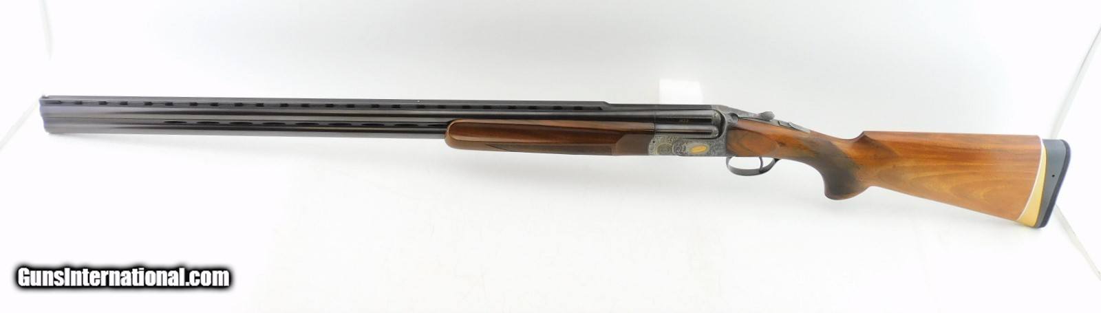 Description: Perazzi-Ithaca M8 Custom Trap 12 GA WCase, 32" vented rib O/U bbls, bright shiny smooth bores, engraved receiver - trigger guard with gold inlay, single trigger, very nice checkered grip stock - forearm, LOP - 14 1/2", and Griggs XLS302 Special Edition pad system. Includes fitted Browning luggage case, extra trigger group, and tools. Add 3% for Credit Card Shipping $35.00 SOLD |