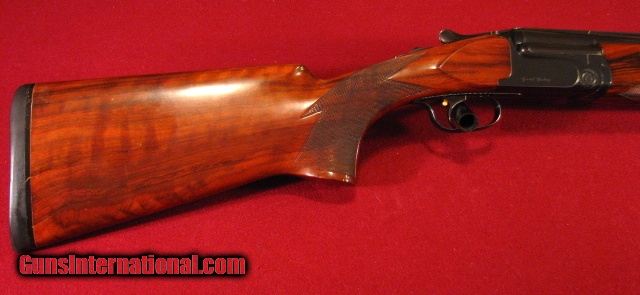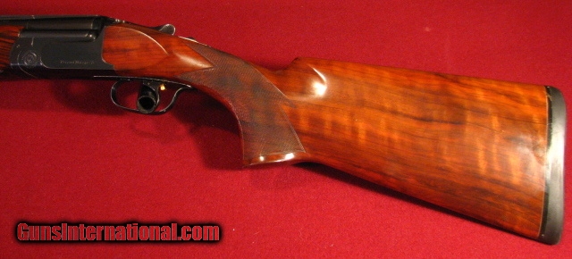 Description: Perazzi Mirage-S 12 Gauge with 29 1/2" ported vent rib barrels. Bores are excellent. Drop out trigger group with single trigger adjustable for LOP. Field forend with finger grooves. Pistol grip buttstock. LOP 14 1/4" to 14 3/4" over a 3/4" pad. DAC-1 9/16" DAH-2 1/2" 8lb 30z Neutral cast. Cased in factory hard case with seven Perazzi flush chokes [0,2,4,5,6,8,10] and two Briley extended chokes both marked "Per2" This gun is in excellent overall condition showing only very light use. S.N. 87,XXX with Type IV forend and made when they were still hand fitted rather than CNC machined. Good dimmensions for field or clays. The Mirage-S is the same as the MX-8 with an adjustable trigger. Lever remains well right of center. 99% mechanical life left. Excellent value. SOLD |