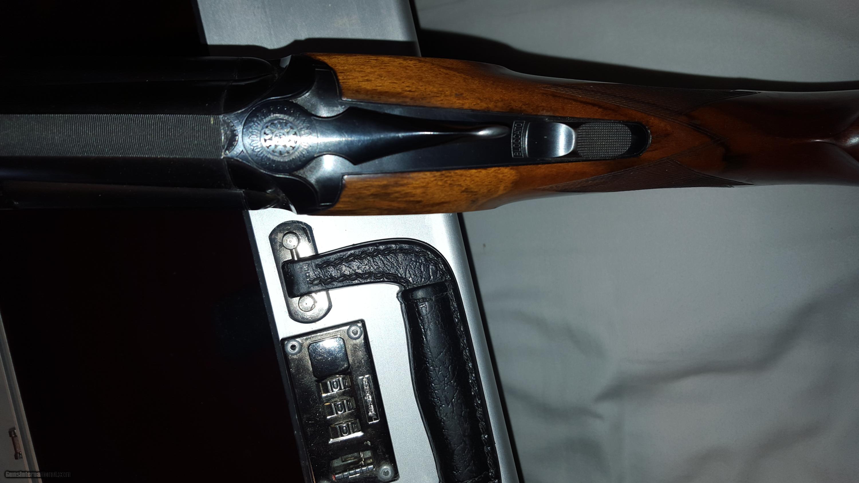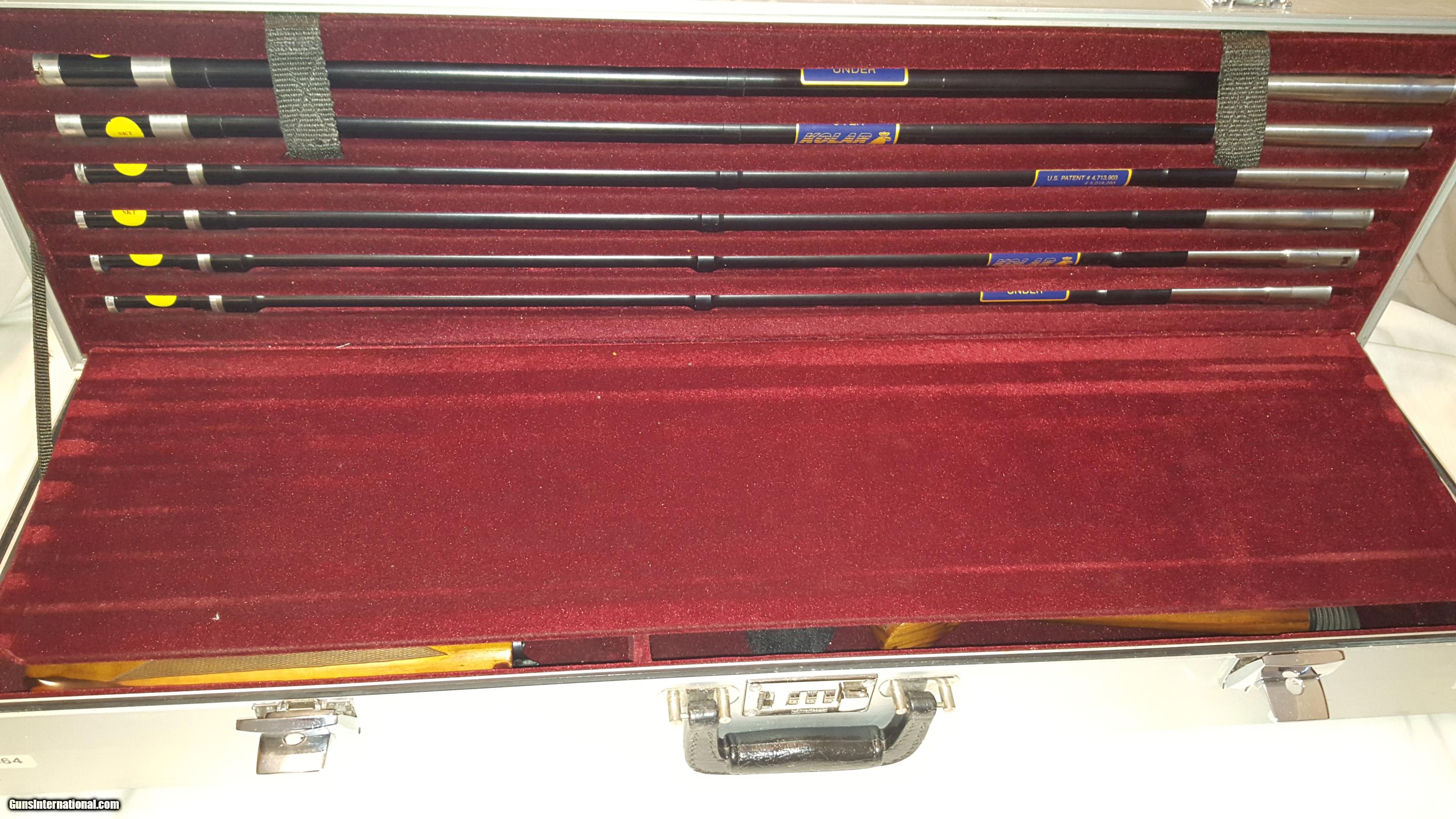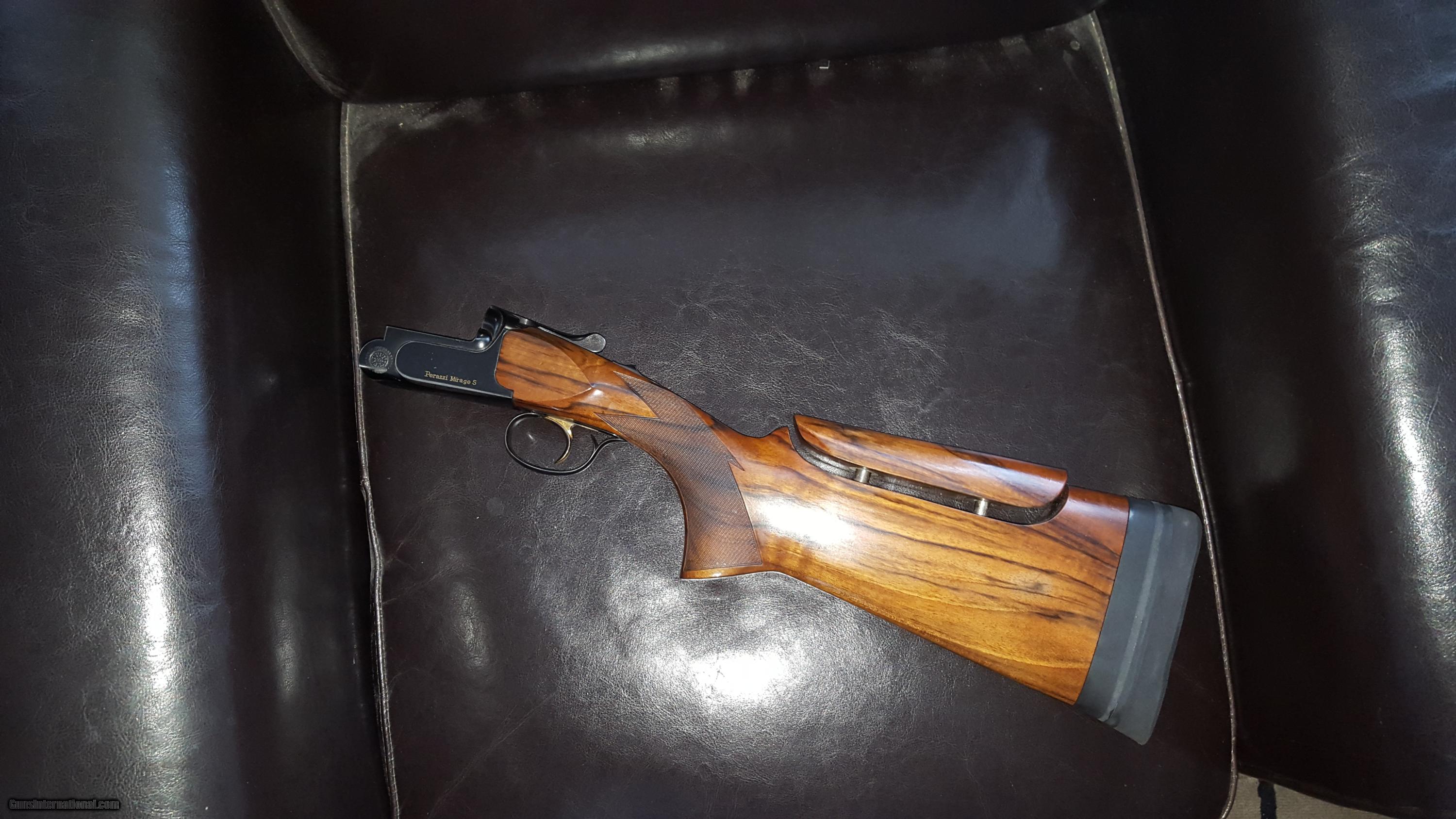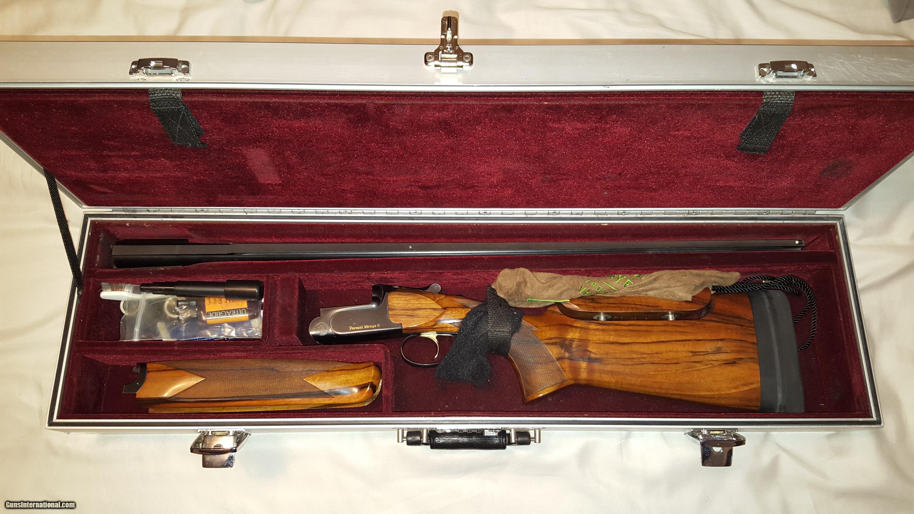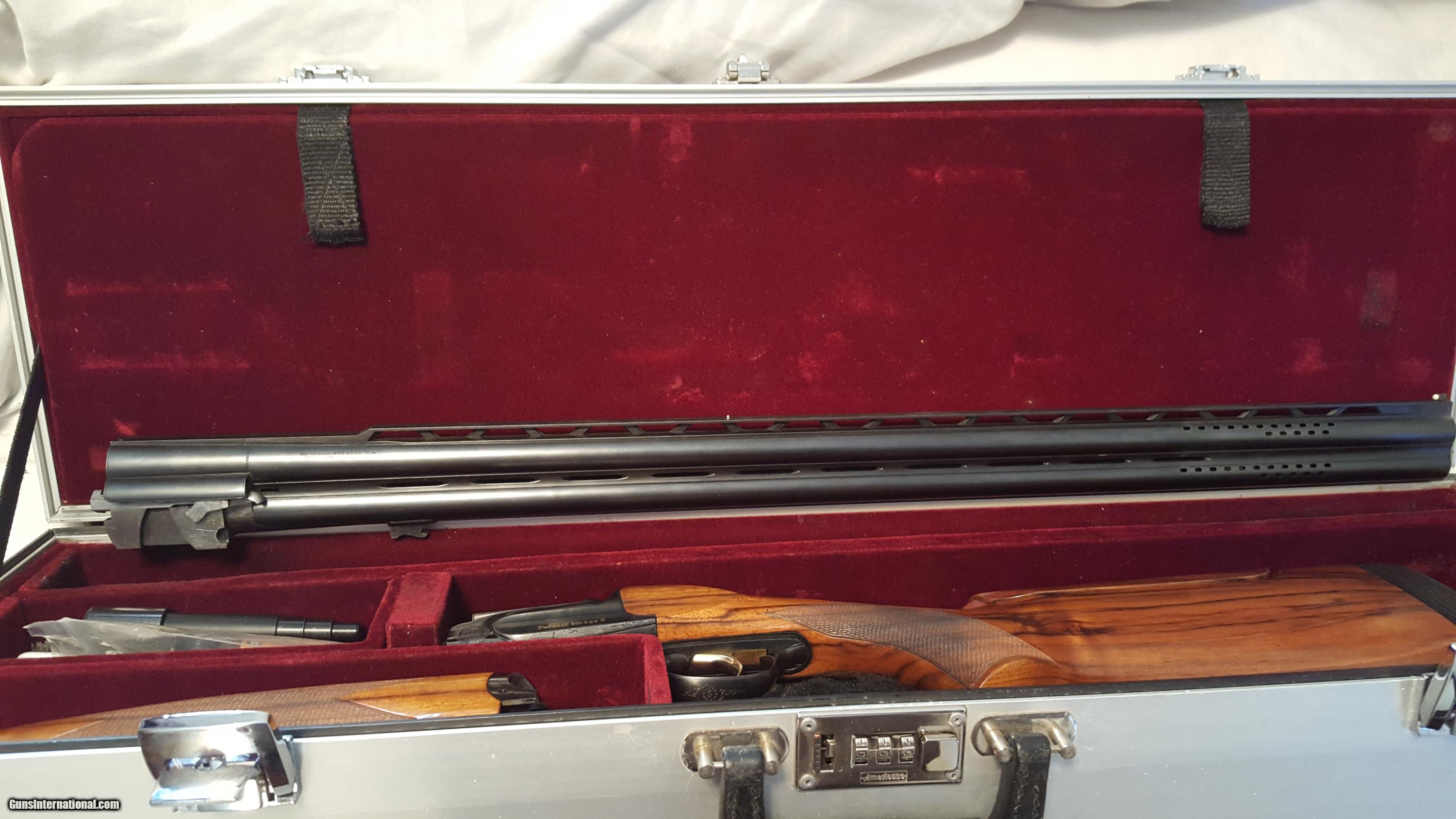 Description: Perazzi Mirage S, with Kolar AAA sub gauge tubes 20,28,.410 with tools,screw in skeet choked in Americase. Barrels 29.5" ported, stepped rib, fixed light modified choked. Adjustable parallel comb. LOP 15" Pachmayr pad, detachable trigger. Wood and blue 99%, bores are clean. Rare gun, great balance. MX8 platform. Message for pictures or questions. 12 gauge ideal sporting clay gun. Picture 8 shows 14-1/2" lop SOLD |