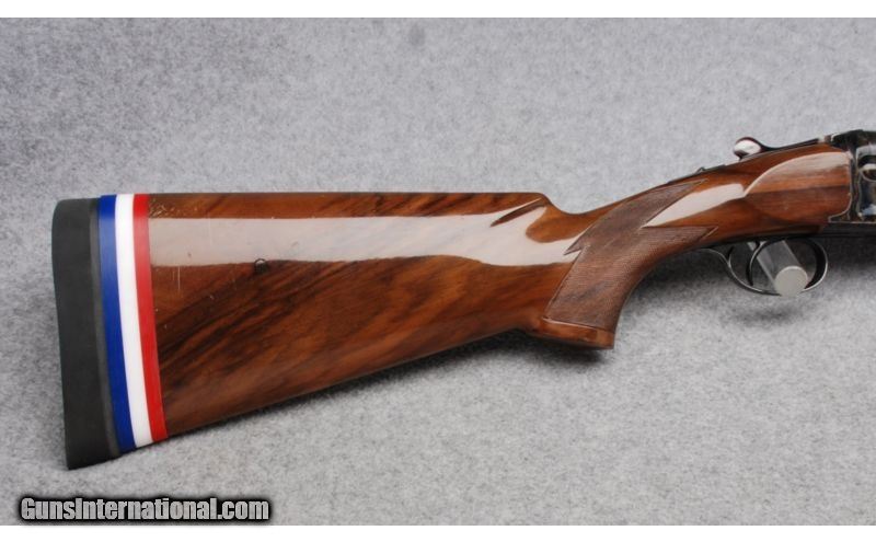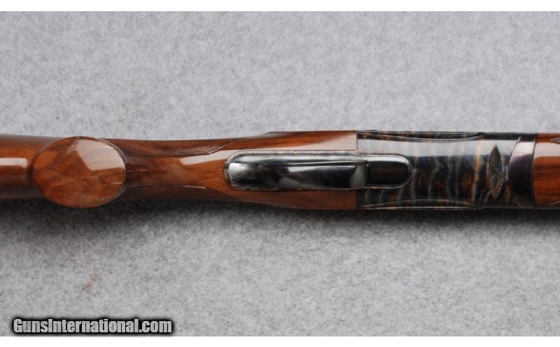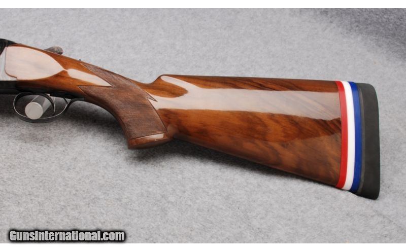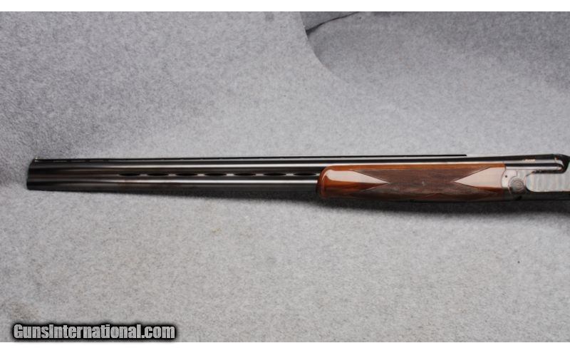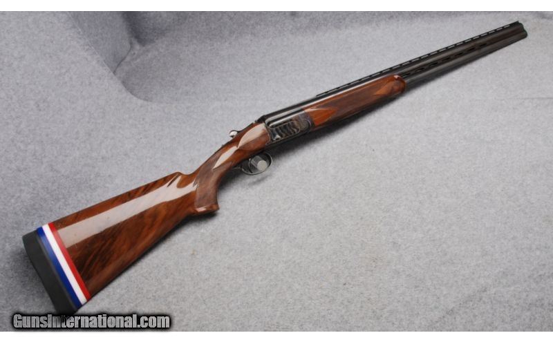Description: This is an Ithaca Gun Company imported Perazzi Mirage Over/Under shotgun in 12 Gauge with 2 3/4 inch chambers, a single trigger, and ejectors.The barrel is marked "Mirage", and the numbers match on the receiver and barrels. The color case hardened receiver is in Very Good condition with some wear around the trigger guard and a blemish in the finish on the right side. The 28 inch vent rib barrels are choked Full and Modified and have silver front and mid beads. Condition is Excellent and the bores are shiny. The stock has a pistol grip and schnabel fore end. A weighted spacer and a Limbsaver pad have been added to the butt stock. Handling marks are evident. No case is included with this shotgun. SOLD Caliber Info: 12 Gauge Chambers: 2 3/4 Metal Condition: Very Good to Excellent Wood Condition: Good Bore Condition: Bright and Shiny Barrels: 28" Vent Rib Triggers: Single Stock: Checkered Walnut Pistol Grip Stock Dimensions: LOP 15" DAC 1 1/2" DAH 1 1/2 Fore End: Checkered Walnut Schnabel Butt Pad: Limbsaver Weight: 9 1/2 Pounds Sights: Silver Front Bead and Silver Mid Bead Chokes: Full and Modified Extras: Ejectors Item Location: Thornton, CO |